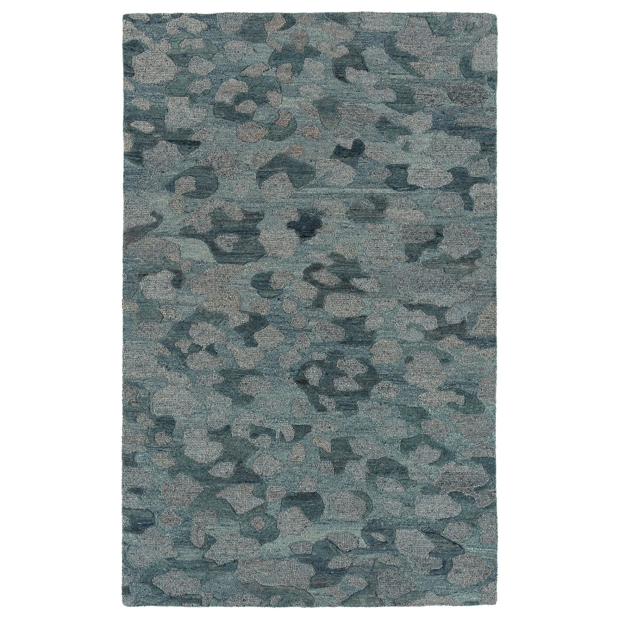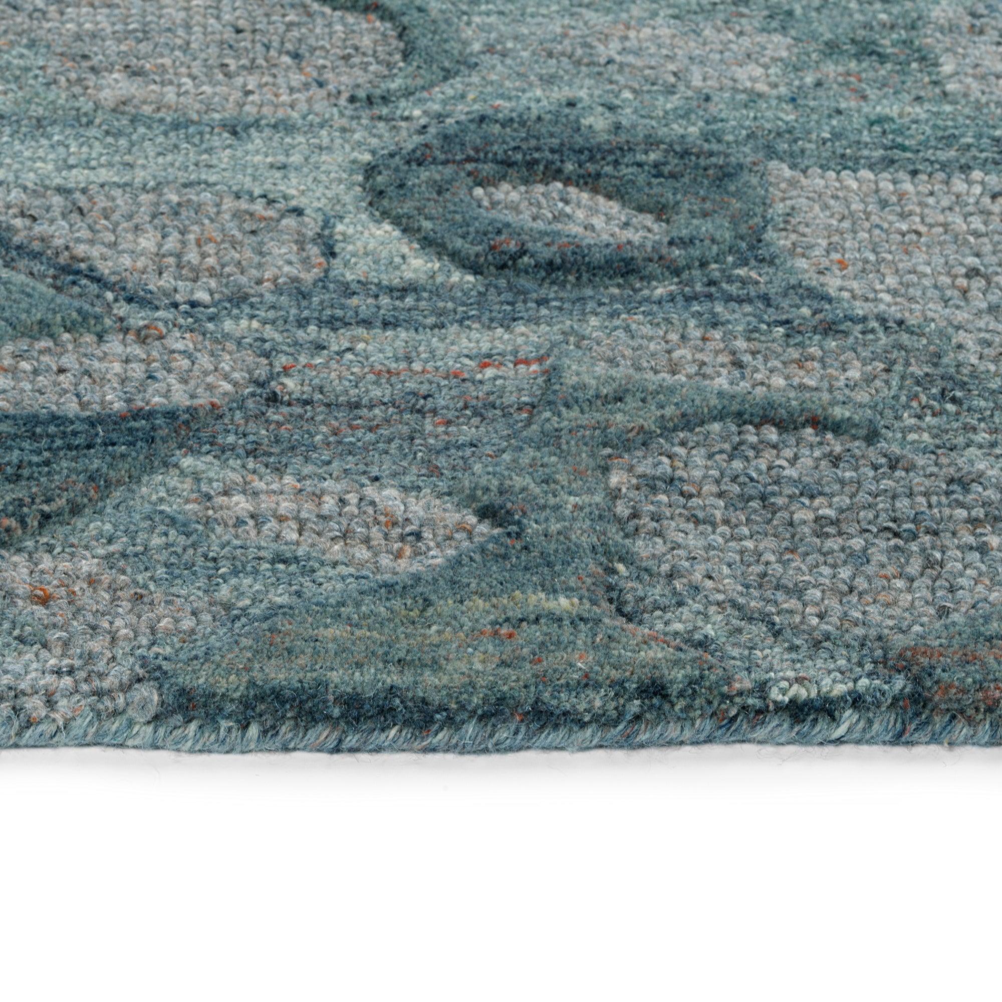 Calvin CLV99 17 Blue from the Calvin Collection, featuring anthropomorphic shapes inspired by the smooth curves of stones weathered by a rushing stream. Crafted with care, these rugs are hand-tufted using 100% hand-spun wool and dyed with natural colors for a truly unique look. The intricate designs are hand-carved by Kaleen artisans to create a dynamic texture with high and low piles. To ensure durability and quality, each rug is meticulously surged by hand and backed with Kaleen's signature cotton canvas.