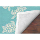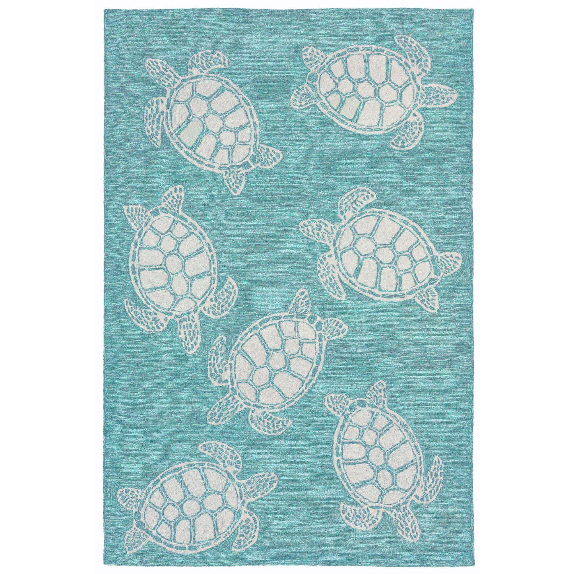 captivating Capri Turtle Blue area rug, a delightful addition to any space. With its aqua blue backdrop adorned with charming white outlined turtles, this rug brings a touch of tropical whimsy to your indoor or outdoor decor. Perfect for adding a coastal flair to your home, the Turtle decorative area rug is both stylish and versatile.