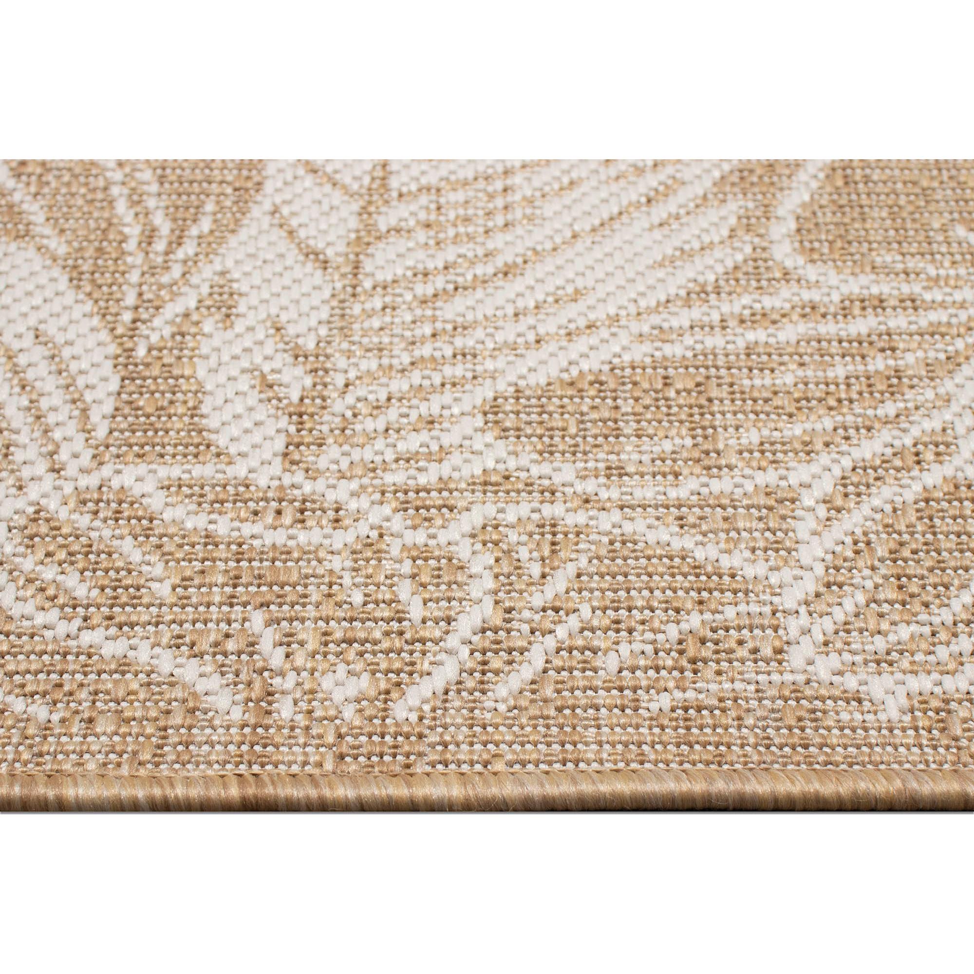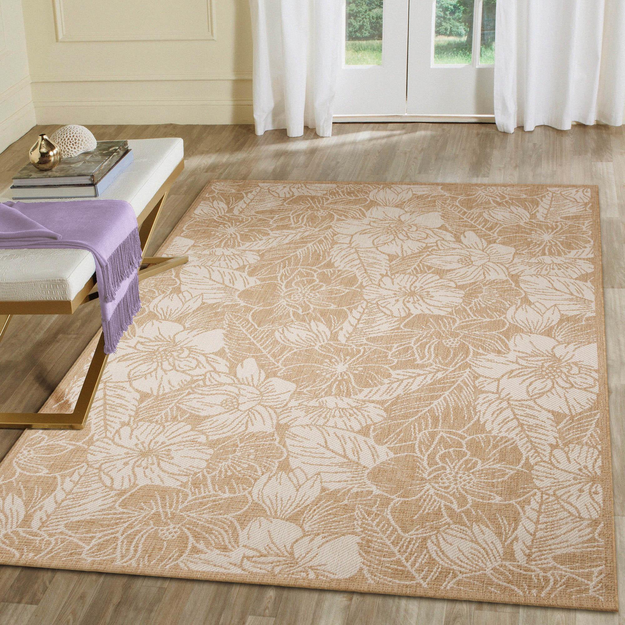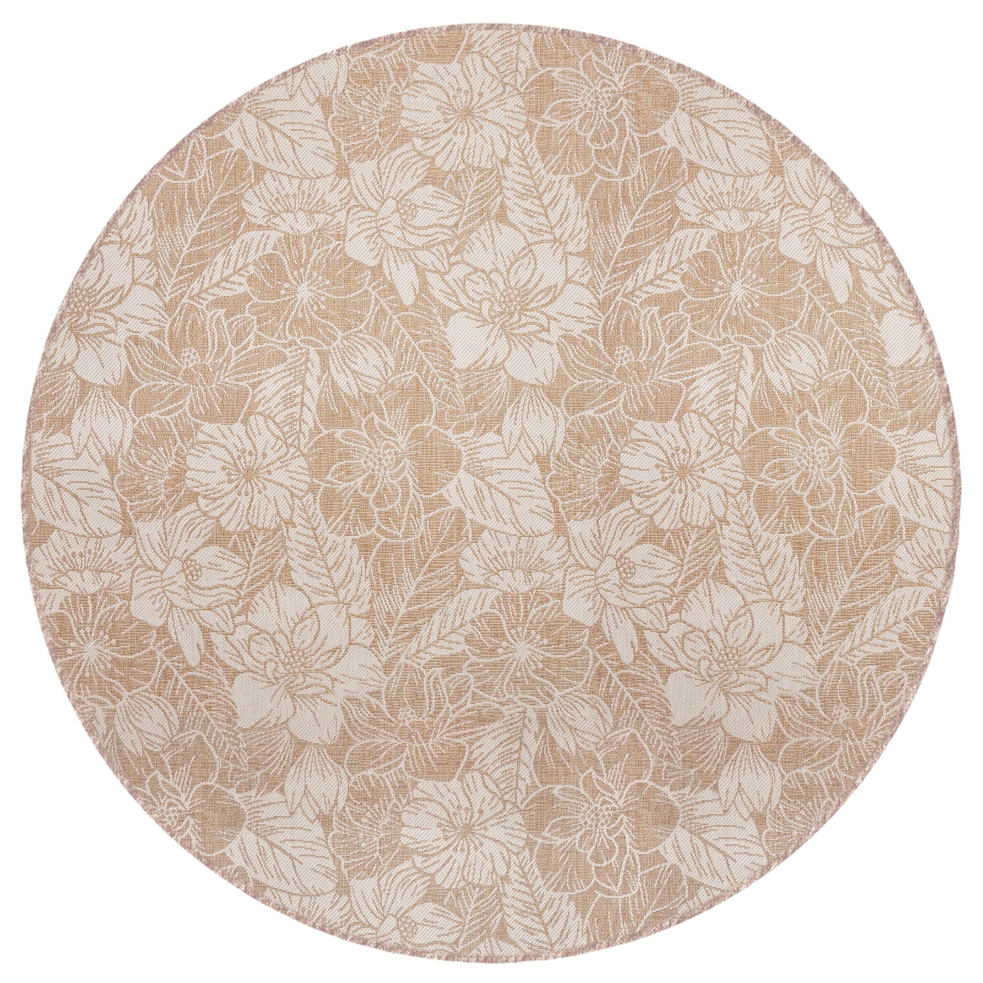 Carmel Botanical Beige area rug, a stunning addition to your home decor. Inspired by nature, this flatweave rug showcases a beautiful botanical pattern with etched florals in ivory against a tan sand background. The inverse colors create a striking visual contrast that will elevate any room's aesthetic.