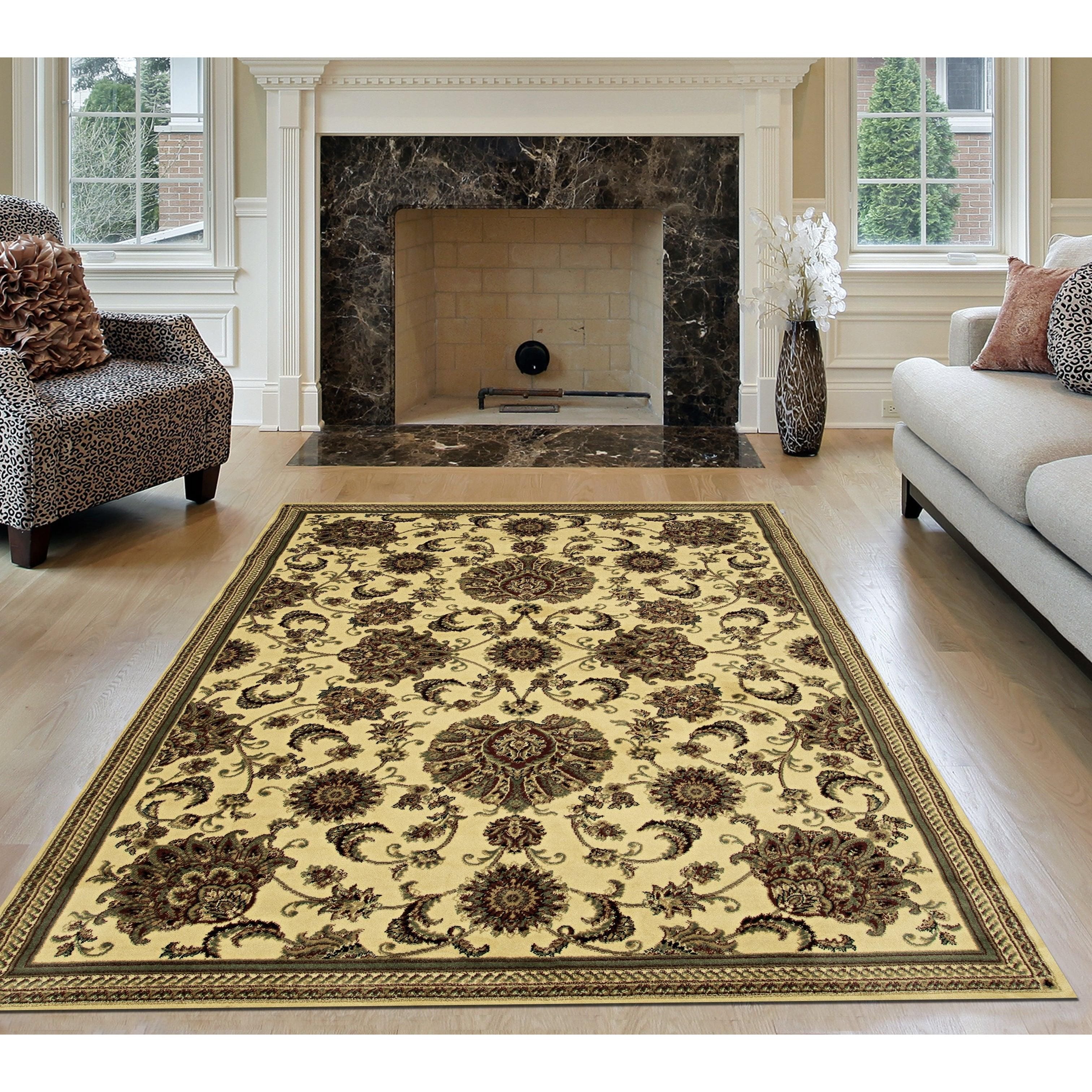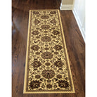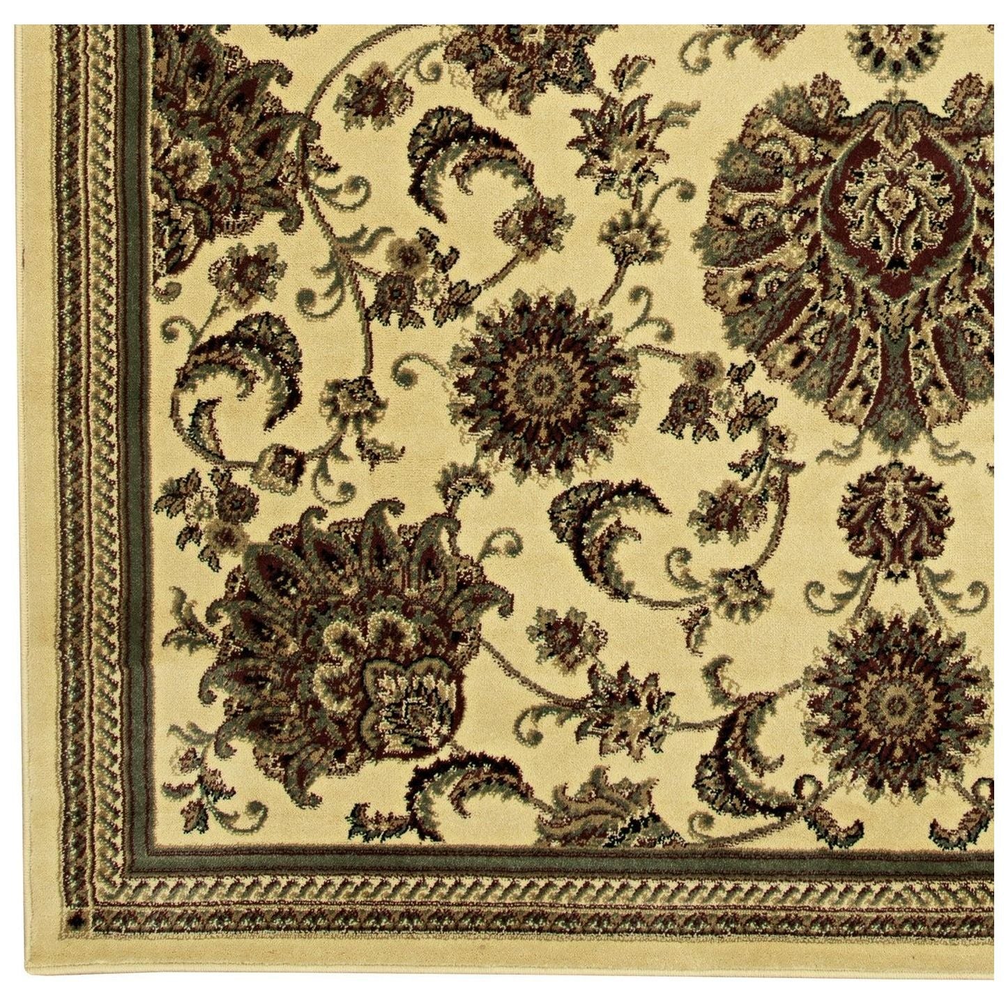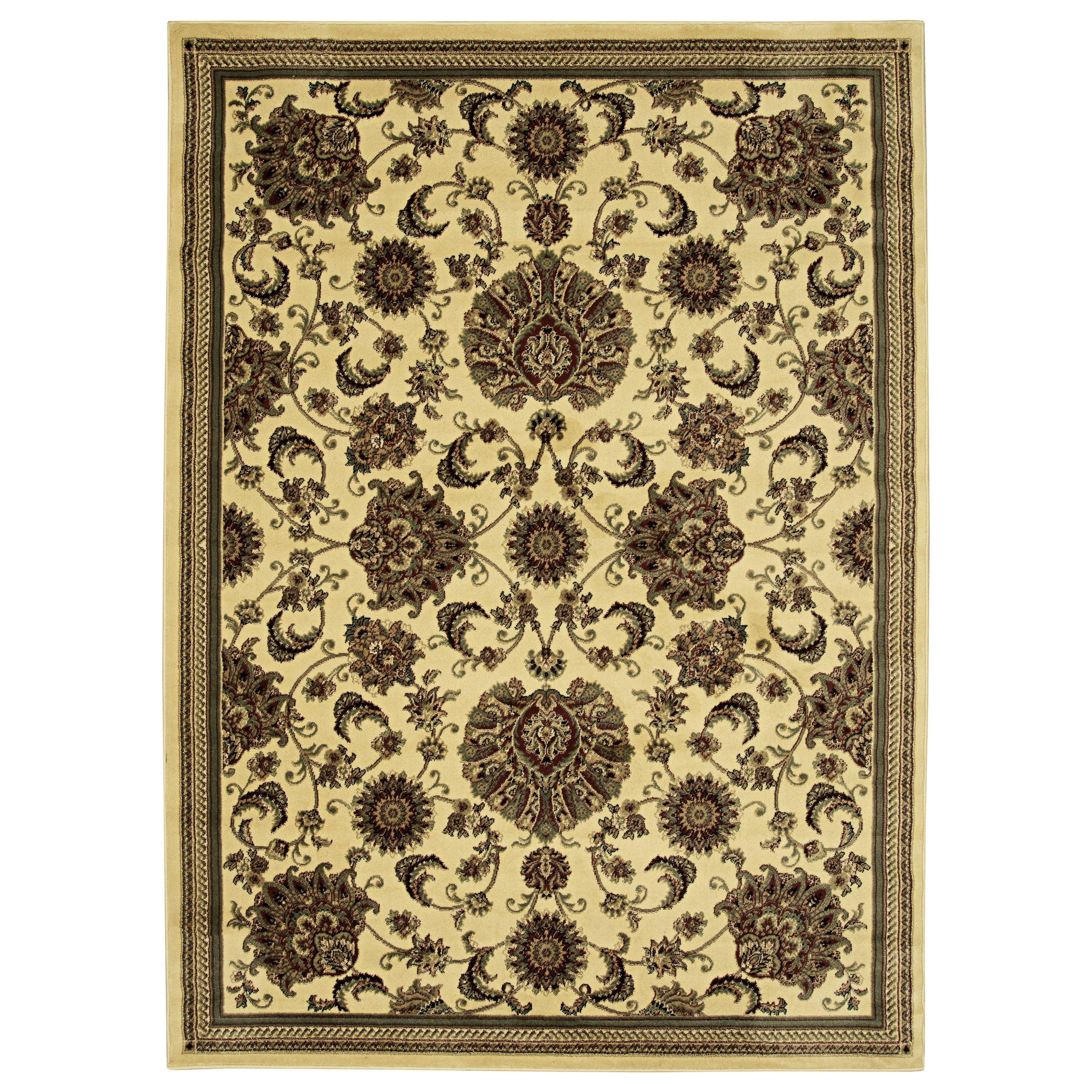 Castello 450 Ivory, a versatile rug featuring a timeless floral scroll design perfect for any room. The large floral motifs paired with an elegant ivory base create a transitional pattern that effortlessly complements various decor styles. Crafted in Turkey using heat-set polypropylene, this rug offers a soft, durable, and easy-to-clean accent ideal for high-traffic areas like entryways, hallways, bedrooms, playrooms, dining rooms, and living rooms.