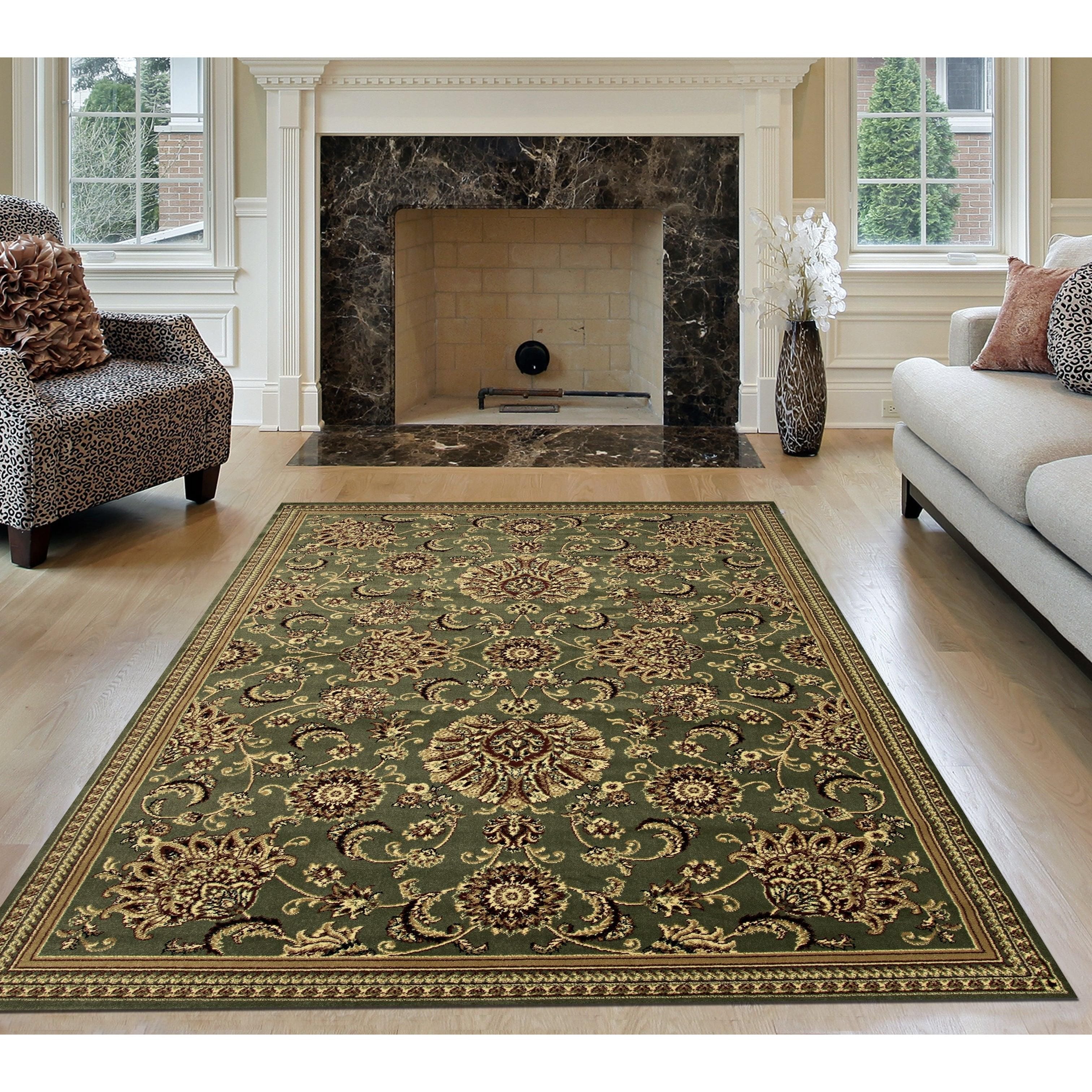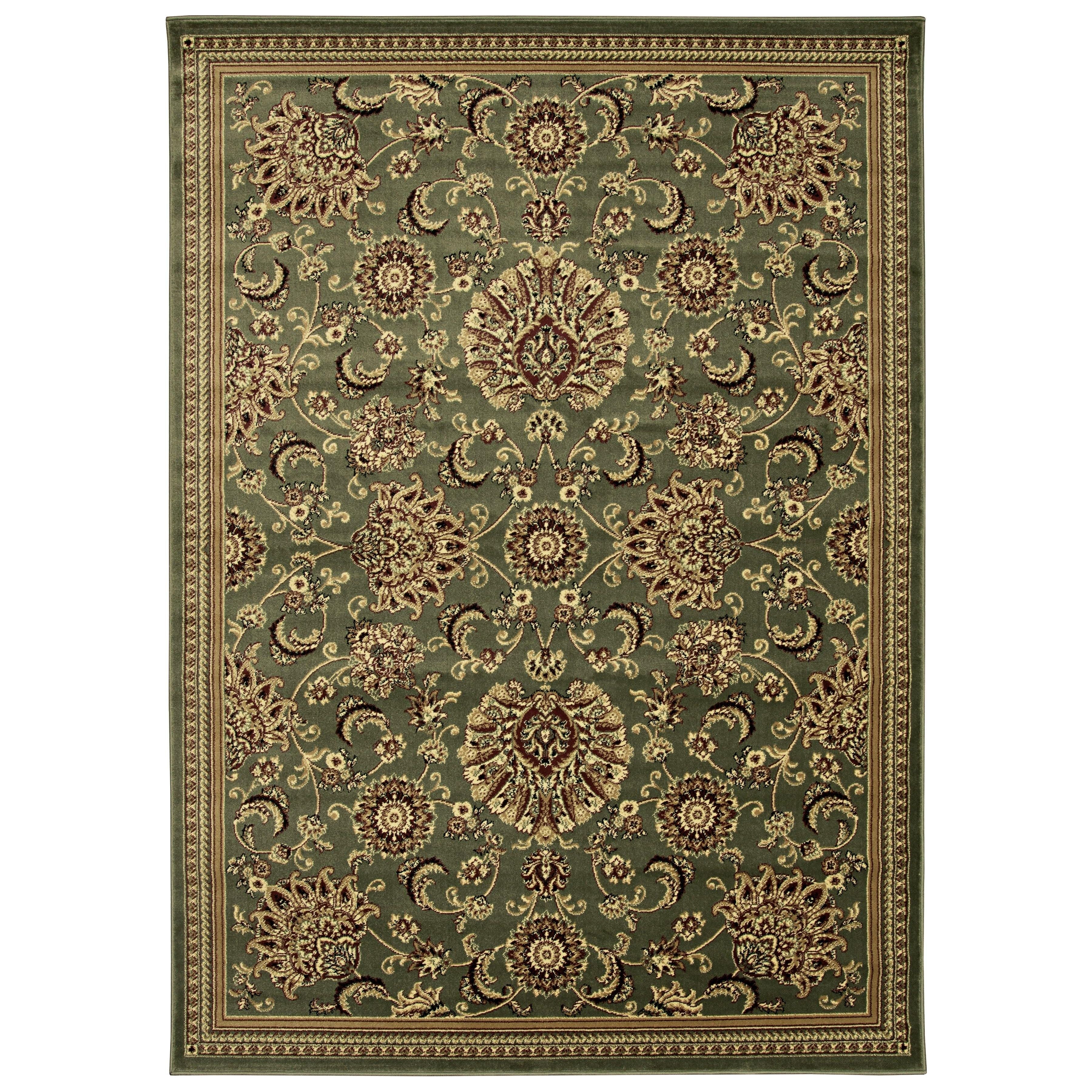 Castello 450 Sage - a versatile and timeless floral scroll design that effortlessly complements any room. This transitional pattern features large floral motifs on a dominant ivory base, creating a soft and elegant look. Crafted in Turkey, the rug is made of high-quality heat-set polypropylene, ensuring durability, easy maintenance, and a non-shedding finish. Perfect for your entryway, hallway, bedroom, playroom, dining room, or living room, this machine-made rug adds a touch of sophistication to your decor.