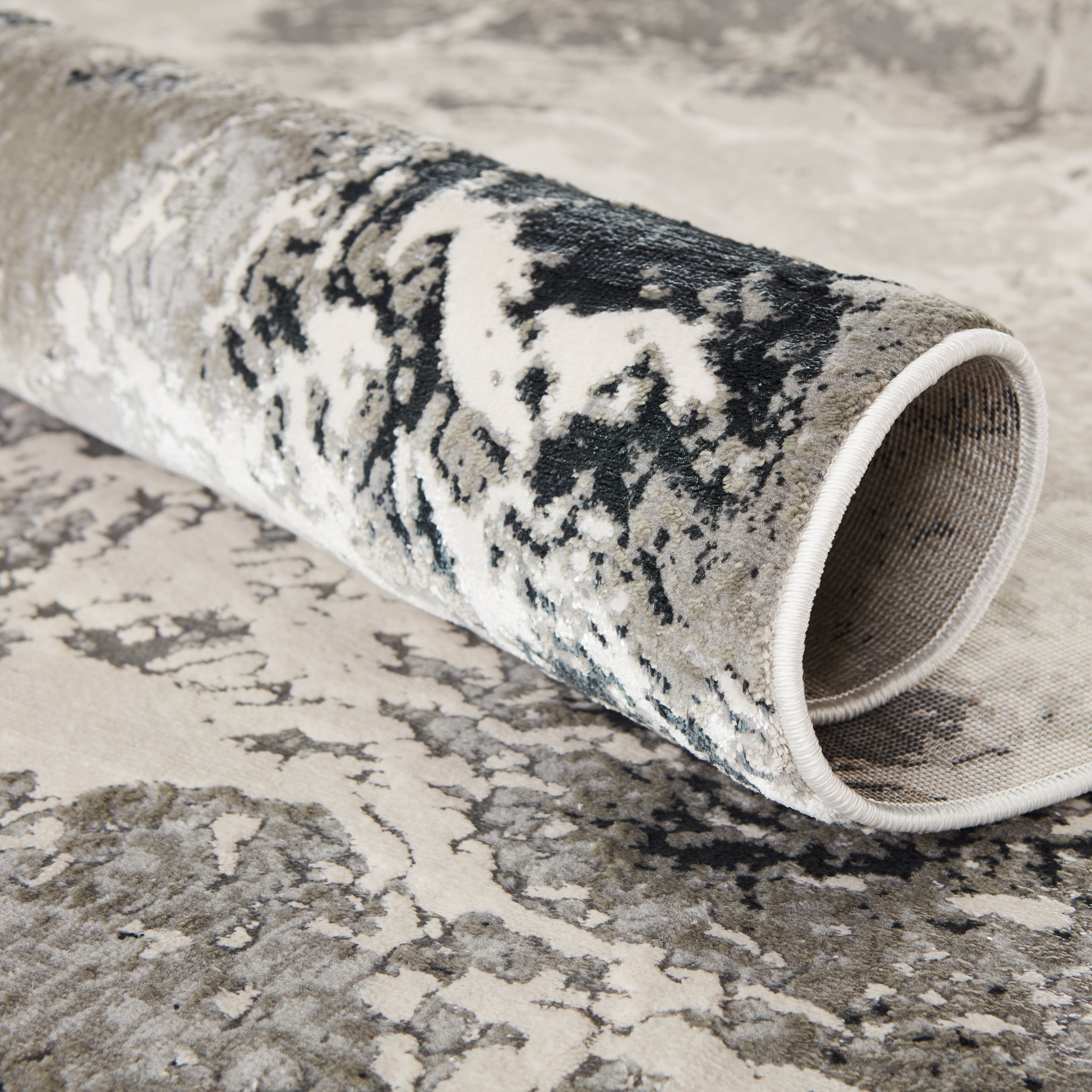 Catalyst CTY01 Fen rug, a striking addition to your home decor that effortlessly blends modern style with versatility. The rug's organic abstract design is a true show-stopper, adding a contemporary edge to any room. In shades of gray, black, taupe, and silver, the Fen rug creates a dynamic and shimmering statement that catches the eye.