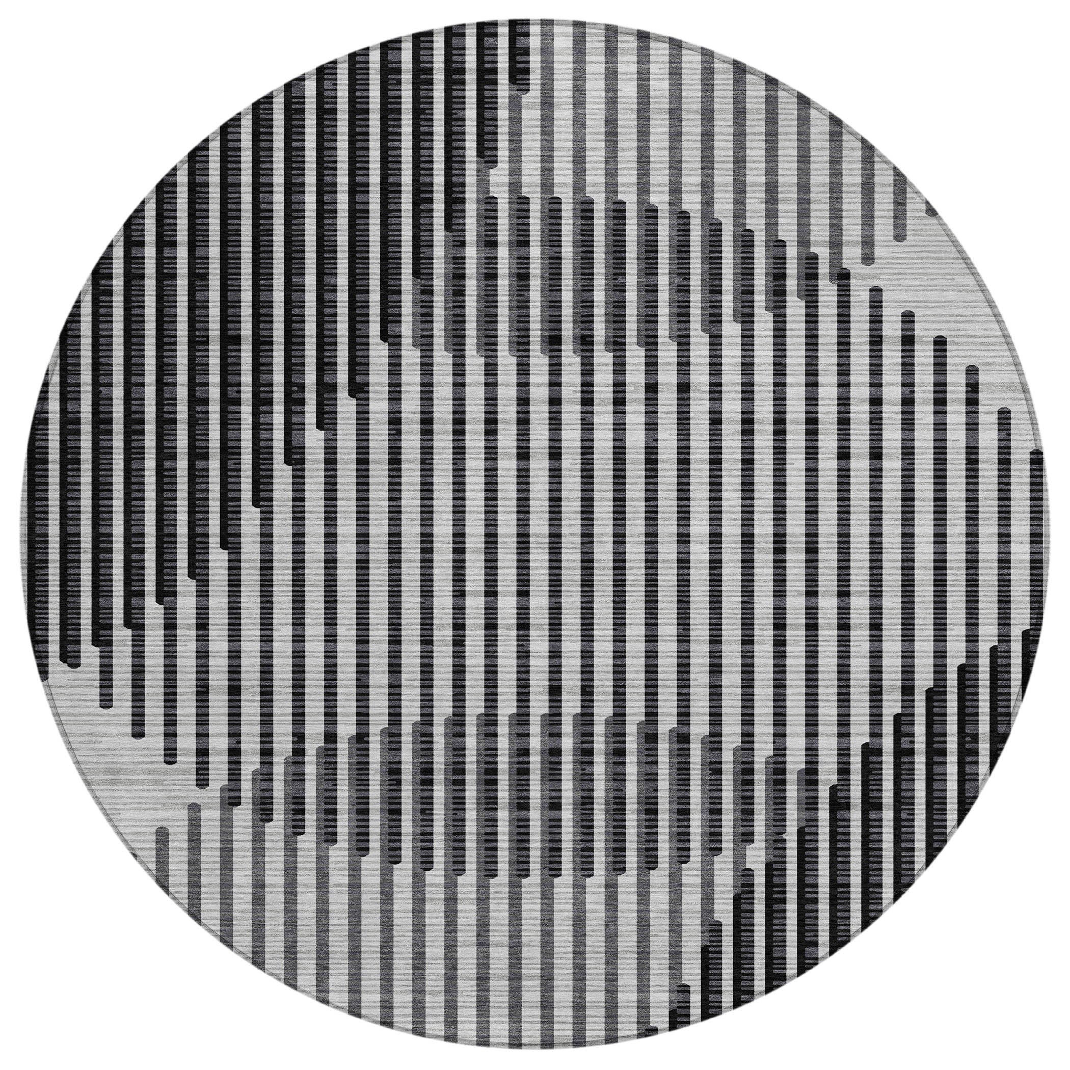 Our stylish area rug showcases an engaging pattern of circles and vertical lines, offering a transparent effect that enhances any room. The transitional design with its circular elements adapts beautifully to both contemporary and classic settings. Engineered for durability, this rug is UV stabilized, features an ultra-thin construction for ease of use, and is machine-washable, ensuring it stands up to the rigors of a busy, pet-friendly home.