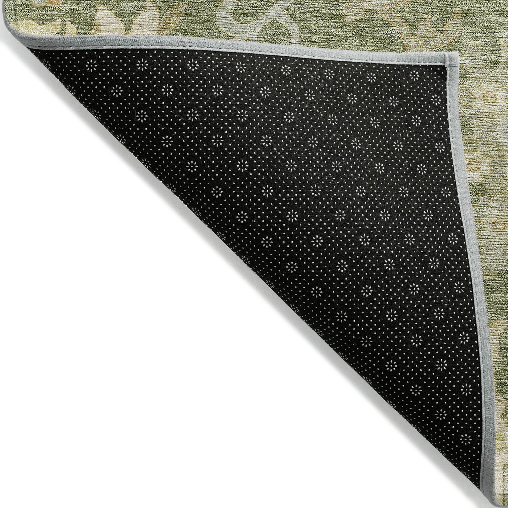 "First off, I love this rug .. the colours and the texture of the rug turned out to be exactly what I was hoping for - a very neutral-looking moss green and ivory background with a few tiny pale blue accents. Love the look!"