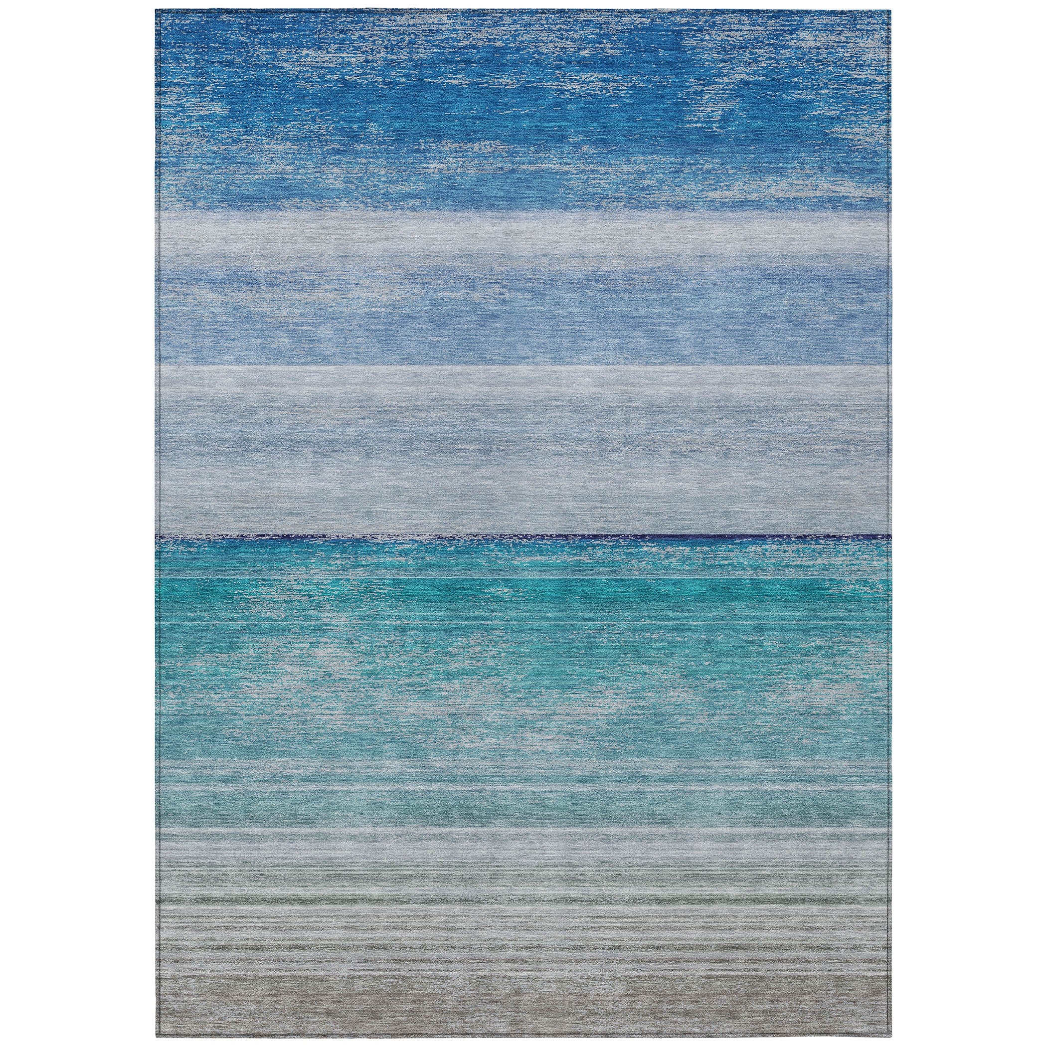 This elegant rug, featuring stripes that mimic the ocean, enhances any transitional space with its calming pattern. The fluid stripes add depth and character, blending contemporary design with classic charm. UV stabilized for versatile indoor or outdoor use, it ensures long-lasting durability. Its ultra-thin profile lies flat and is machine-washable for convenience. Perfect for homes with kids and pets, this rug merges sophistication with functionality.