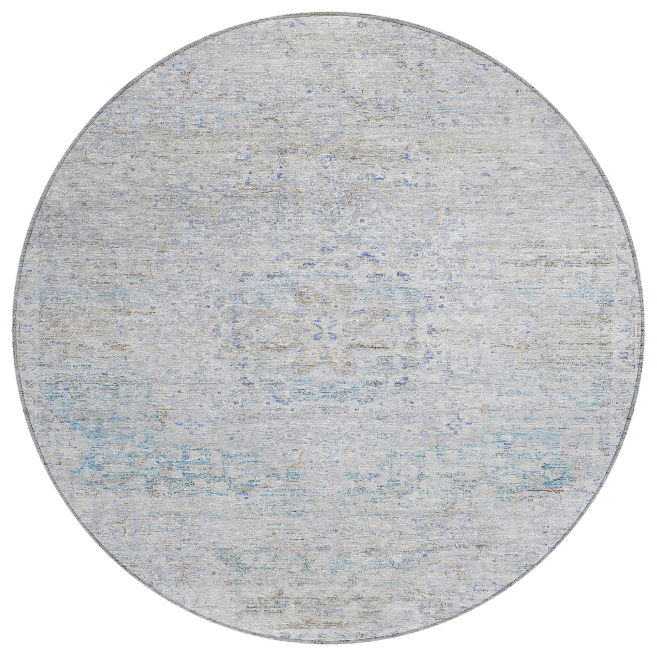 Featuring a center medallion and a vintage distressed border, this traditional rug exudes timeless elegance with its classic design. The detailed medallion and aged border create a refined look that complements various decor styles with a touch of historical charm. UV stabilized for long-lasting use, this rug is suited for both indoor and outdoor environments, preserving its sophisticated appearance over time. The ultra-thin profile ensures easy integration under furniture, and it’s machine-washable for hassle-free care. Family and pet-friendly, this rug combines traditional beauty with modern functionality.