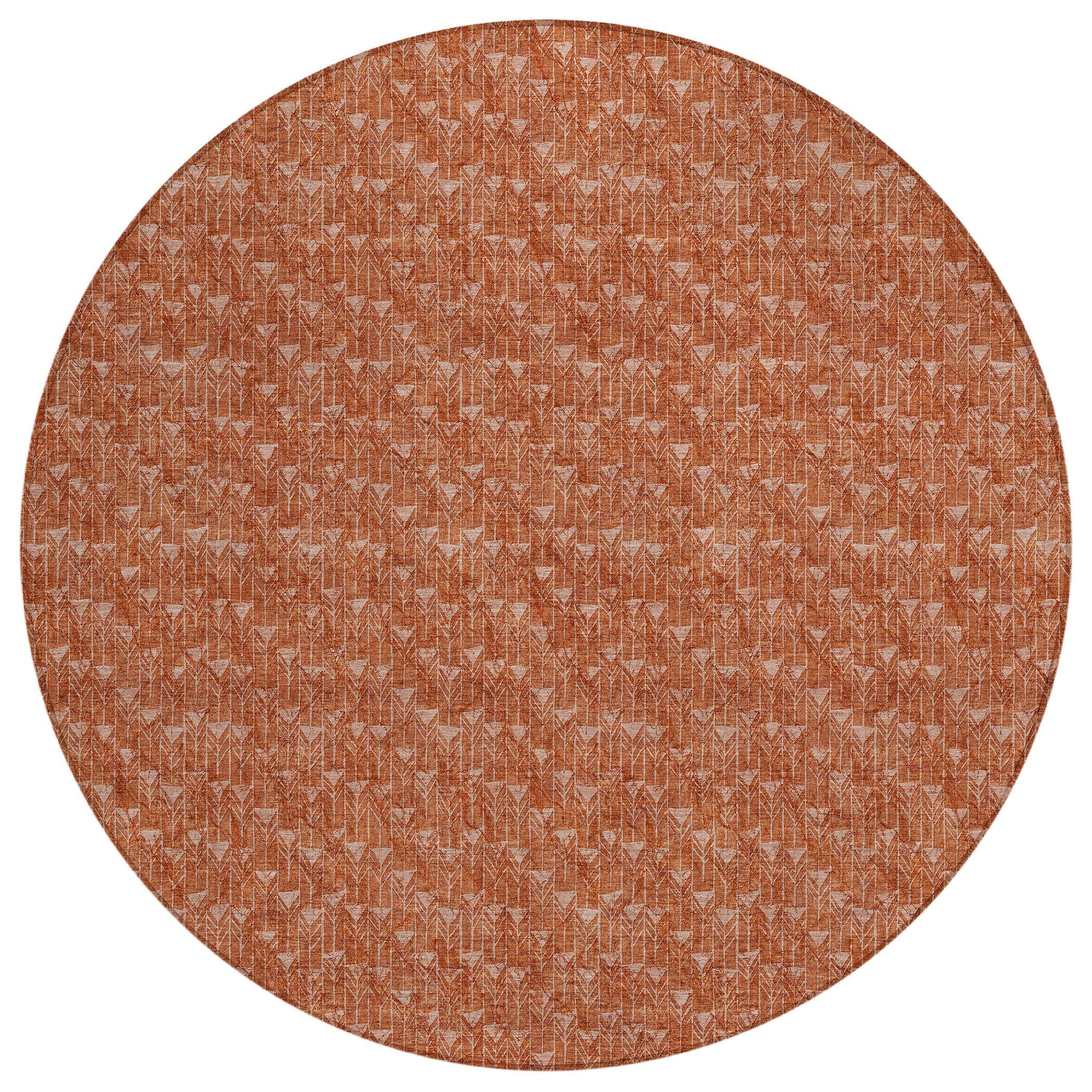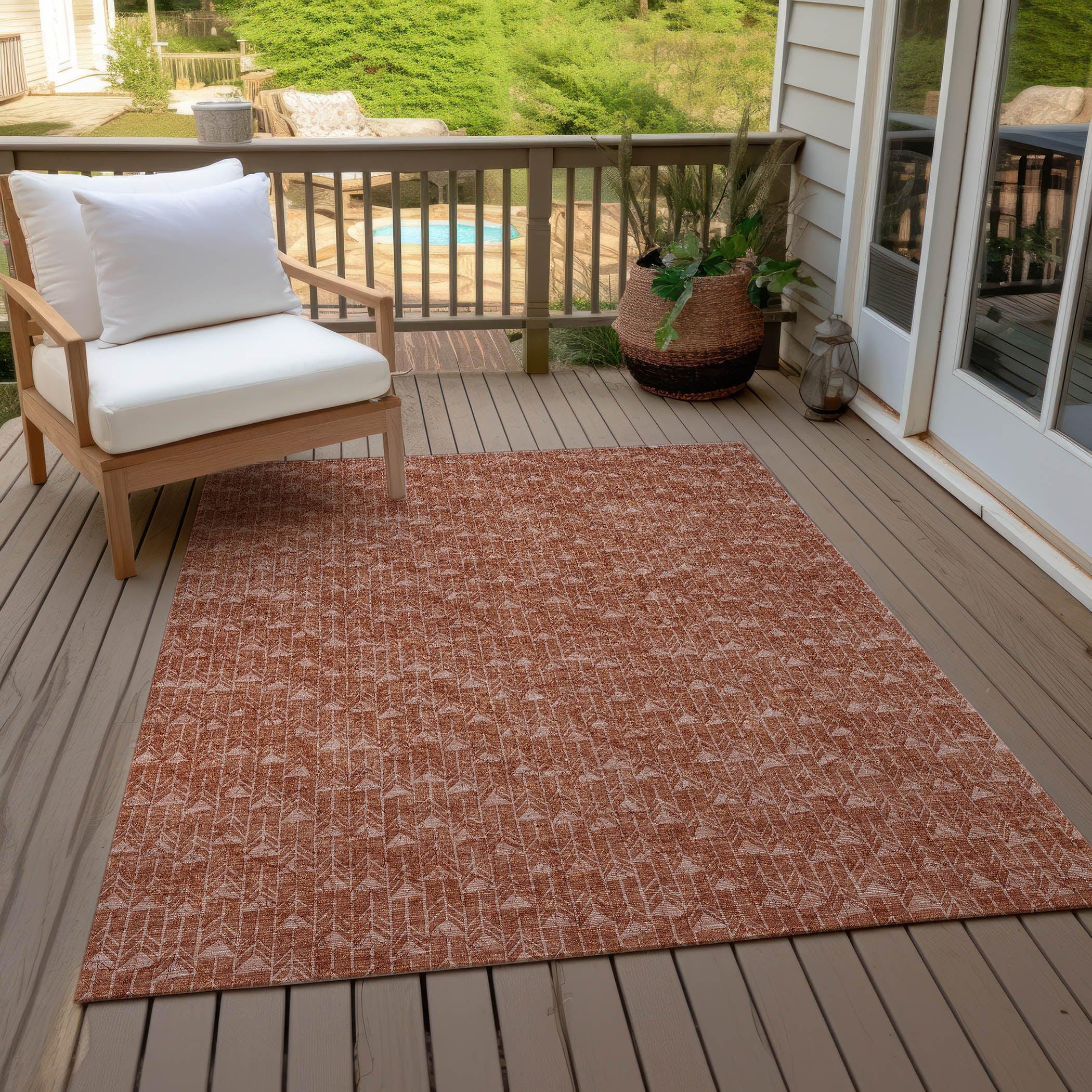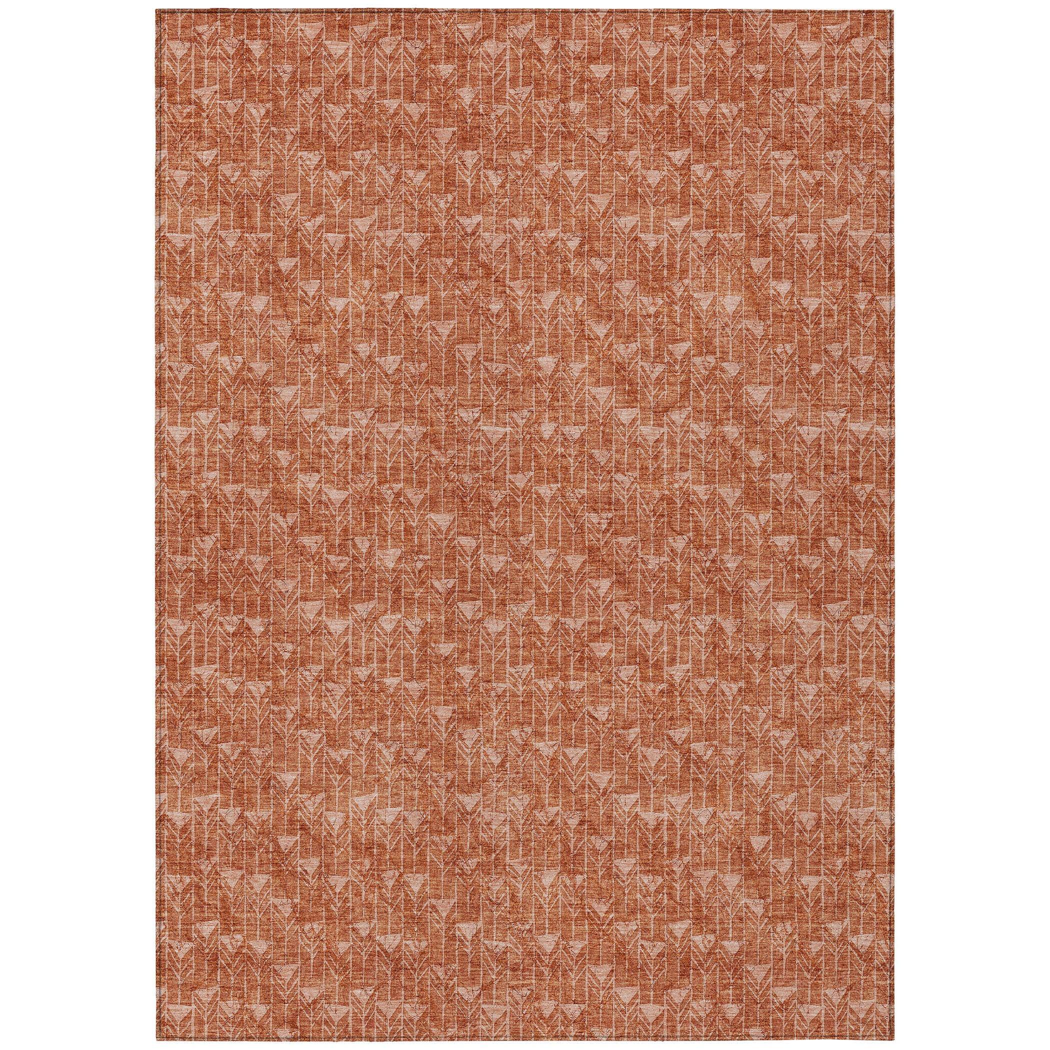 Chantille ACN514 Terracotta area rug, a versatile addition to your home decor. This transitional rug showcases a striking geometric arrow design that adds a touch of modern style to any space. Whether used indoors or outdoors, this UV-stabilized rug is designed for durability and easy maintenance.