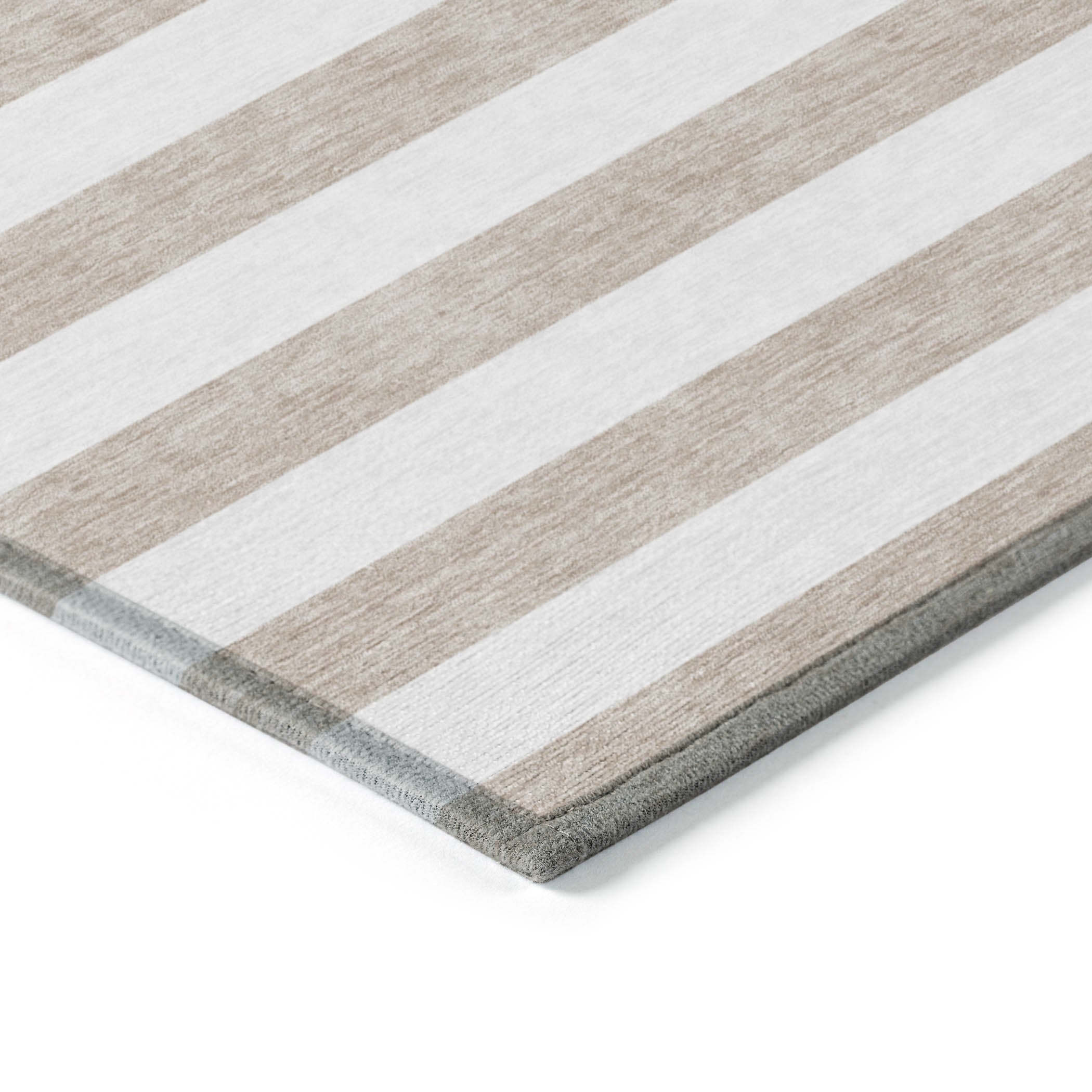 Chantille ACN528 Taupe area rug, a striking addition to your space. Featuring bold cabana lines, this transitional striped rug brings energy and visual appeal to any room. Its UV stabilization makes it suitable for both indoor and outdoor use, offering flexibility in placement. The ultra-thin design includes a non-skid backing for stability, eliminating the need for a separate rug pad. Easy to maintain, this machine-washable rug is perfect for busy households and pet-friendly environments. Elevate your decor with this unique and practical piece that combines style and functionality effortlessly.