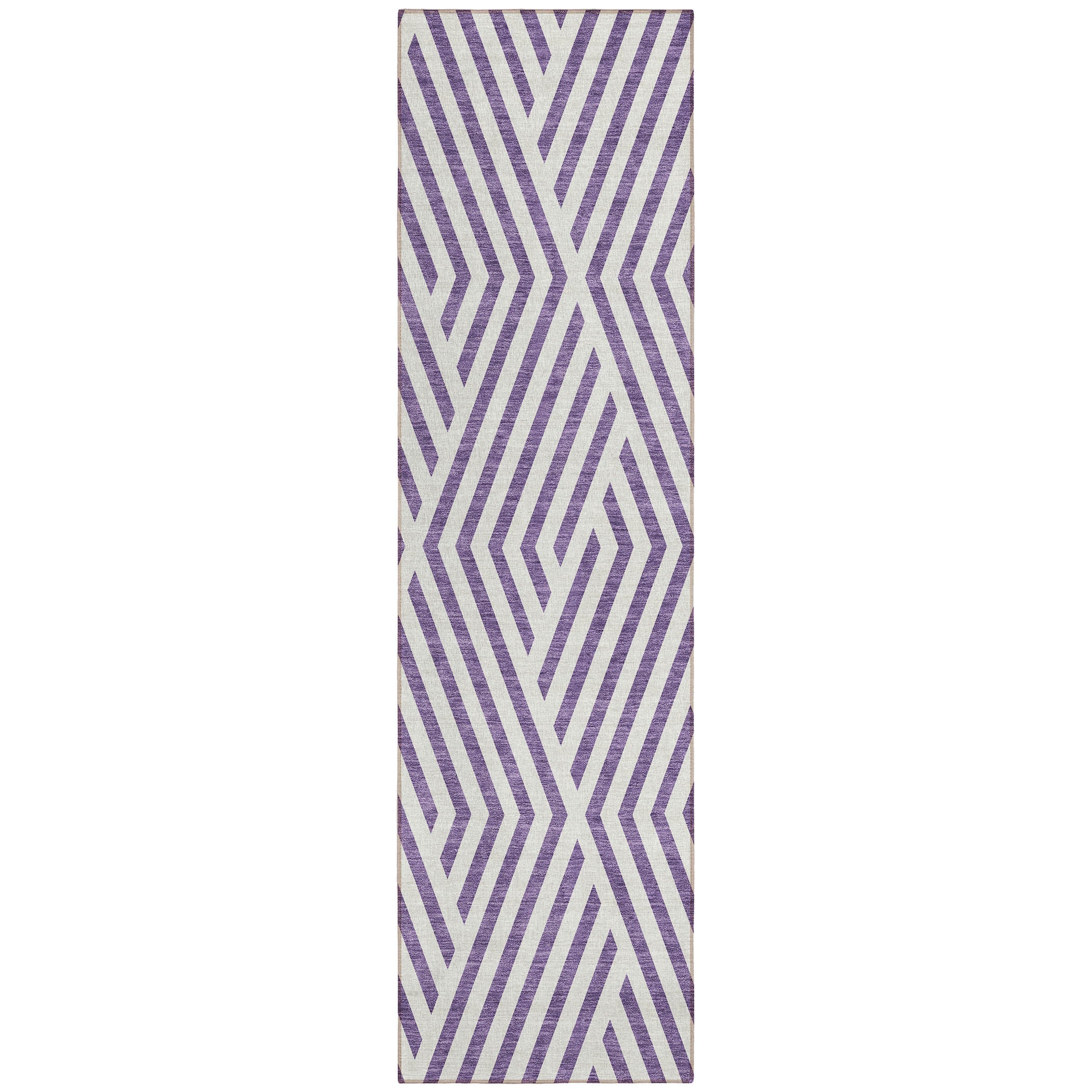 Introduce a touch of elegance to your living space with the Chantille ACN550 Purple rug. Featuring a stunning pattern of broken diamond shapes, this transitional geometric rug adds a modern flair to any room. Whether placed indoors or outdoors, its UV stabilization ensures long-lasting vibrancy. The rug's ultra-thin design includes a built-in non-skid backing, providing stability without the need for an extra rug pad. Easy to maintain, this machine-washable rug is perfect for busy households with pets and children. Elevate your decor with this stylish and practical addition that effortlessly combines beauty and functionality.