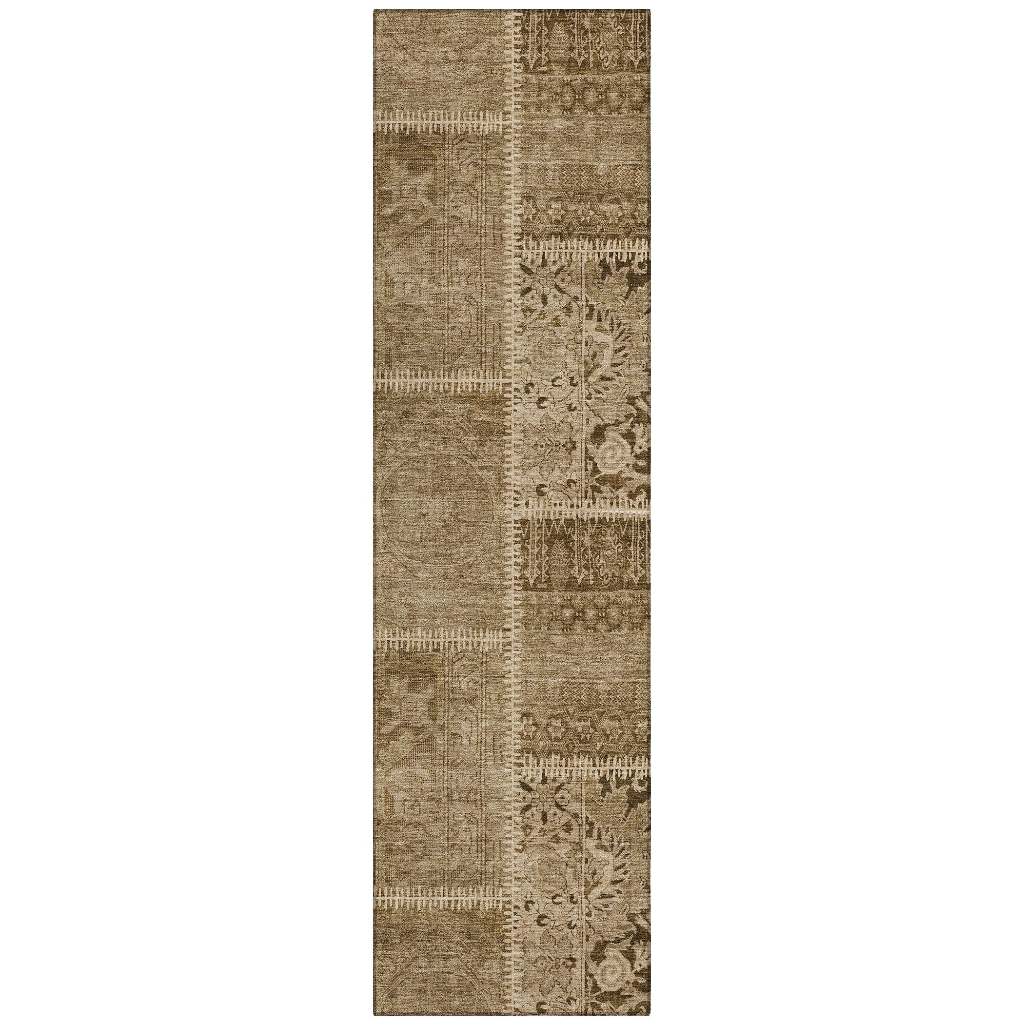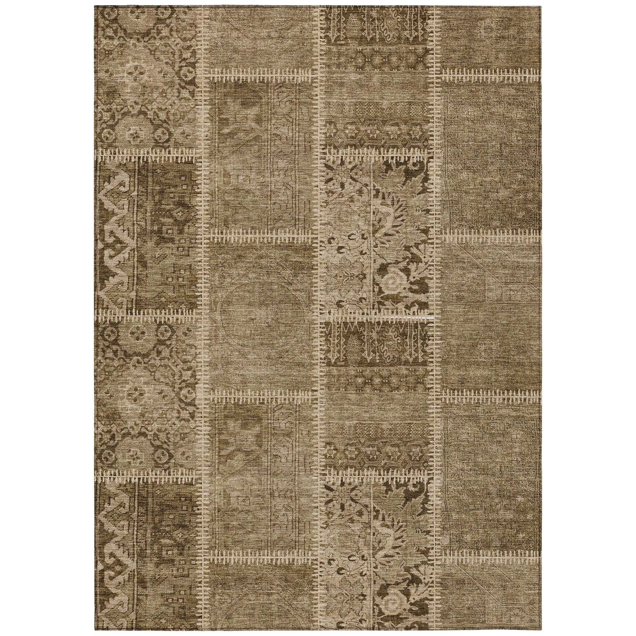 Introducing our Chantille ACN635 Brown rug, the perfect way to elevate your interior design with its unique transitional style. This rug is expertly crafted with meticulously stitched panels that come together to create a captivating patchwork layout, making it an eclectic yet harmonious addition to any space.