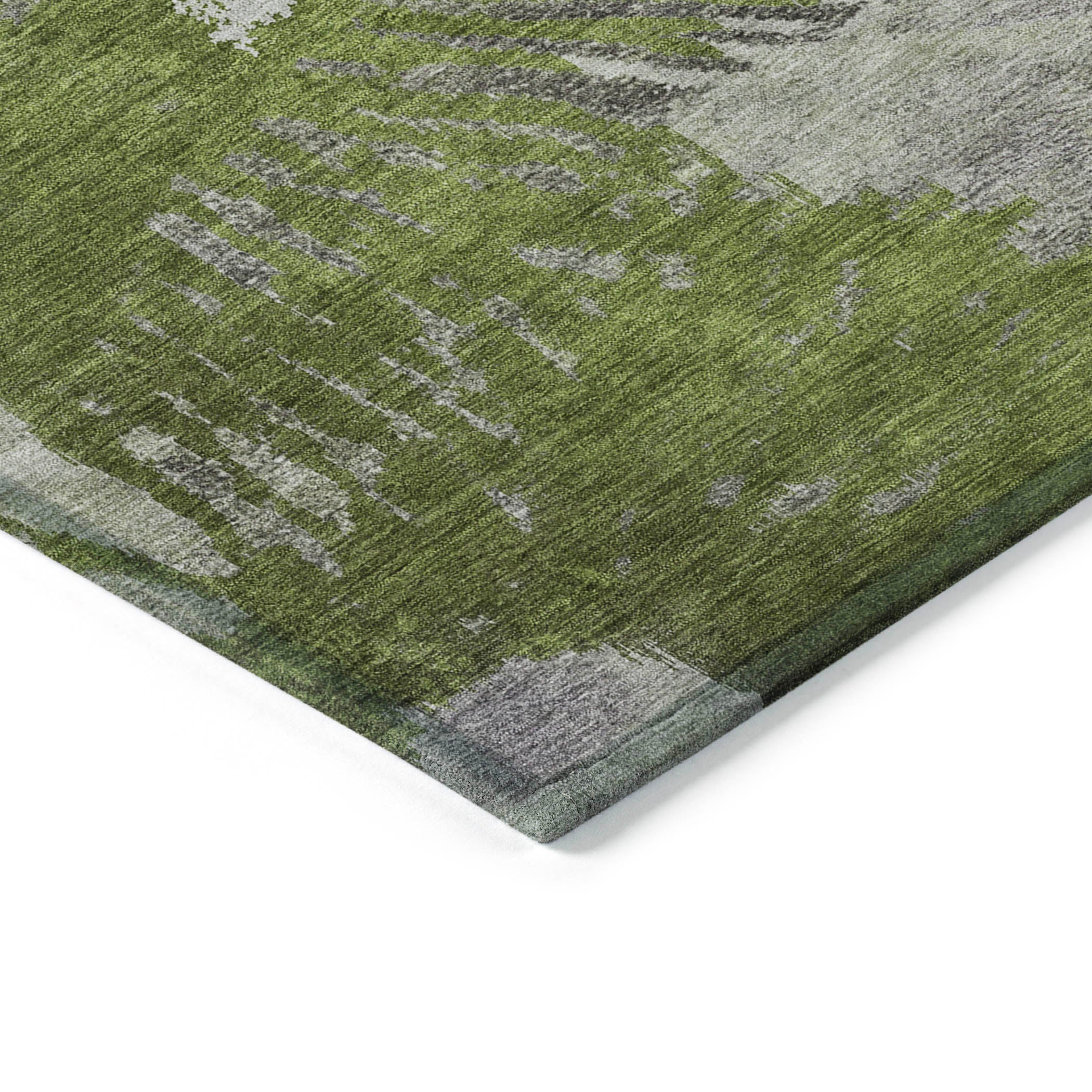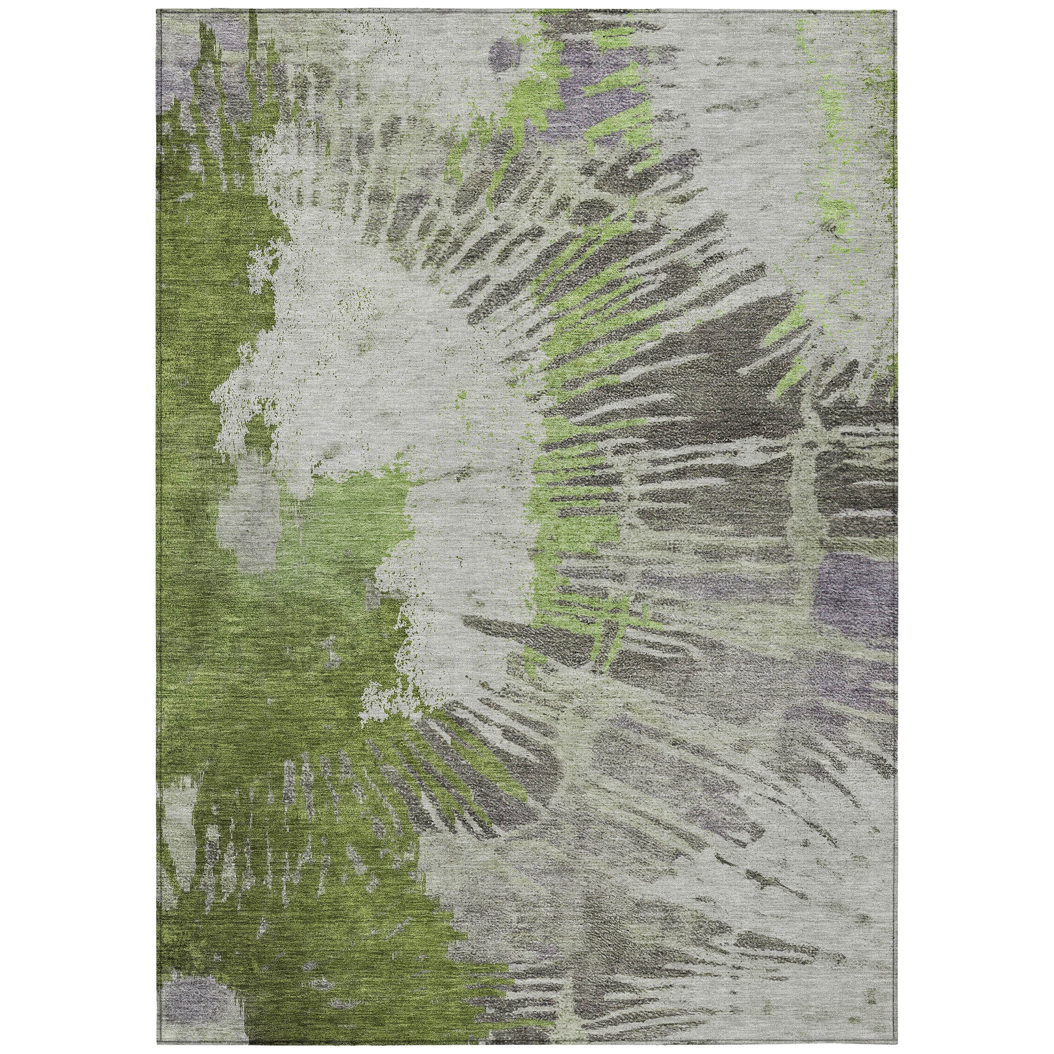Elevate your home decor with the Chantille ACN645 Olive rug, a stunning blend of modern and timeless design. Its unique pattern showcases unrefined lines flowing outward from a side burst, creating a contemporary and eclectic vibe that will effortlessly complement any room.