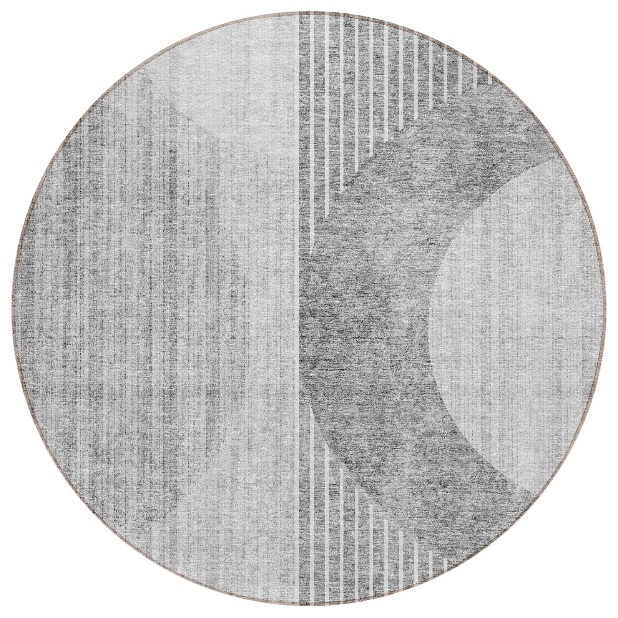 Chantille ACN676 Gray area rug, showcasing a captivating linear design with semi circles at its core. This modern twist on transitional style effortlessly elevates your decor with its sleek aesthetic. Versatile in function, this rug is UV-stabilized for use indoors or outdoors, making it a practical choice for any space. Its ultra-thin construction includes a built-in non-skid backing, eliminating the necessity of buying a separate rug pad. Easy maintenance is key - this rug is machine-washable, perfect for busy households and pet owners seeking both convenience and sophistication. Add a touch of elegance to your home with the Chantille ACN676 Gray area rug today!