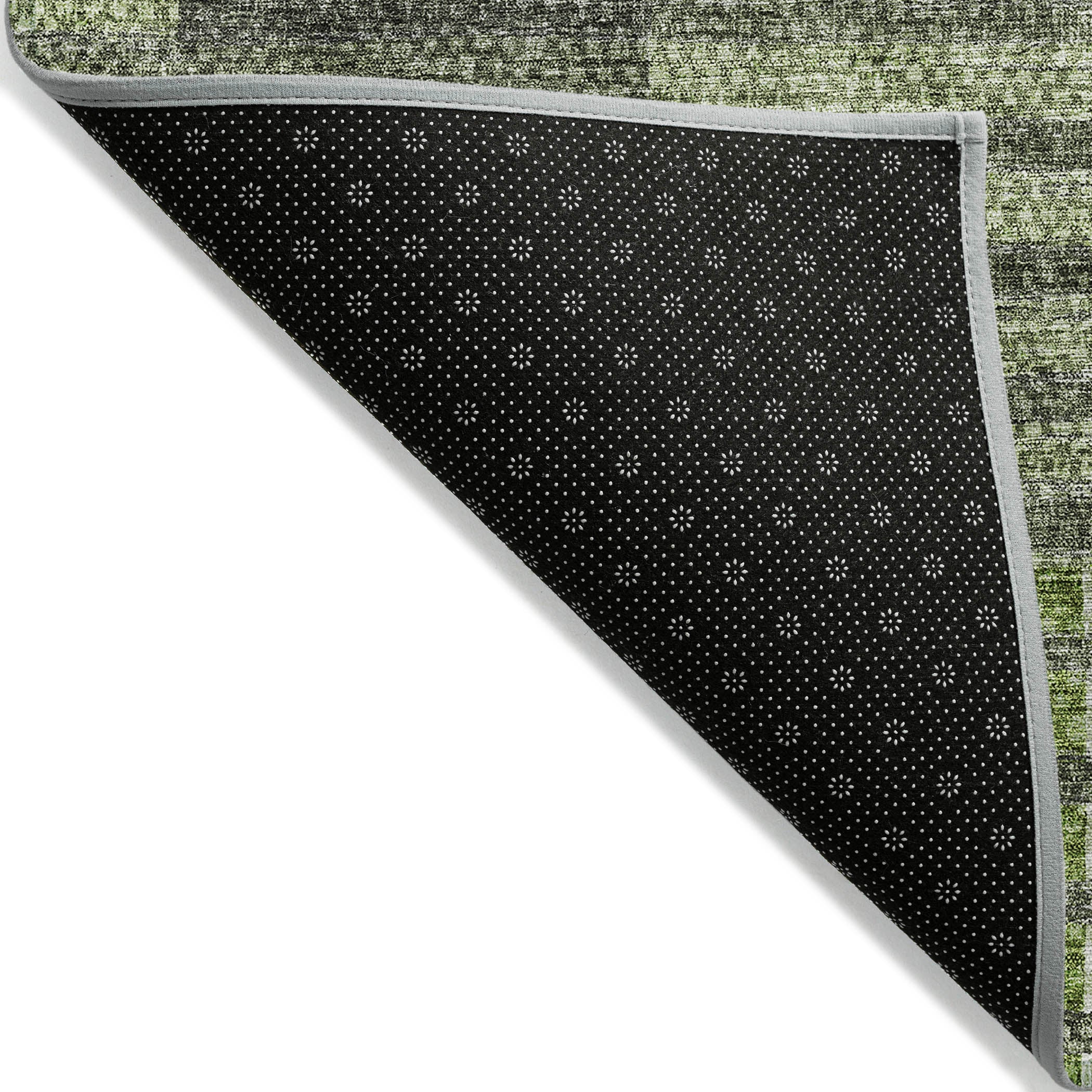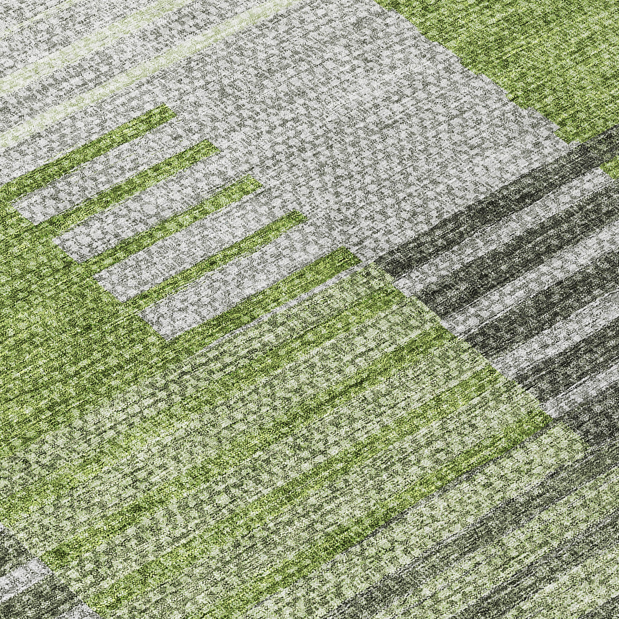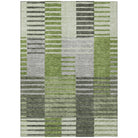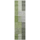 Chantille ACN687 Green rug, a captivating piece that effortlessly blends transitional and striped designs. The rug features a unique pattern of broken horizontal bars in harmonious color shades, making it a versatile addition to any decor scheme.