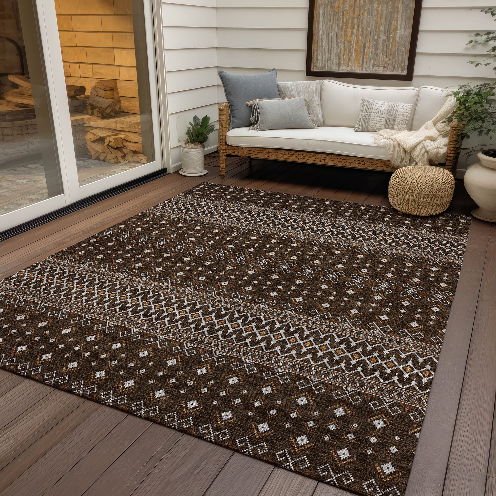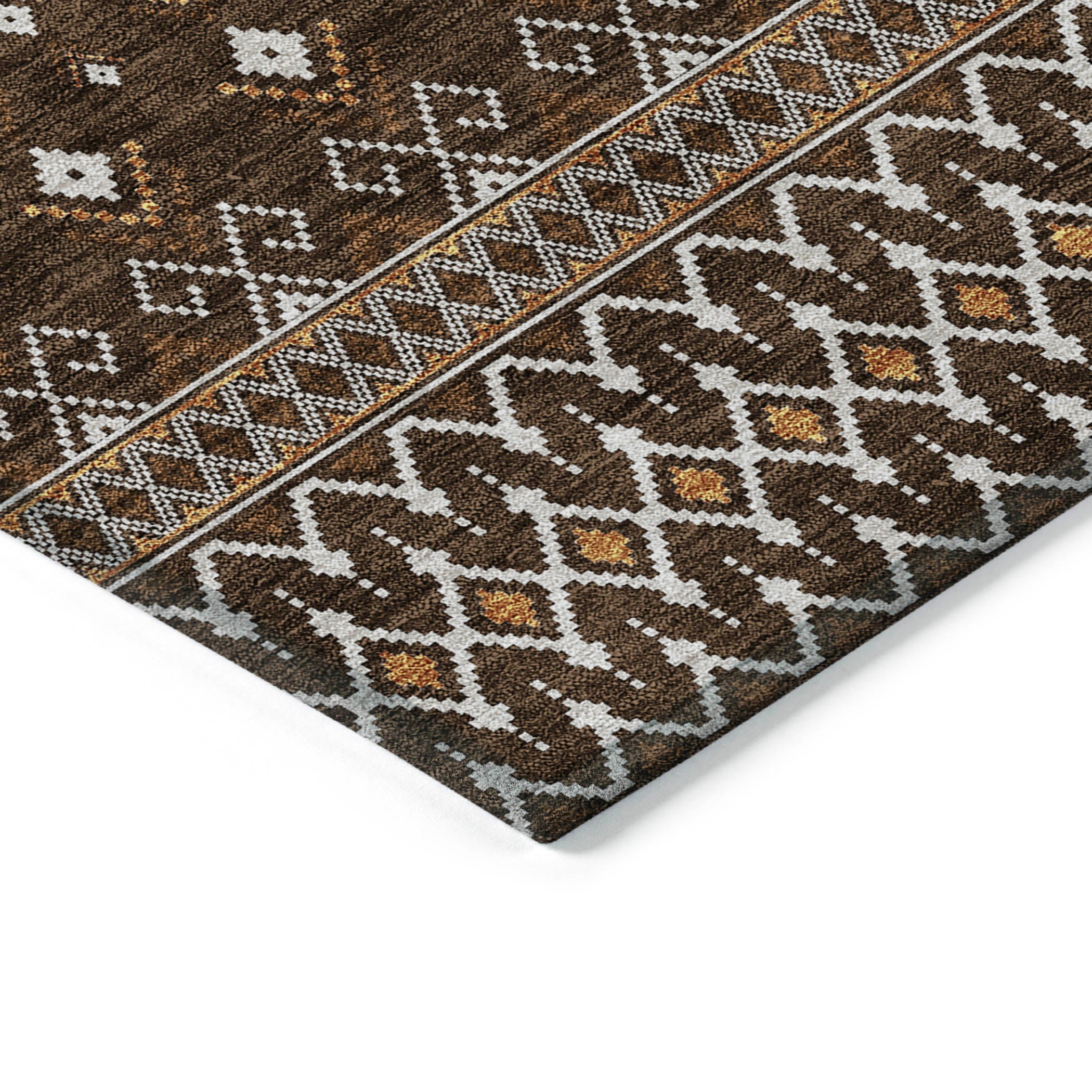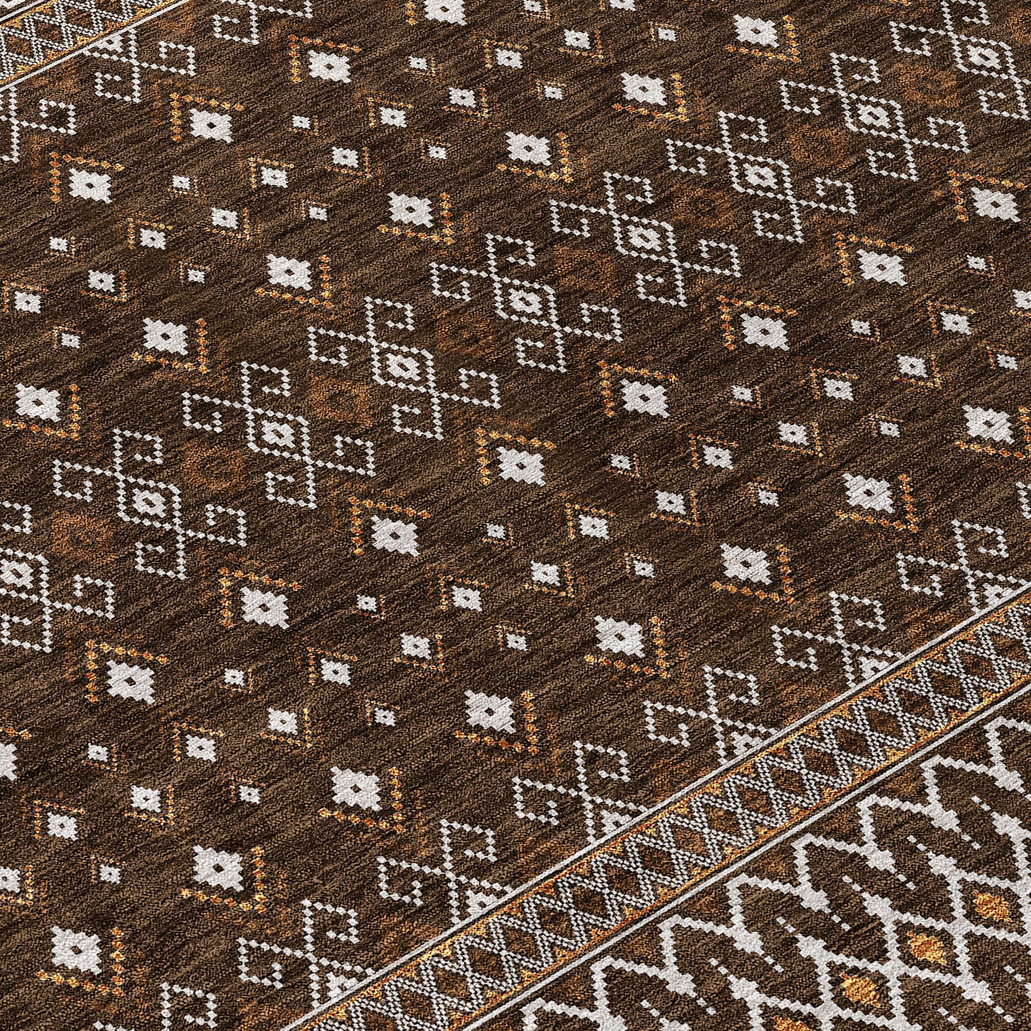 Chantille ACN708 Chocolate rug, a perfect blend of boho chic and transitional elegance. This rug features delicate diamond patterns that embody the bohemian spirit, adding charm to any space. With UV protection, it's suitable for both indoor and outdoor use, bringing style to your living room or backyard. The ultra-thin design includes a non-slip backing for safety and durability, making it ideal for busy households with pets and kids. Plus, its machine-friendly fabric makes cleaning a breeze. Elevate your decor with this visually stunning and practical rug that promises both beauty and functionality in one package.