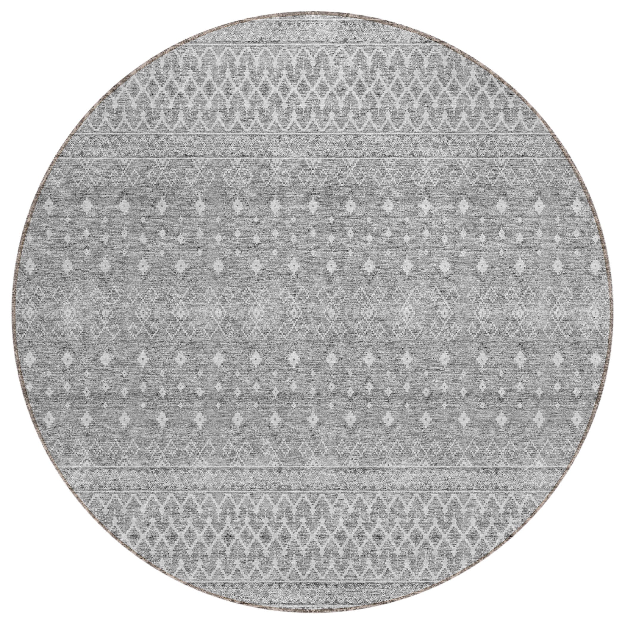 Chantille ACN709 Silver rug, a stunning blend of bohemian design and timeless appeal. This rug features intricate diamond patterns that embody the essence of boho chic, adding a touch of elegance to any space. Crafted with UV-protected fabric, it's perfect for indoor lounges or outdoor terraces, ensuring its beauty lasts for years to come.