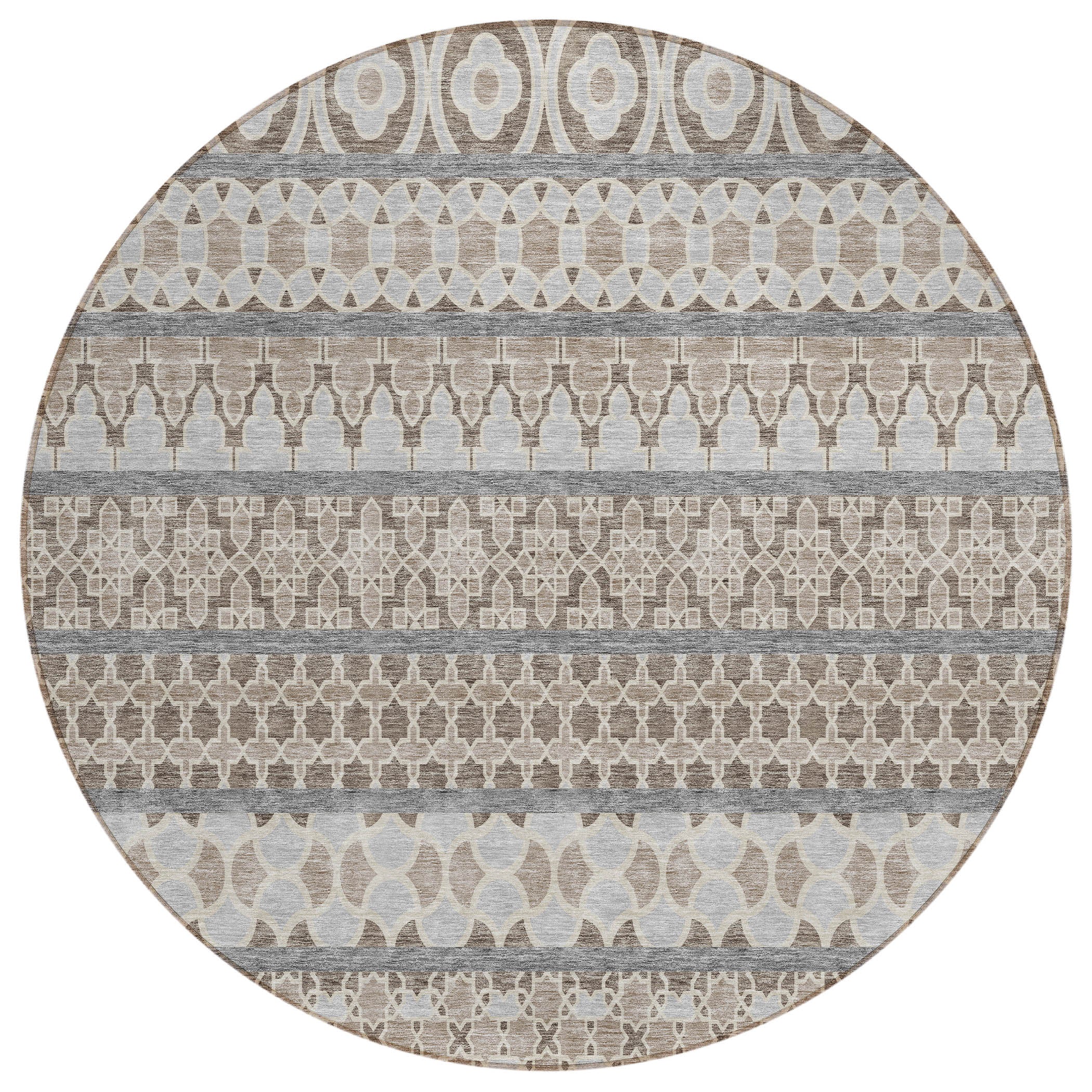 Experience the luxurious charm of the Chantille ACN726 Taupe area rug in your home. This stunning piece features a blend of Bohemian stripe patterns and intricate motifs that symbolize fluidity and change. Whether you're looking to add a touch of sophistication to your indoor space or enhance your outdoor decor, this rug is versatile and stylish.