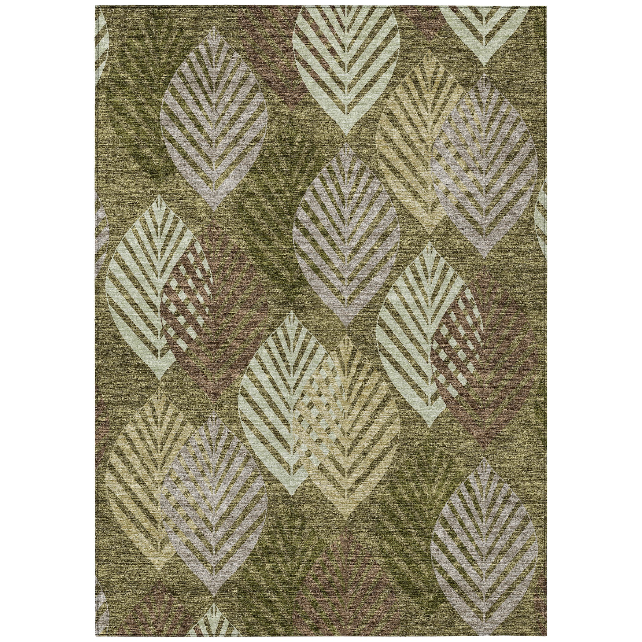 Chantille ACN744 Olive rug, a stunning addition to your home decor. Embrace a transitional design with a floral twist as vertical leaves overlap to create an exquisite pattern. This rug brings a serene botanical charm to any room, turning it into a peaceful sanctuary for relaxation.