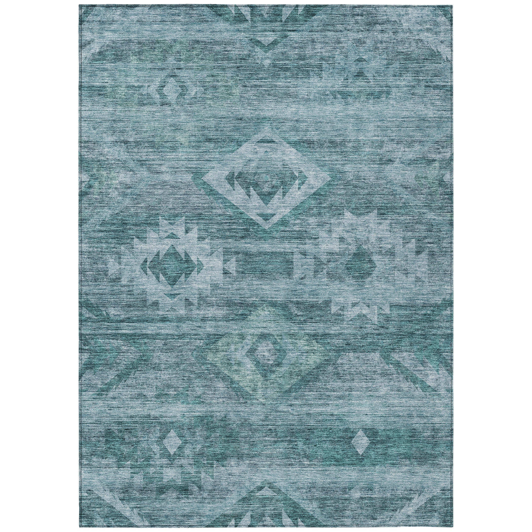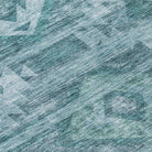 Chantille ACN837 Teal area rug, blending a striking Southwest tribal motif with transitional sophistication. This design seamlessly merges traditional influences with modern flair, ideal for enhancing the style of any contemporary living space. Crafted with UV stabilization, this rug boasts exceptional durability for both indoor and outdoor use. The ultra-thin construction adds a sleek touch to your decor while providing robustness that stands the test of time. Additionally, its machine-washable feature ensures easy maintenance, making it a practical choice for households with pets and children.