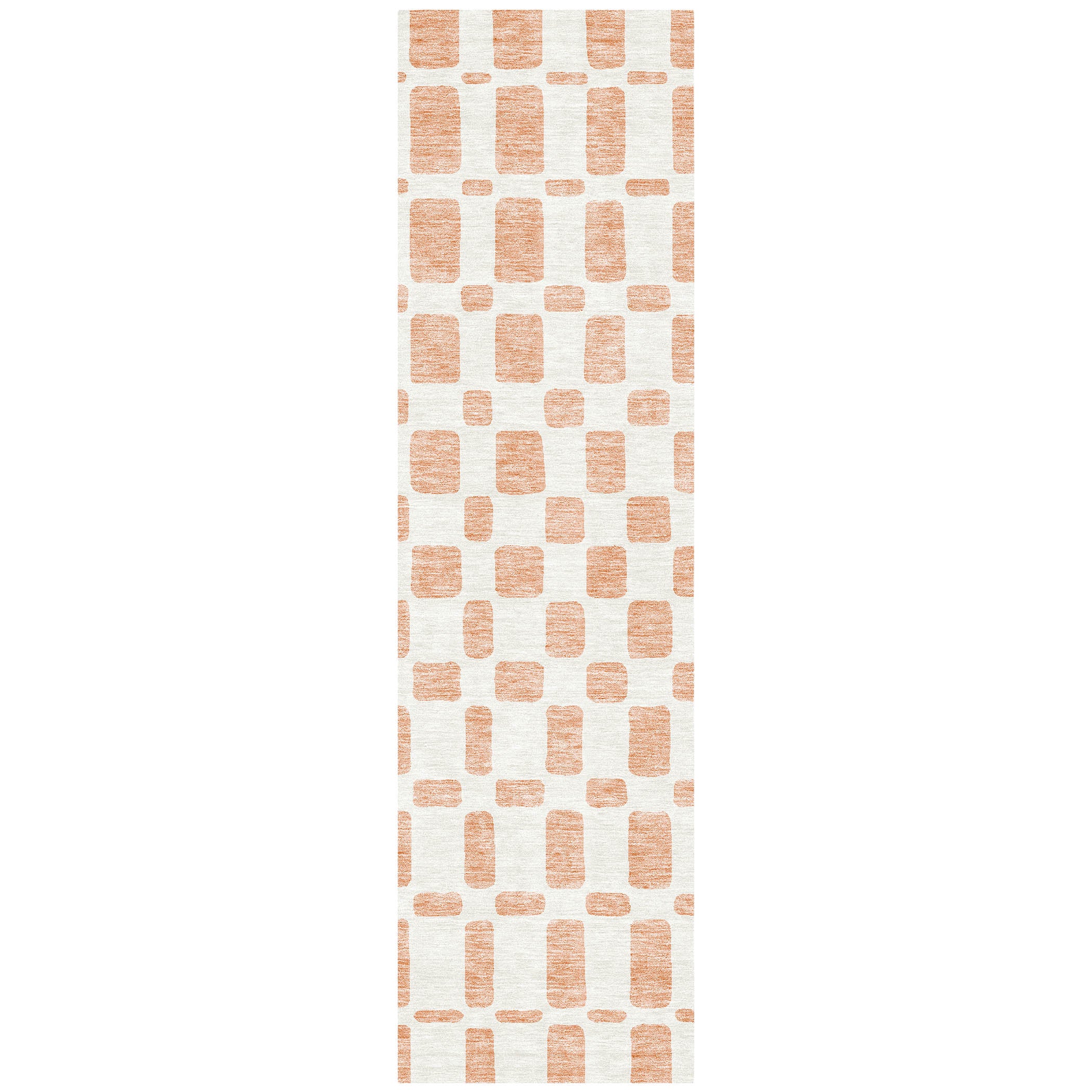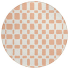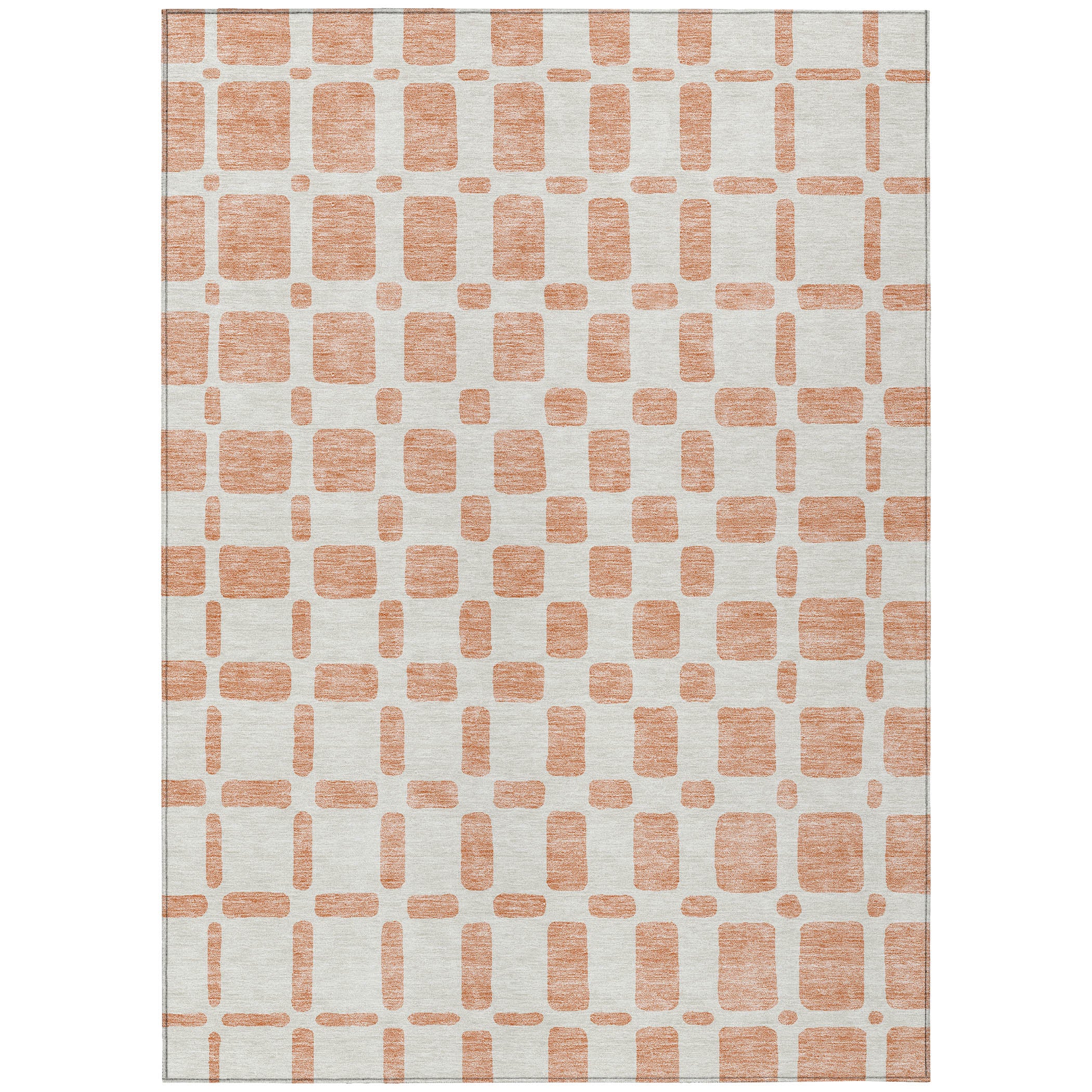 Chantille ACN871 Peach area rug, a chic addition to your home decor. This stylish rug boasts an eye-catching design with an array of differently shaped squares in a trendy criss-cross pattern, bringing a touch of modern sophistication to any room. The square motif creates a dynamic look that effortlessly transitions between different interior styles.