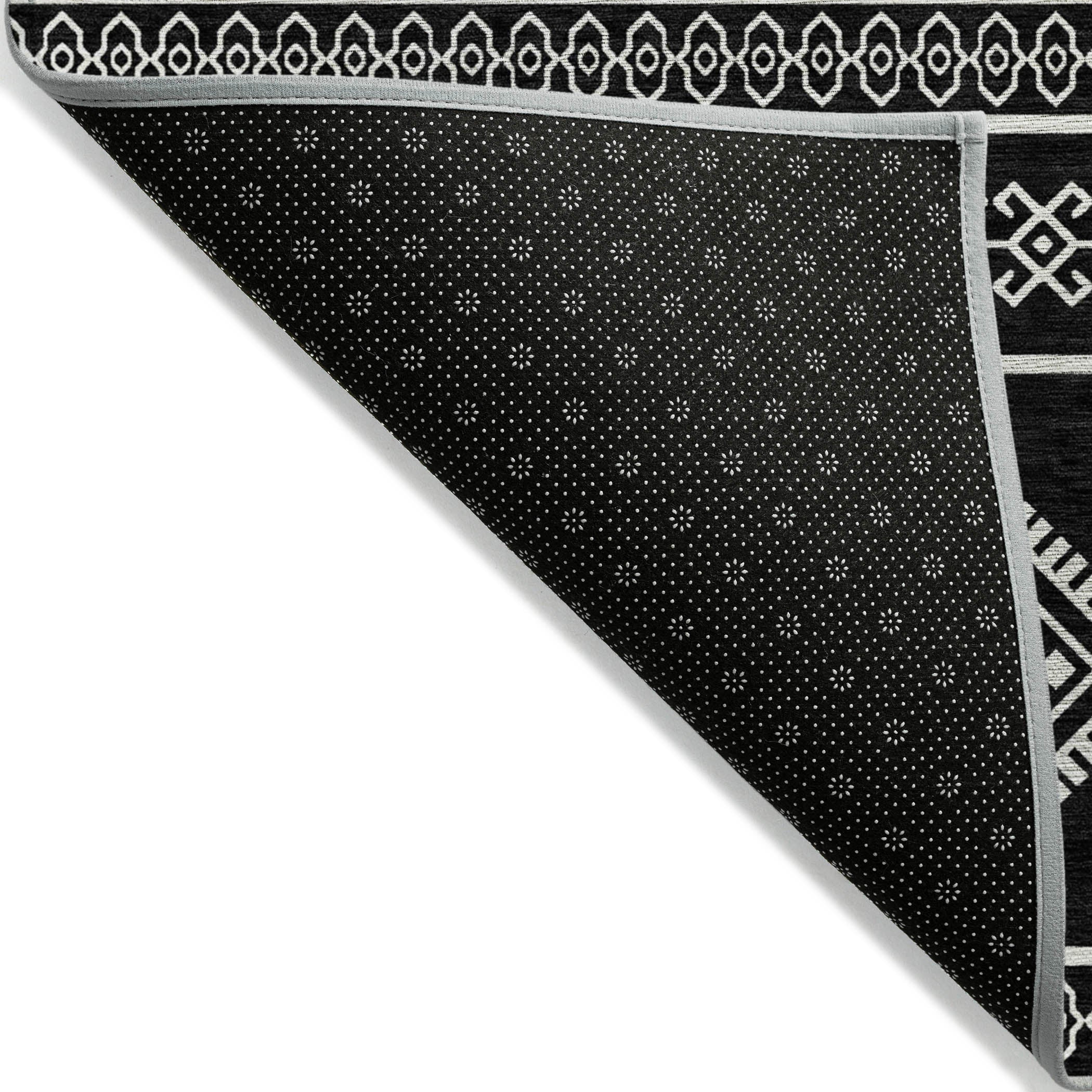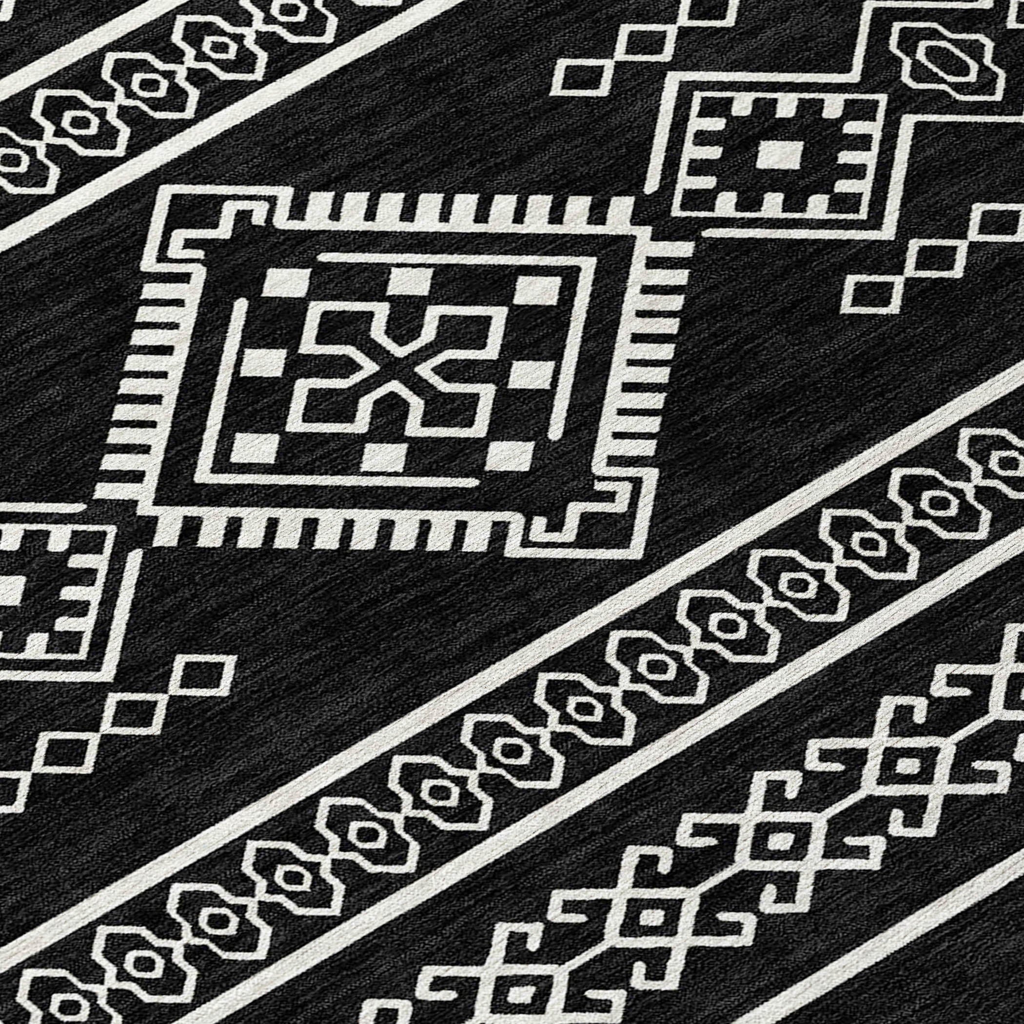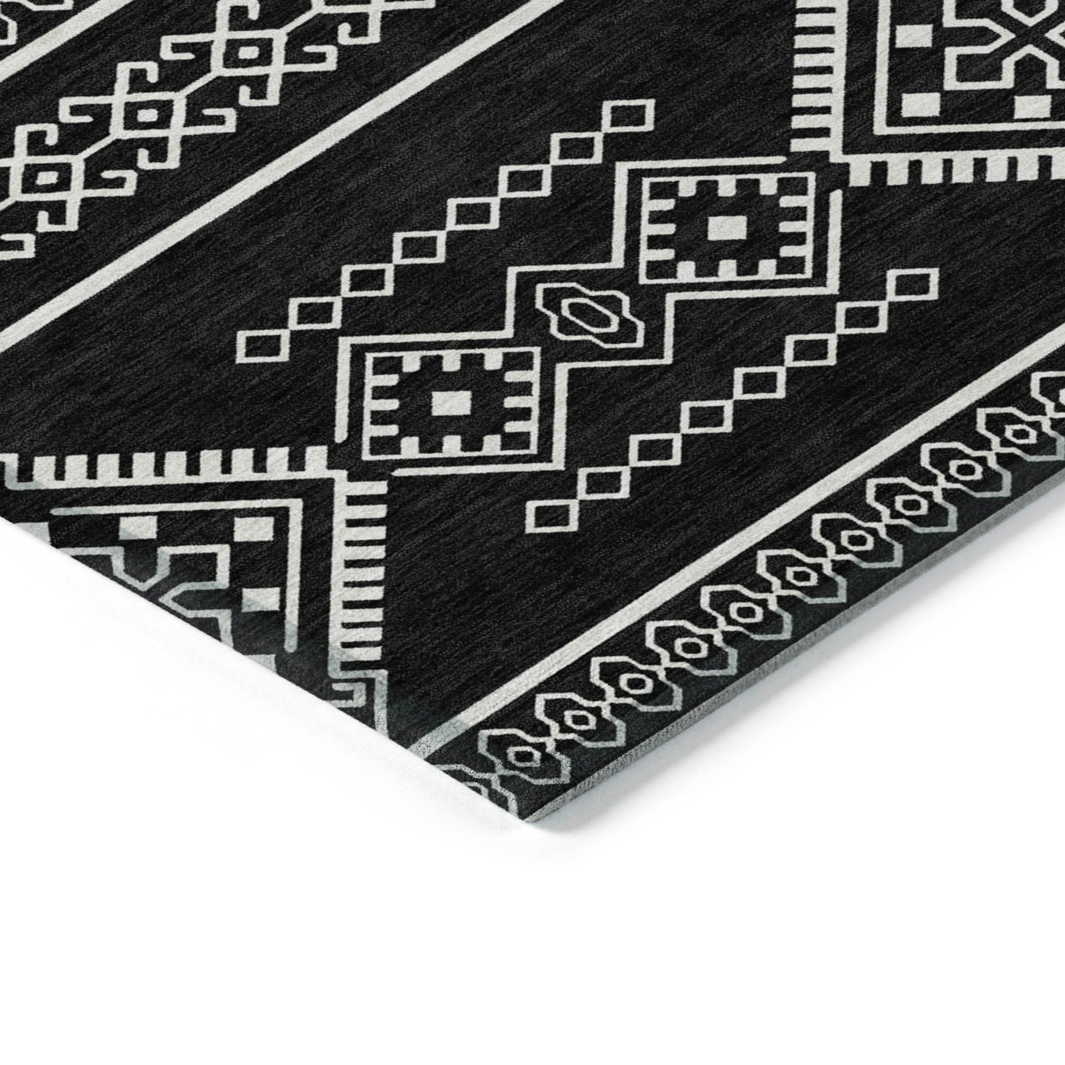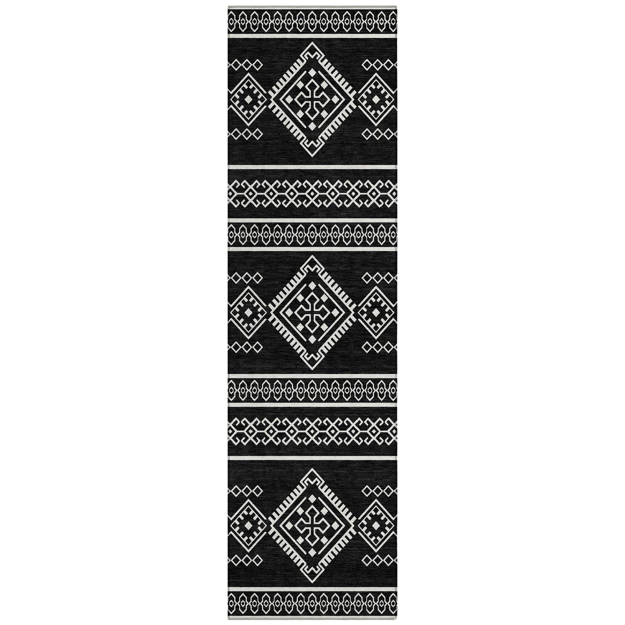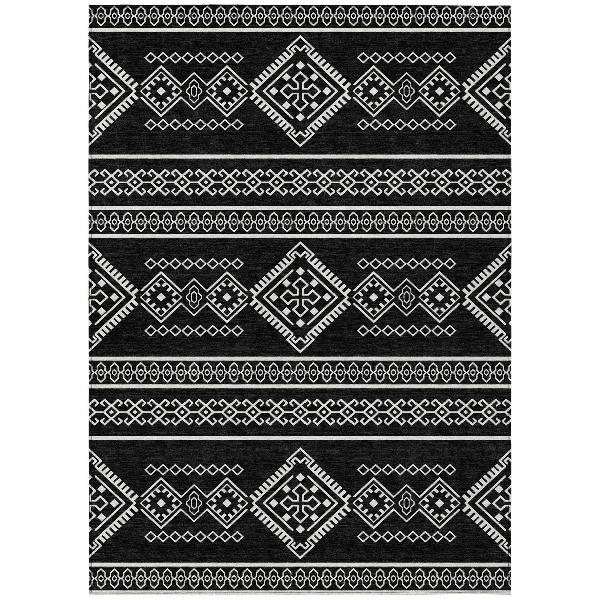 Chantille ACN901 Black area rug, designed to infuse your space with the essence of the southwest. Embrace rustic elegance with its tribal pattern that adds a touch of charm to any room. Perfect for practical living, this transitional rug is more than just visually appealing. It features UV stabilization for durability, an ultra-thin profile for seamless blending into your decor, and the convenience of being machine-washable.