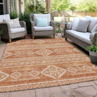 Introduce a touch of the southwest into your home with the Chantille ACN901 Copper area rug. This rug features a tribal design that exudes rustic elegance, adding a unique charm to any room. Crafted for both style and functionality, this transitional rug is designed with UV stabilization for durability and versatility. Its ultra-thin profile allows for seamless integration into any decor scheme. Enjoy the convenience of machine-washable maintenance, making it ideal for busy households with kids and pets. Embrace warmth and comfort with this welcoming rug that combines practicality with aesthetic appeal.
