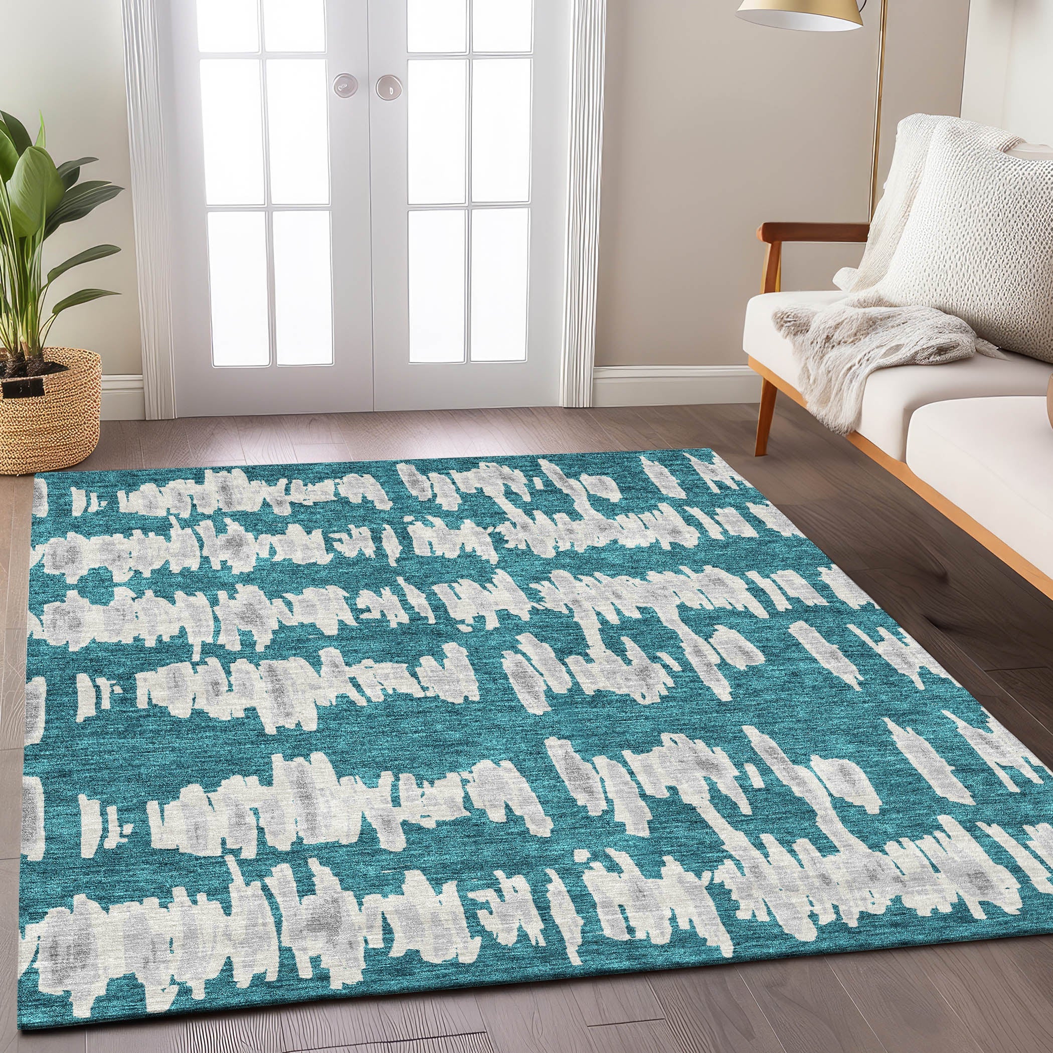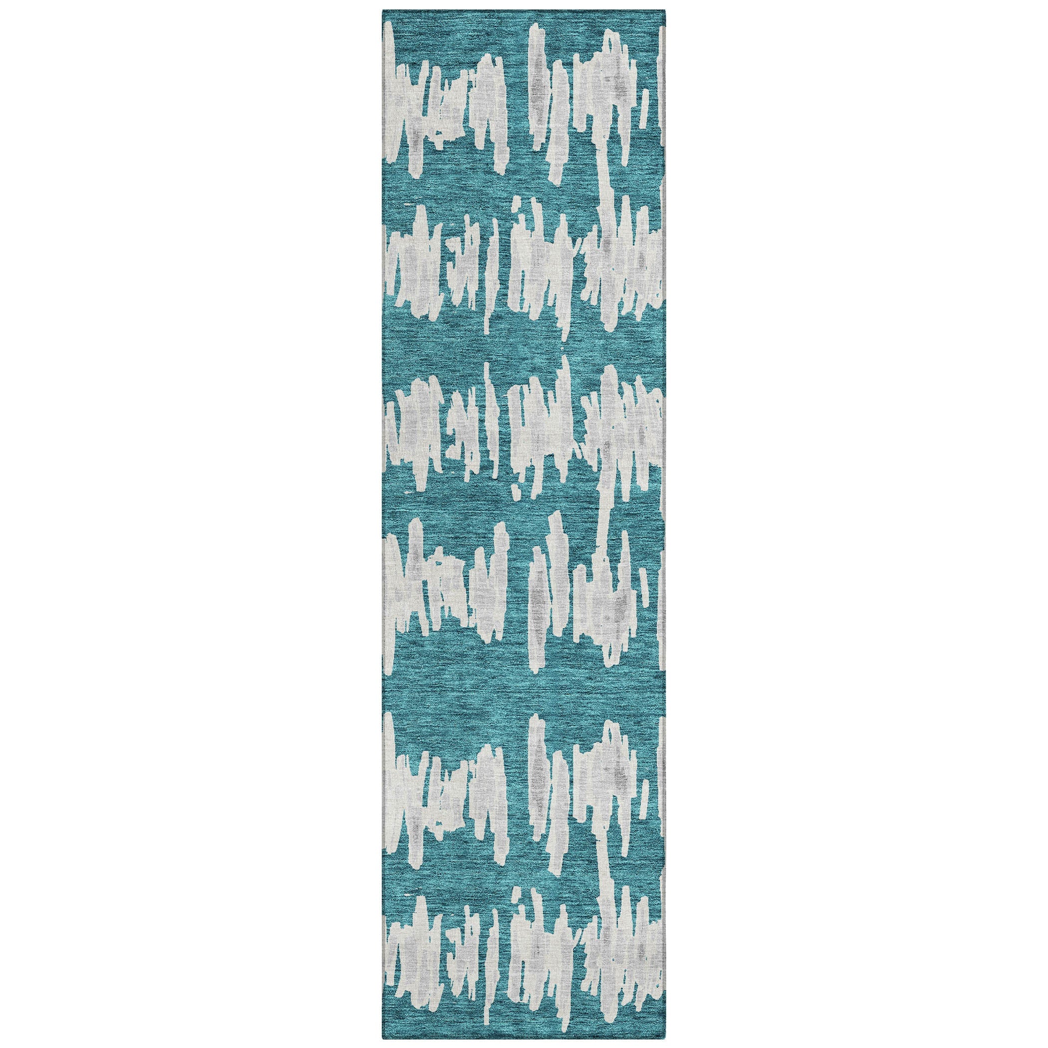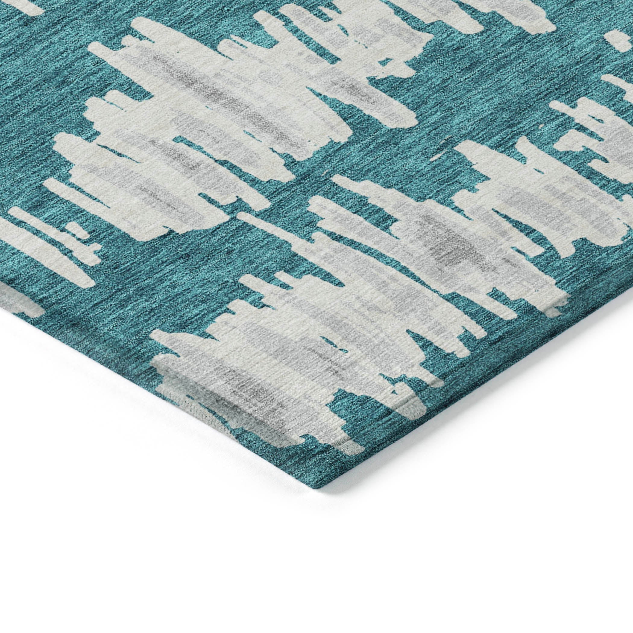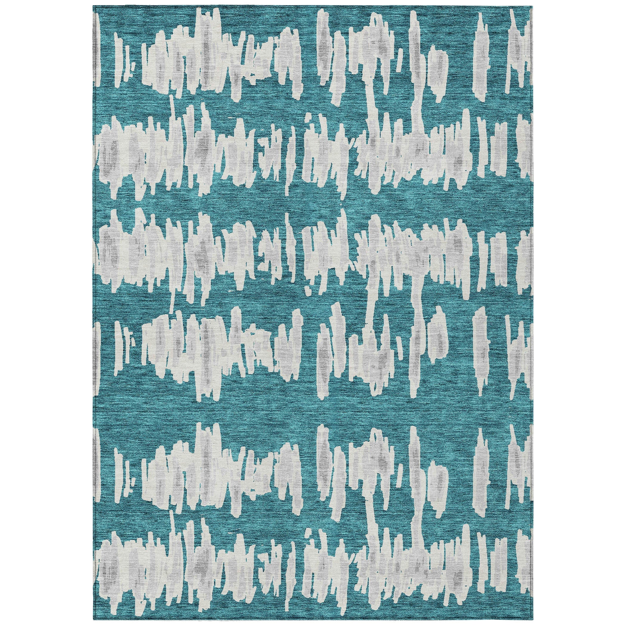 Elevate your space with the Chantille ACN905 Teal area rug, featuring a captivating blend of horizontal lines and random vertical motifs that create a floating effect. This transitional stripe design adds a modern touch to any room, making it stand out effortlessly. Whether used indoors or outdoors, this rug is UV stabilized for long-lasting durability.