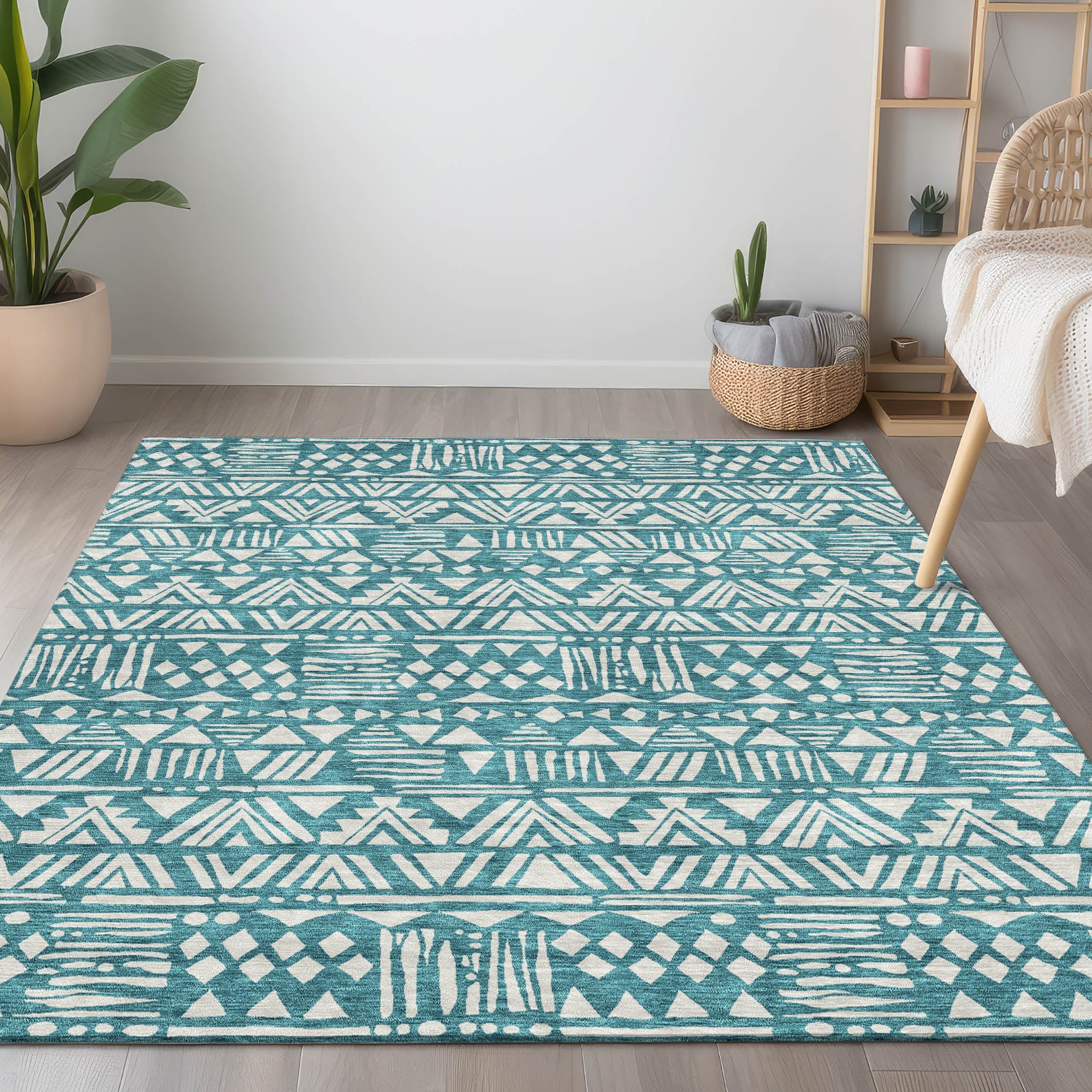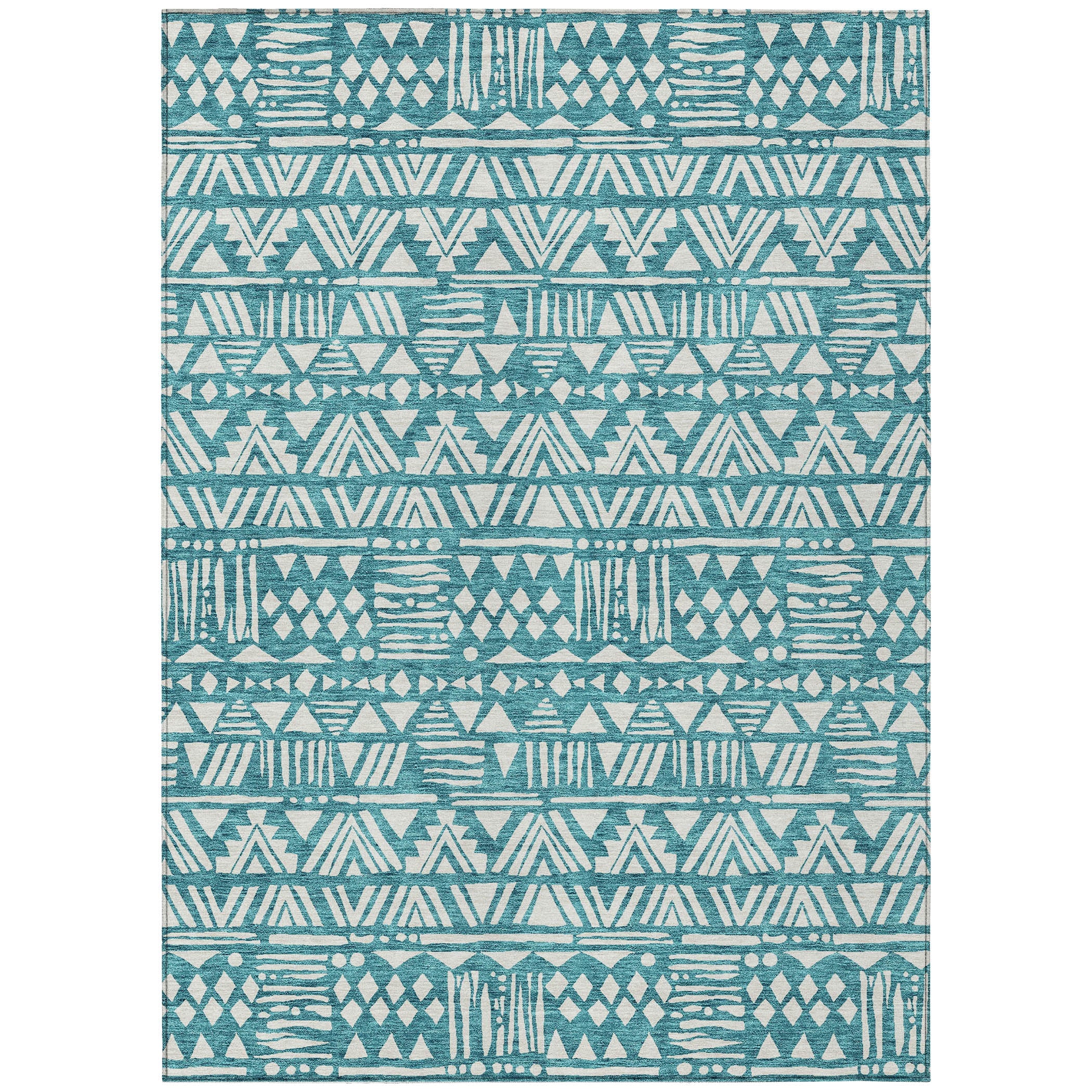 Introducing our Chantille ACN907 Teal area rug, inspired by the captivating charm of the southwest. The rug features small tribal motifs arranged in a stripe pattern, effortlessly merging transitional design with a touch of southwestern influence.