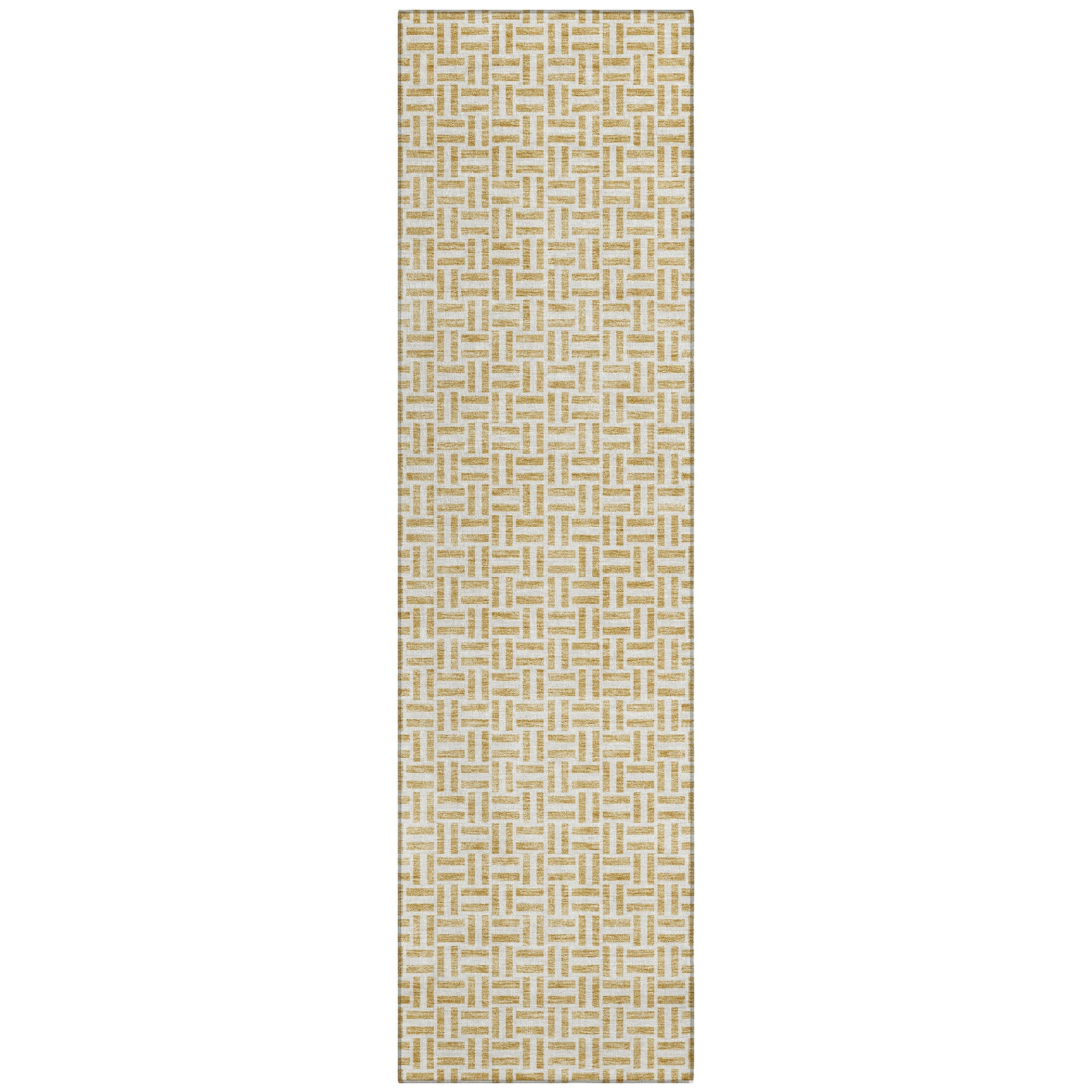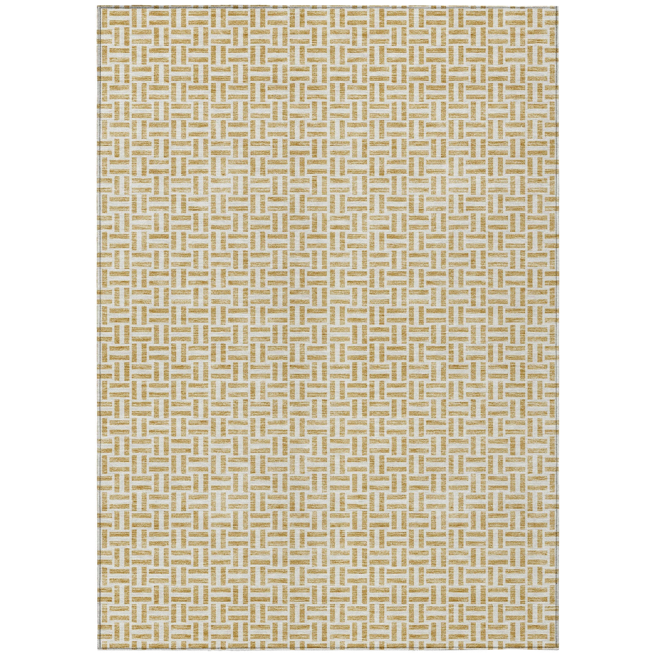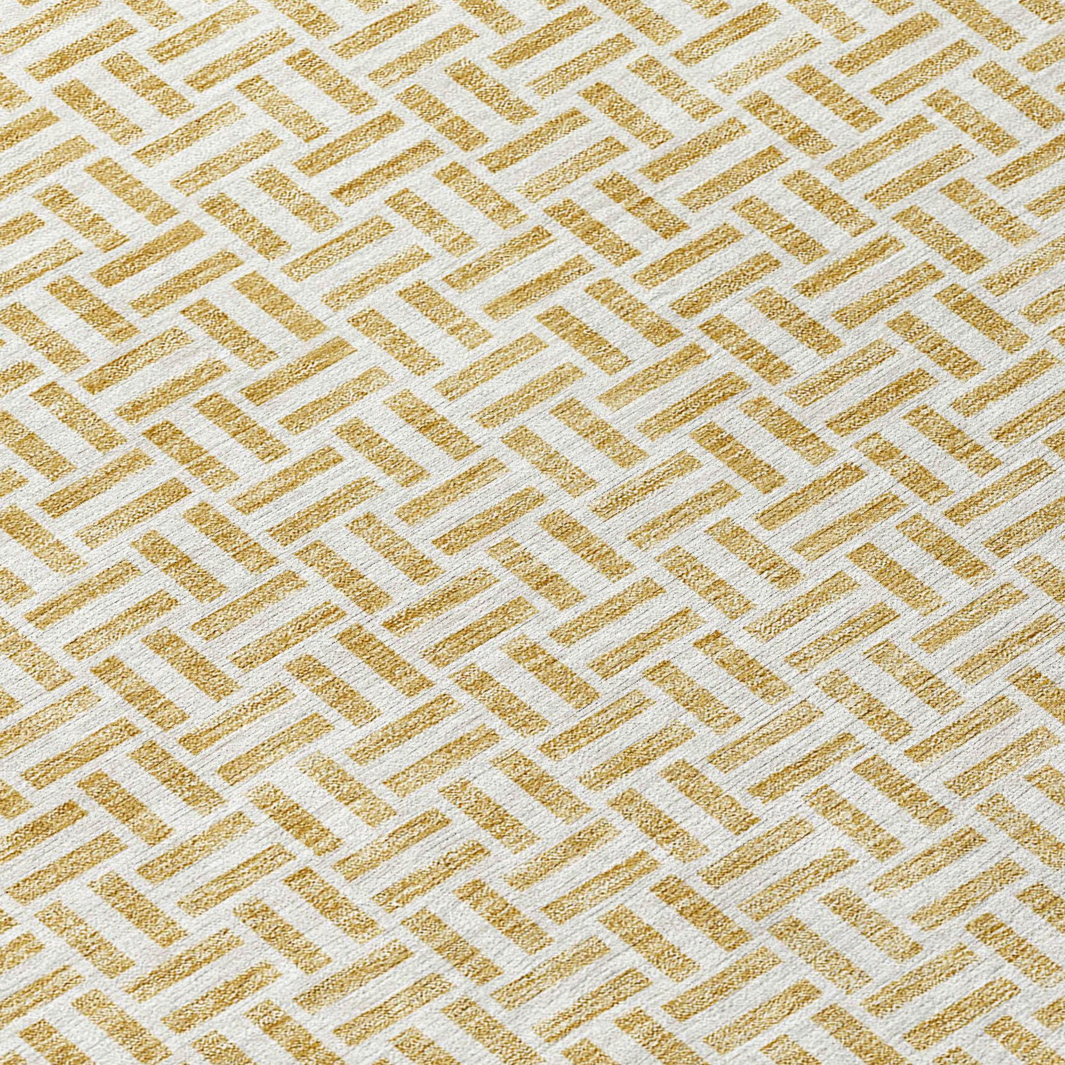 elegant Chantille ACN911 Gold area rug, designed to effortlessly enhance your living space with its sophisticated charm. The rug showcases a unique pattern of narrow parallel lines that seamlessly combine transitional and geometric styles for a subtle yet stylish touch. Crafted with UV stabilization, this rug is suitable for both indoor and outdoor use, promising durability and longevity. Its ultra-thin construction makes it versatile for any room in your home, while the machine-washable feature ensures easy maintenance - perfect for households with children and pets.