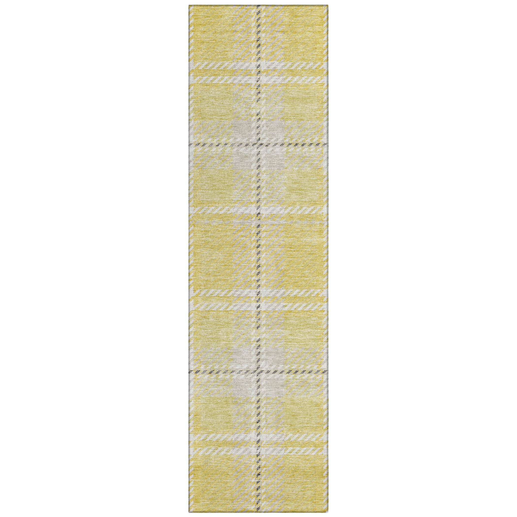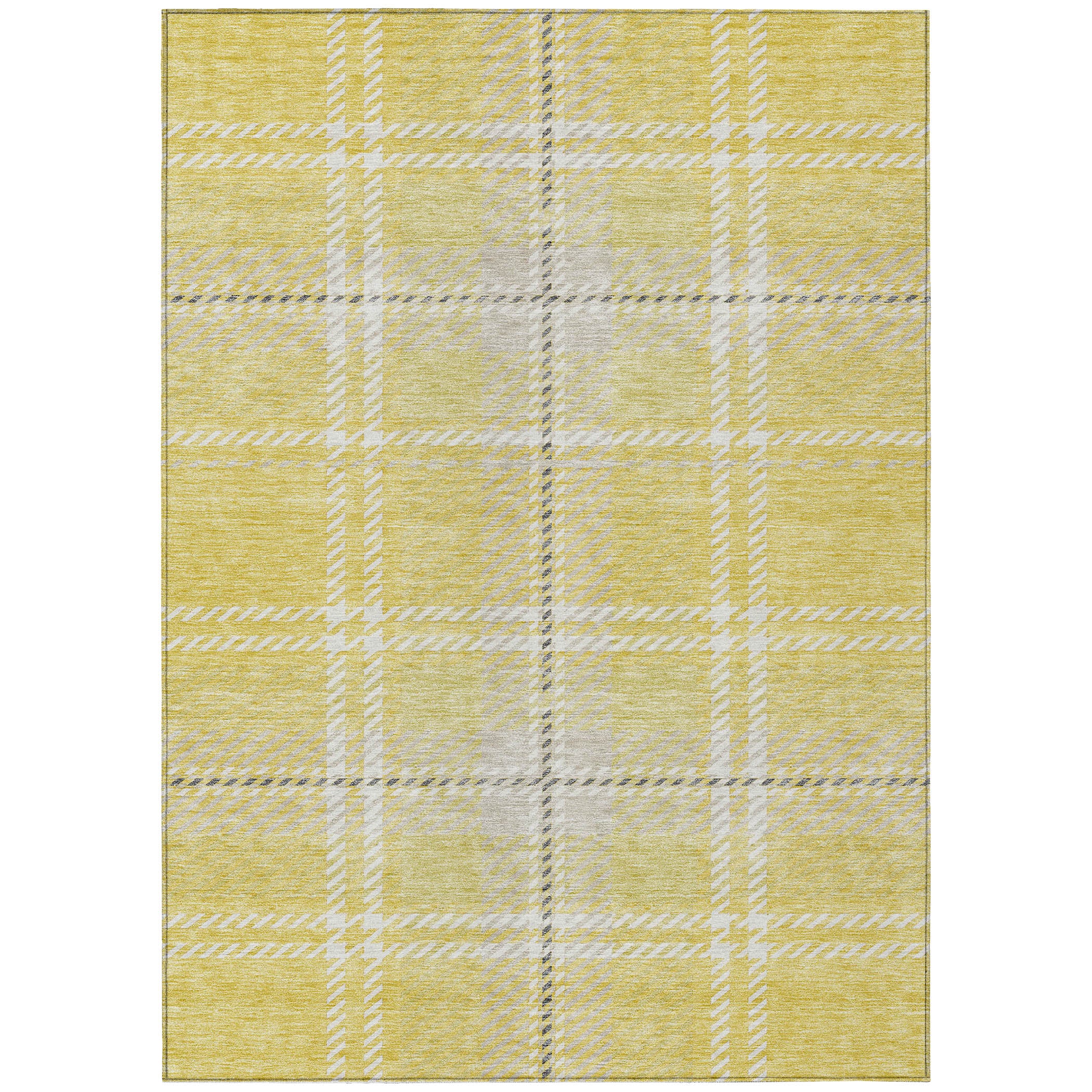 Elevate your space with the Chantille ACN935 Yellow area rug. Its timeless plaid pattern, intricately woven with horizontal and vertical lines, adds a touch of classic elegance that complements transitional decor styles perfectly. This versatile rug is UV stabilized, allowing you to place it in any area of your home with confidence. Its ultra-thin profile makes it a practical option for various rooms, effortlessly blending in with your existing furniture and decor.