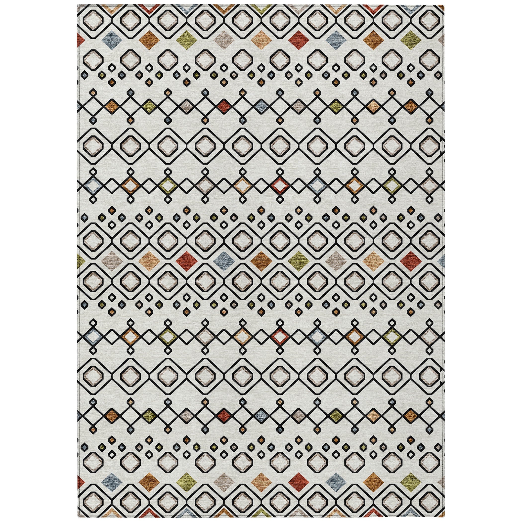 Chantille ACN938 Ivory area rug, a stylish addition to your home that effortlessly combines Southwest charm with modern and classic decor. The horizontal tribal patterns infuse your space with a touch of cultural elegance. Crafted for longevity, this rug features UV stabilization to shield it from indoor or outdoor sun exposure. Its slim design makes it versatile for various placement options in any room. Plus, the convenience of being machine-washable means it's perfect for high-traffic homes, including those with pets. Elevate your living space with this durable and easy-to-maintain rug today!