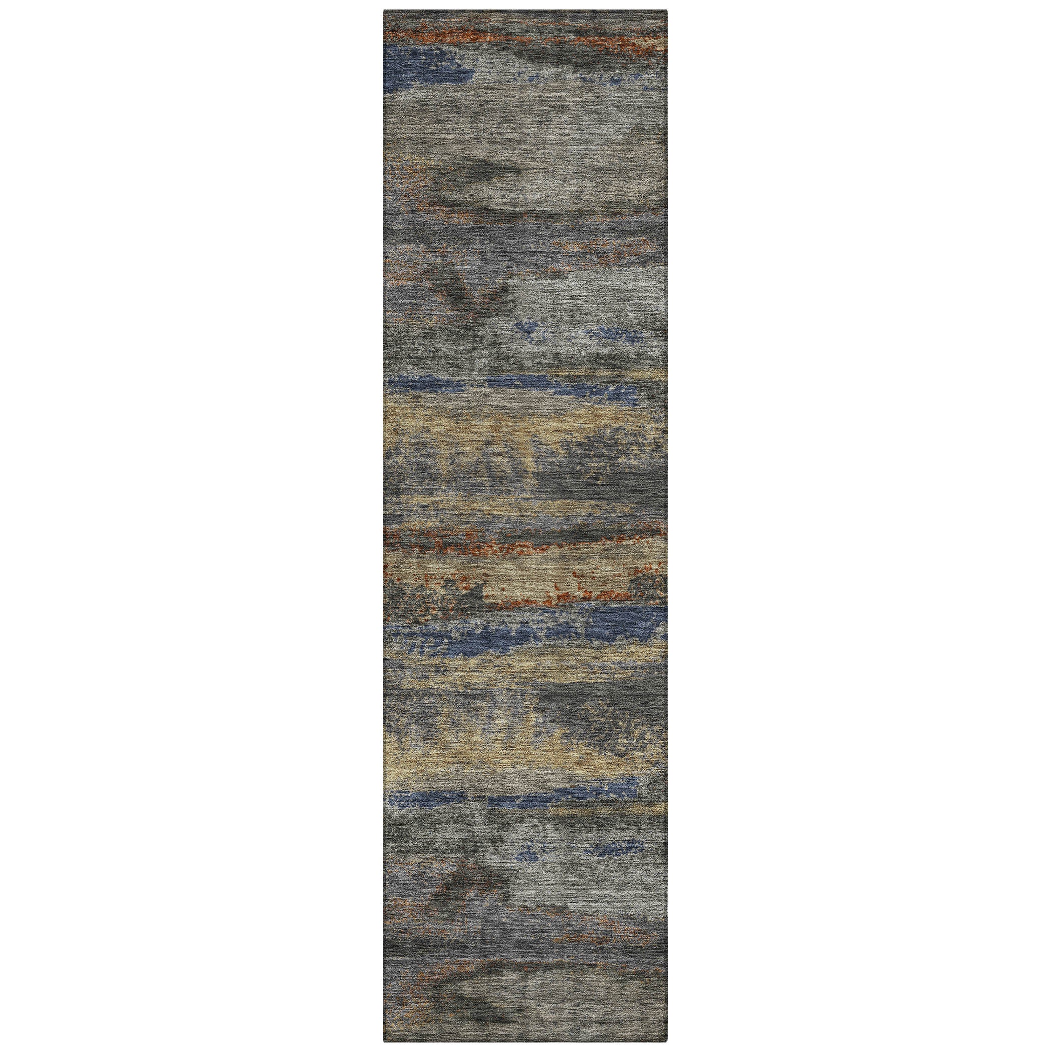 Chantille ACN942 Graphite area rug, a stunning addition to your home decor. This rug boasts contrasting textures that create a captivating horizontal visual effect, perfect for elevating any transitional space. The abstract design elements come together harmoniously to provide a versatile floor covering that complements various interior styles.