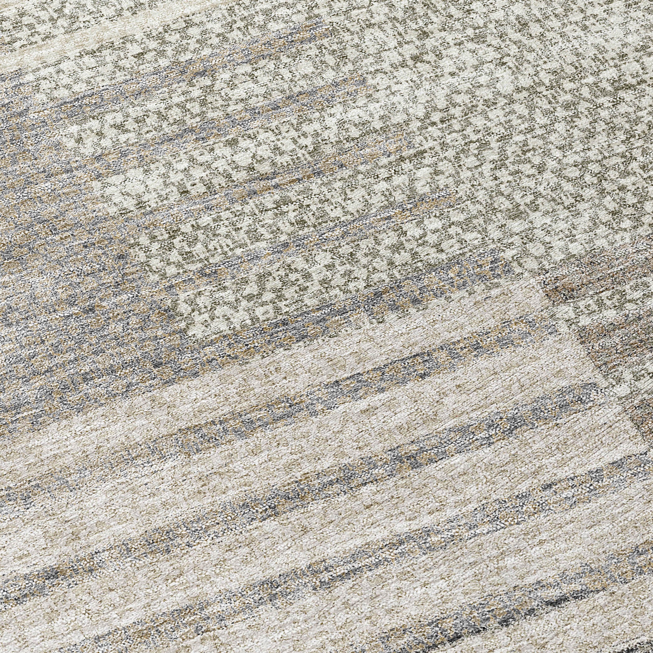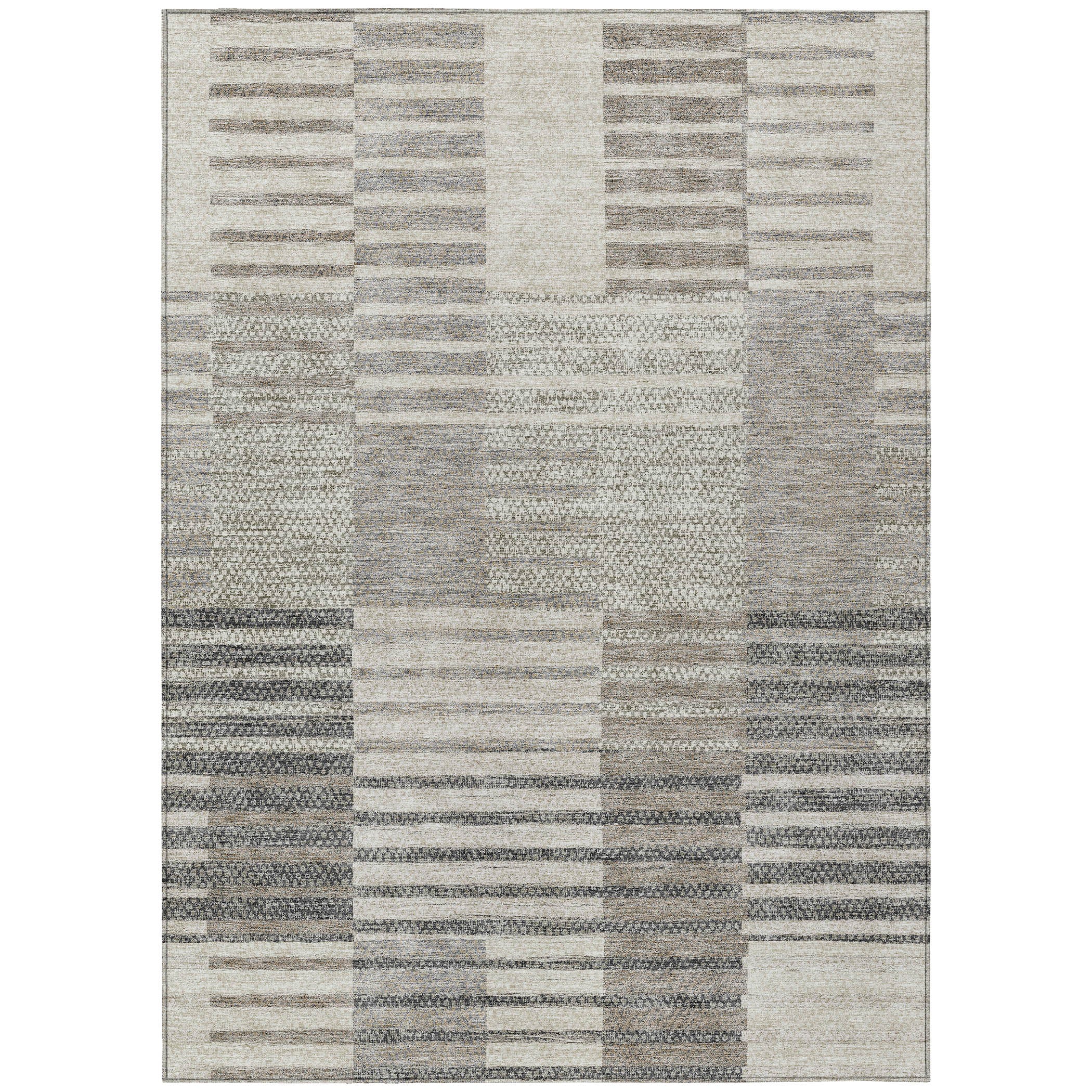Chantille ACN954 Beige area rug, a perfect blend of sophistication and style. This rug features horizontal stripes paired with a small pattern overlay, creating a transitional aesthetic that complements any decor effortlessly.