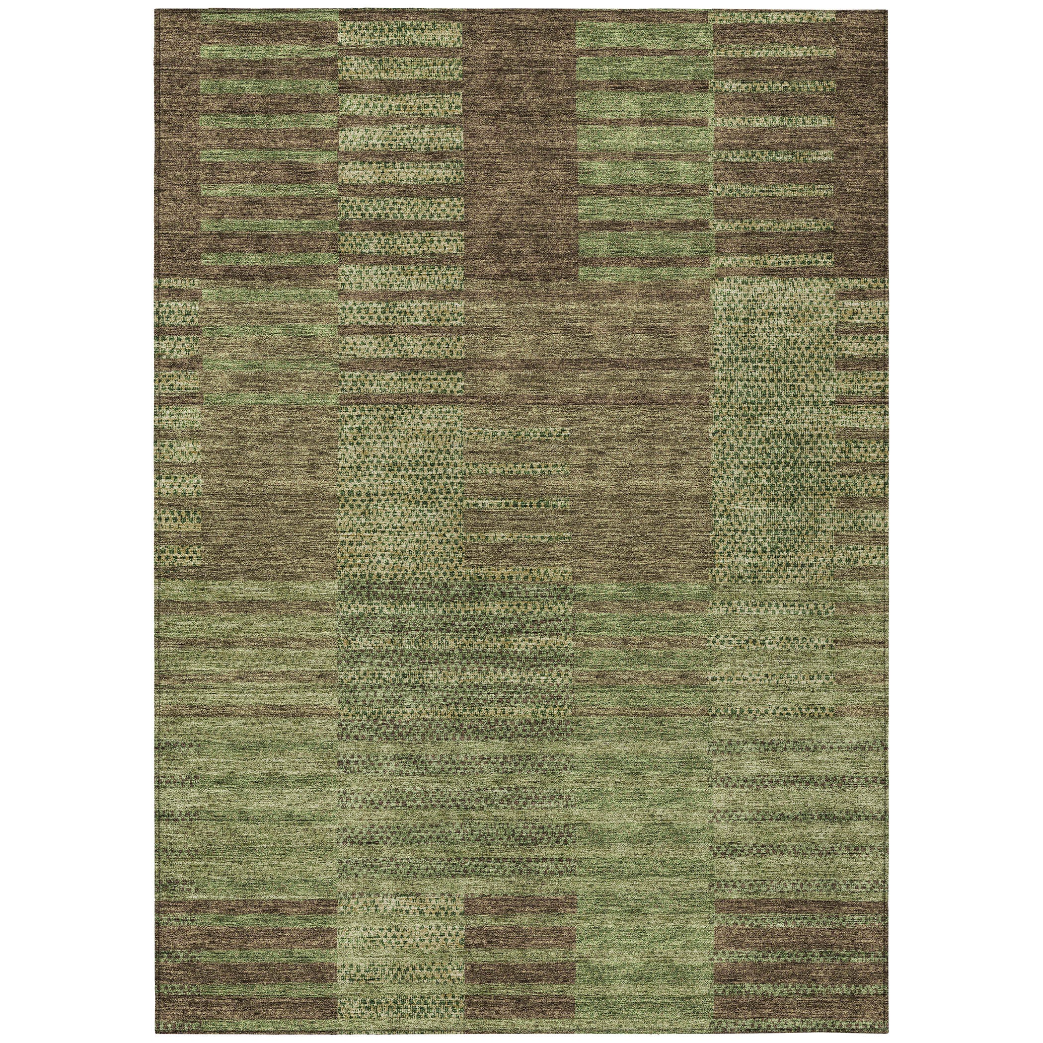 Chantille ACN954 Mocha area rug, a sophisticated addition to your home decor. This stylish rug features a unique design with horizontal stripes and a small pattern overlay that effortlessly complements any interior. Its transitional aesthetic makes it versatile for various decor styles.