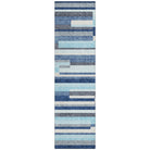 Chantille ACN956 Blue area rug, a stylish addition to any transitional space. Its broken horizontal bars add a touch of rhythm, while the classic stripe design brings a timeless appeal. Crafted for both durability and aesthetics, this rug is UV stabilized to maintain its vibrant color whether placed indoors or outdoors.