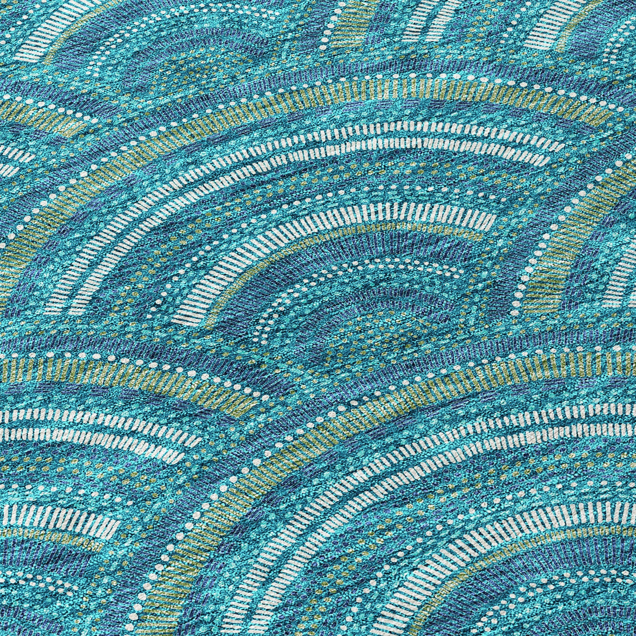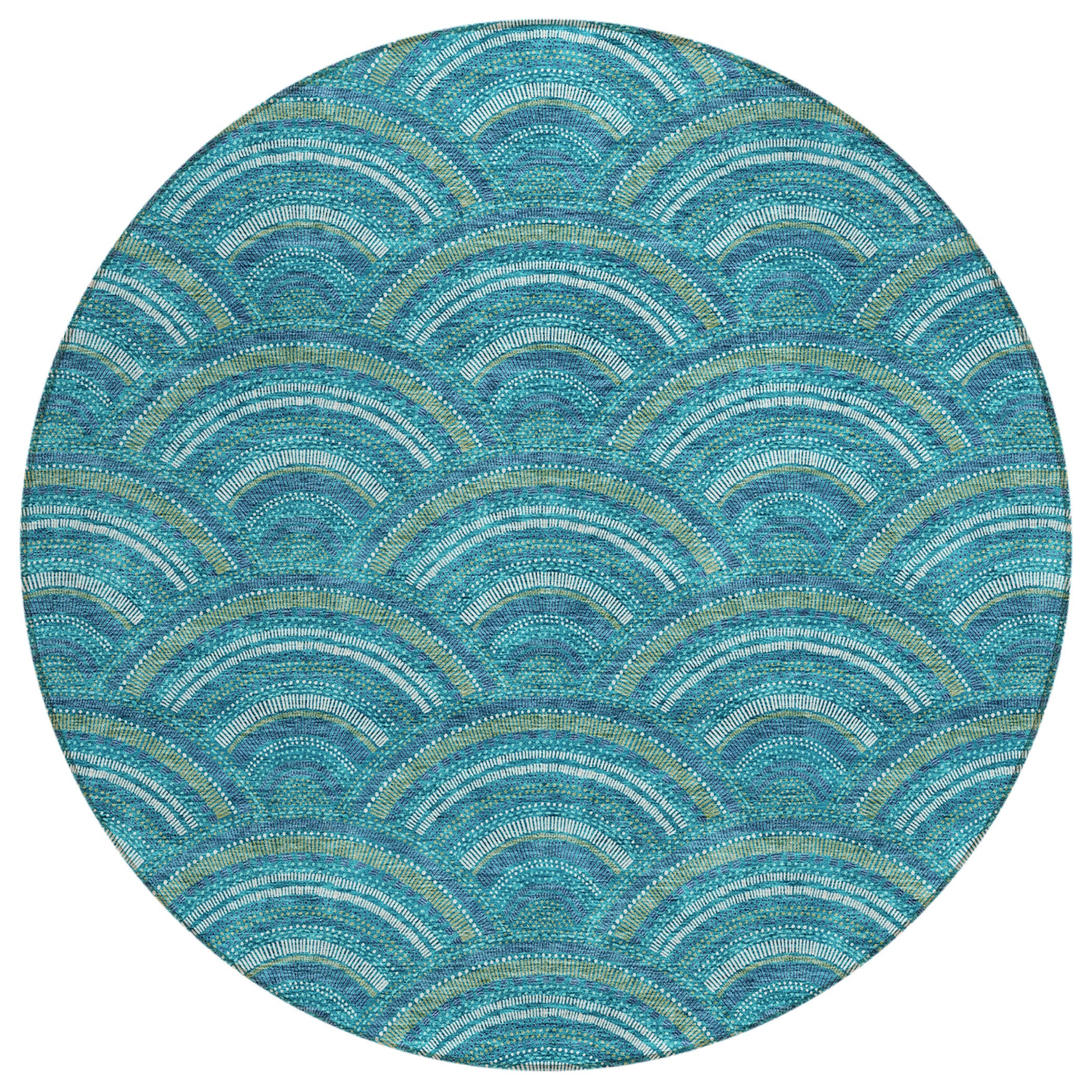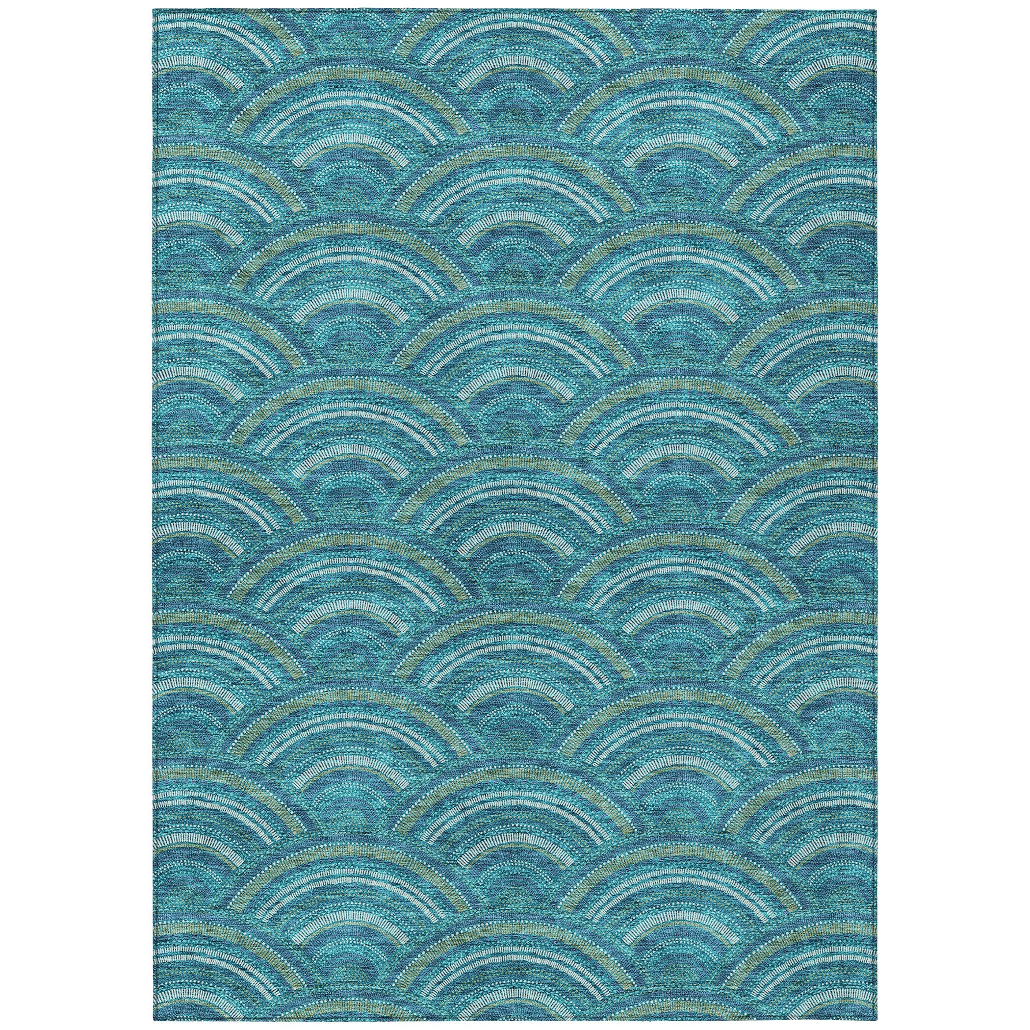 Chantille ACN984 Teal area rug, a stylish fusion of modern trends and transitional charm. Its smart semi-circle pattern adds a contemporary touch to any space while maintaining a timeless appeal. Crafted with UV stabilization, this rug is ready to withstand both sun and shade, making it ideal for indoor and outdoor use.