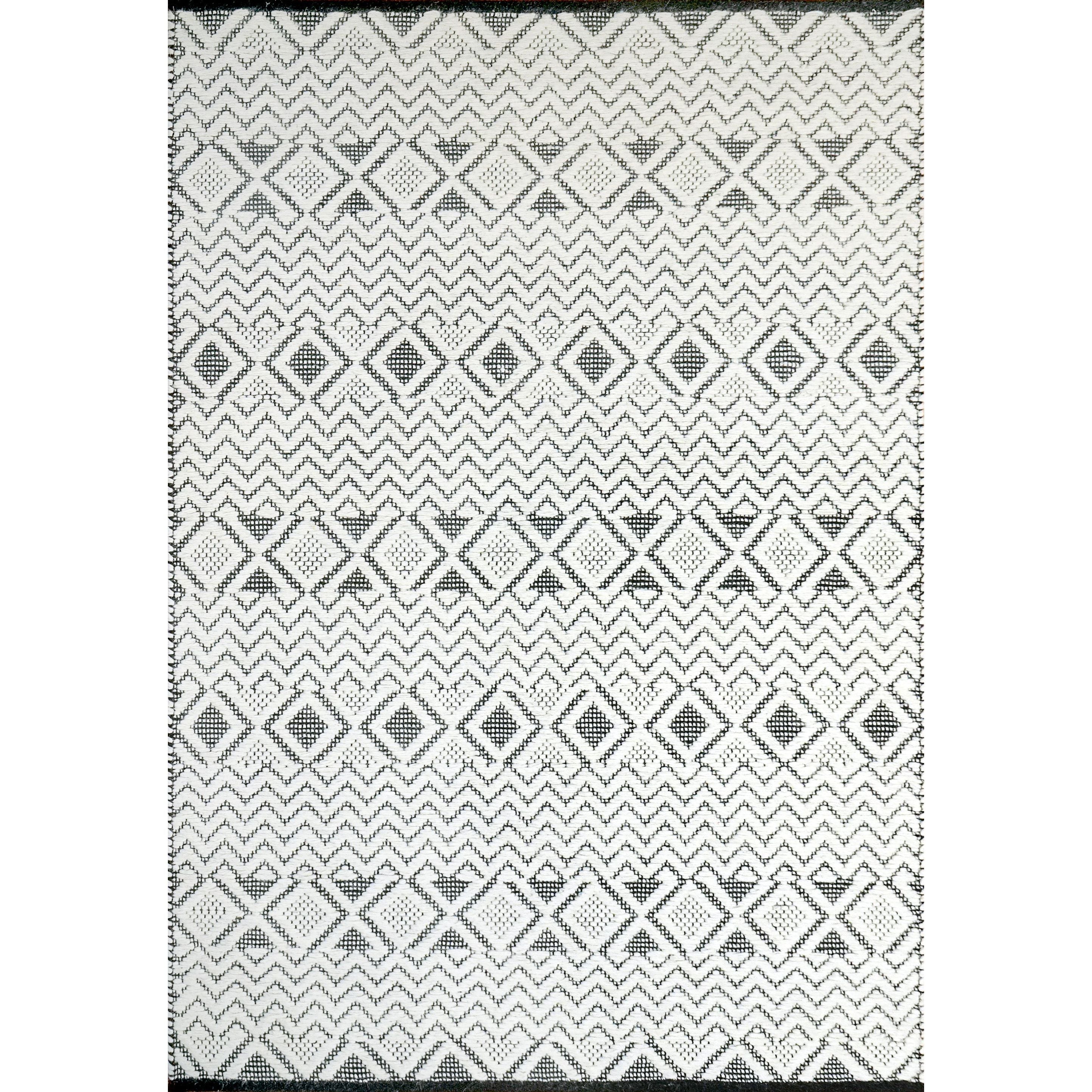 Cleveland 7472 Ivory Black rug, a charming blend of wool and viscose crafted by skilled artisans in India. This stylish piece features simple yet sophisticated geometric designs that add a touch of elegance to any room. The handmade quality of these rugs is highlighted by their unique pebbled high-low texture, reminiscent of a cozy knitted sweater.