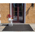 Experience a touch of sophistication with the Como Com 5 Charcoal indoor/outdoor area rug collection. Perfect for both interior and exterior settings, these rugs add a tropical flair to any space. Featuring geometric, thatch, and striated patterns inspired by island influences, each rug serves as a stylish statement piece.