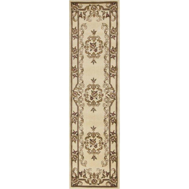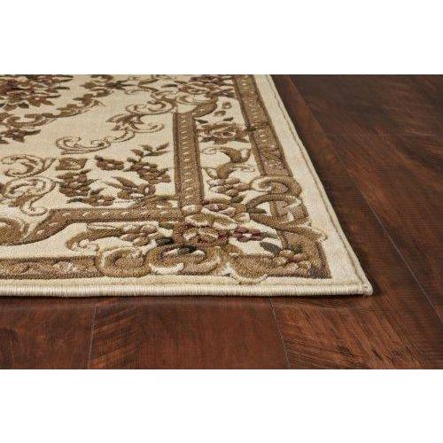 exquisite Corinthian 5311 Ivory Aubusson rug, a perfect blend of traditional elegance and modern style. Crafted in China from high-quality 100% heat-set polypropylene, this machine-woven rug is meticulously hand-carved to showcase intricate details. The design showcases classic Aubusson floral patterns that are typically seen in hand-knotted rugs, adding a touch of timeless beauty to any space.