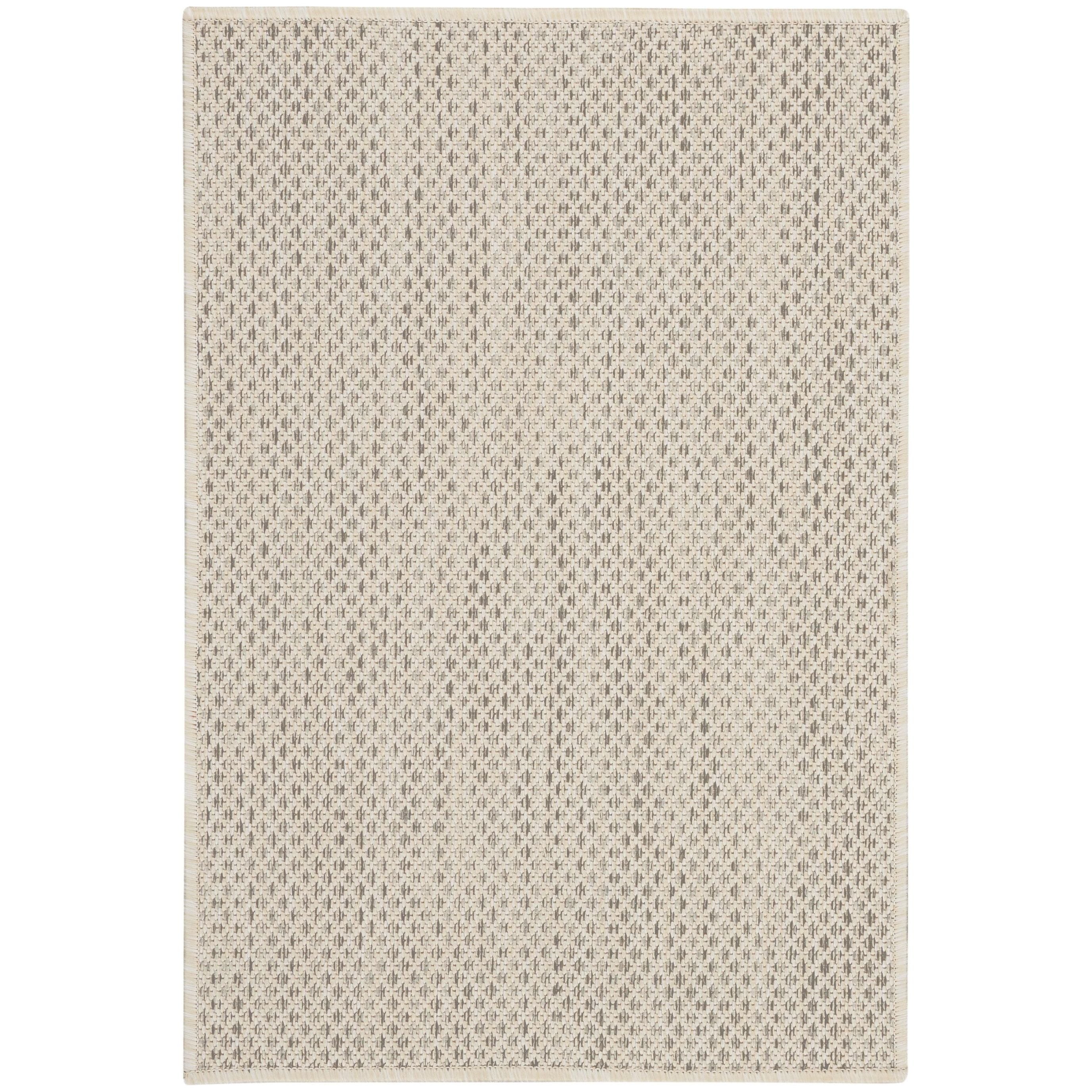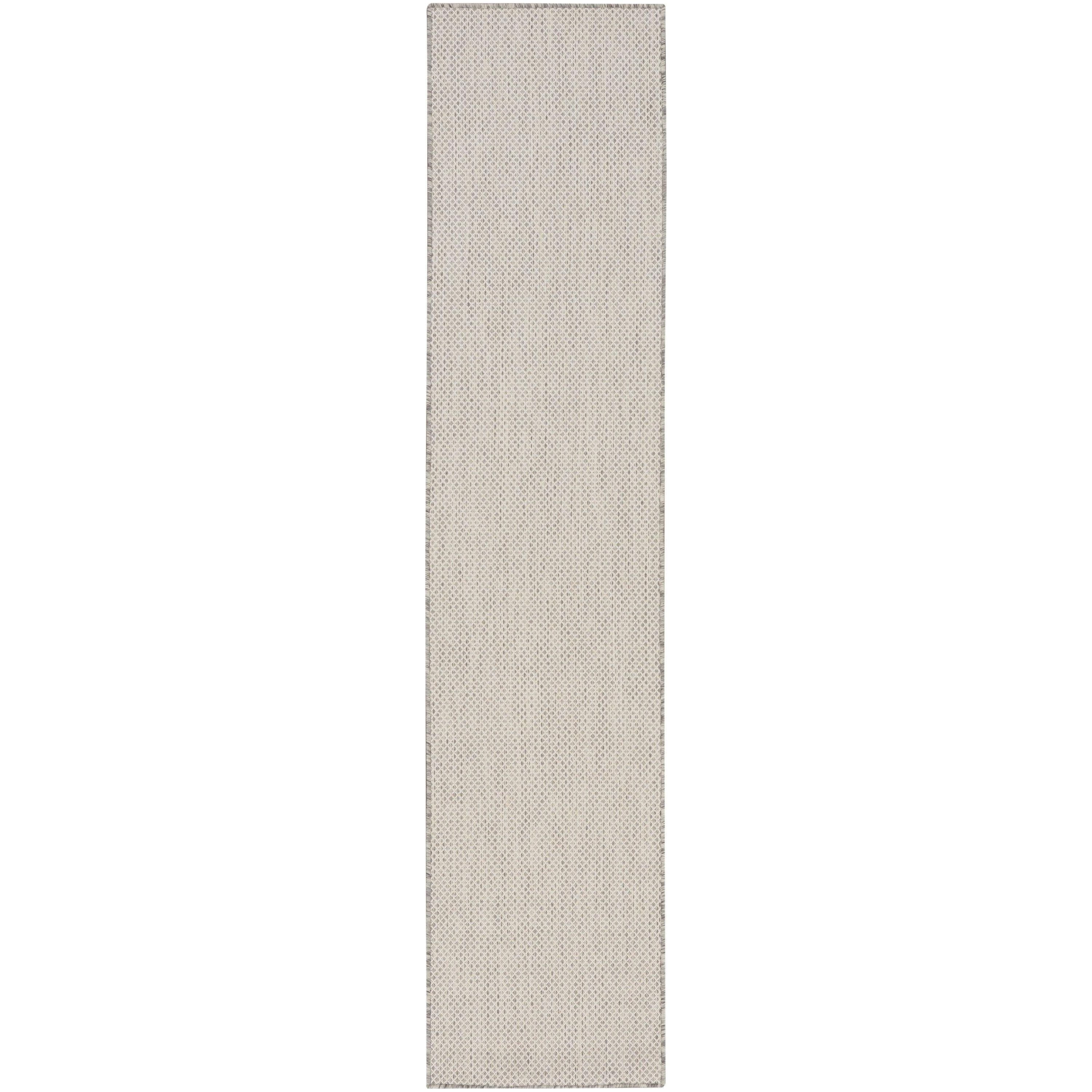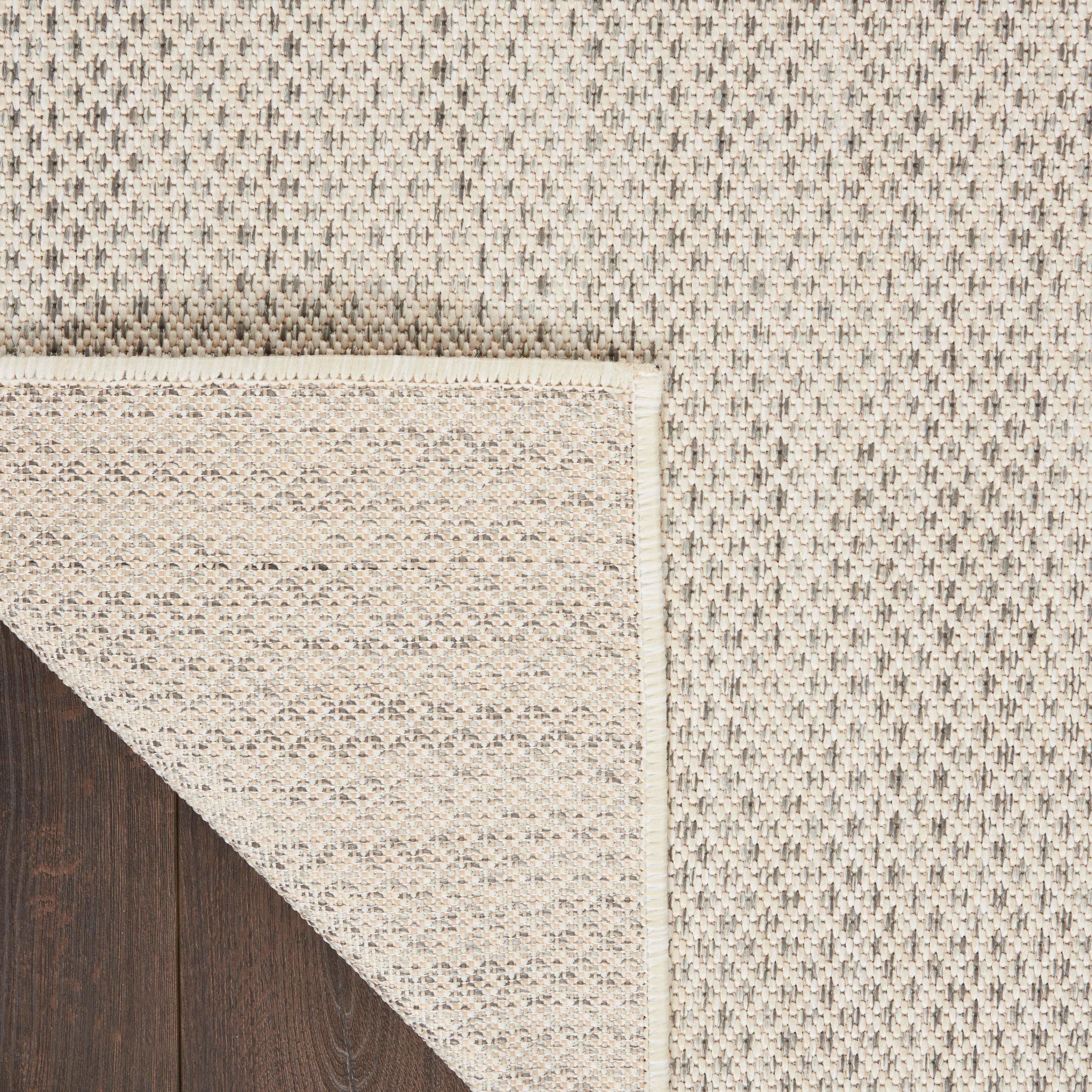 Courtyard COU01 Ivory Silver outdoor rug, a stylish addition to any modern space. This rug features a captivating geometric design in ivory and silver grey, adding a touch of contemporary flair to your outdoor area. Crafted with a subtly textured surface, it seamlessly blends into modern settings with ease.