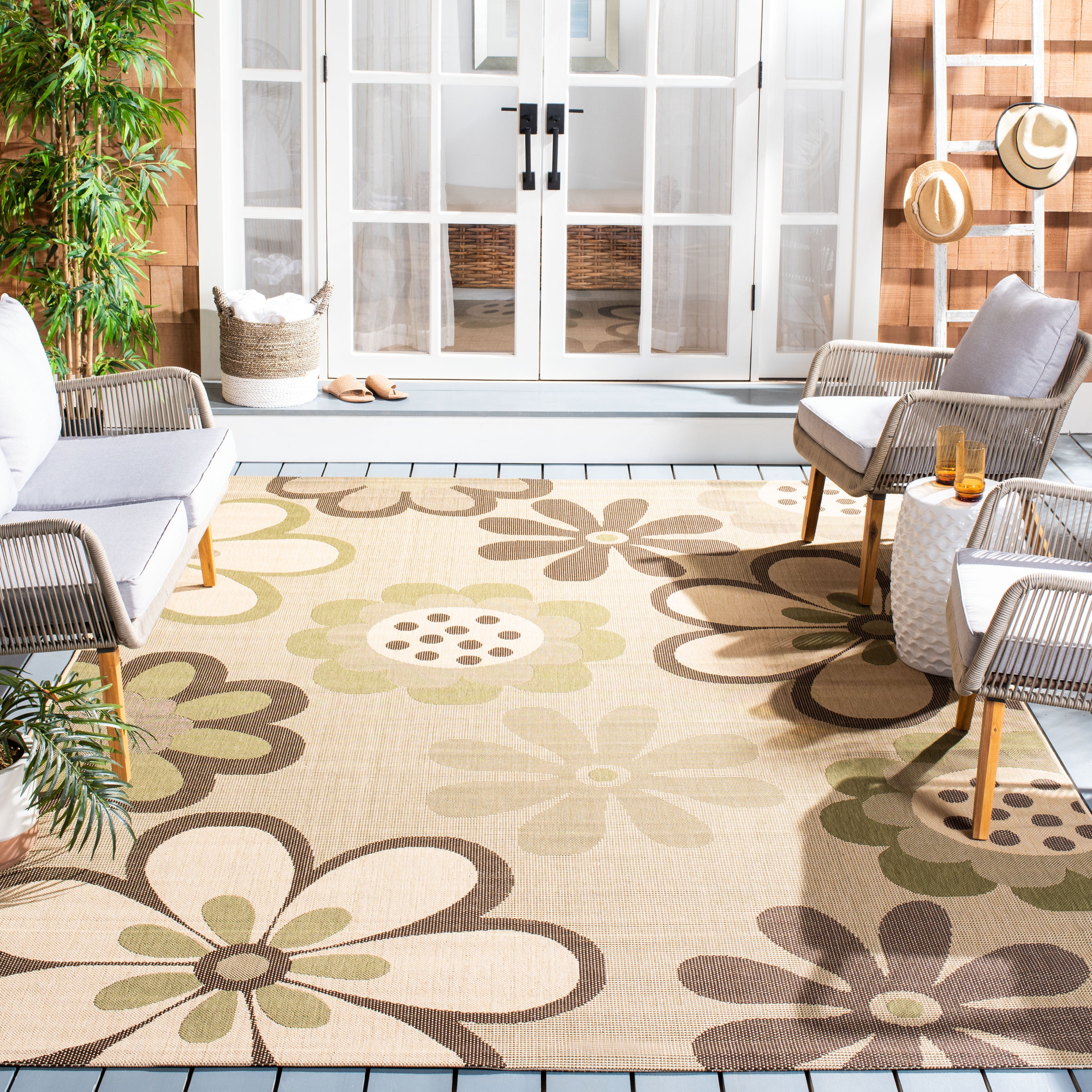 Courtyard CY4035A, a versatile rug from Safavieh's Courtyard collection designed for modern indoor and outdoor living. Elevate your outdoor decor with a range of stylish designs in trendy colors, blending classic and contemporary patterns seamlessly. Crafted in Turkey using enhanced polypropylene, these rugs are built to last and withstand the elements. The Courtyard collection offers coordinated pieces that effortlessly complement each other, whether used indoors or outdoors. Safavieh's innovative sisal weave technology allows for intricate designs that are not only visually appealing but also easy to maintain - simply clean with a garden hose for hassle-free upkeep. Add a touch of style and durability to your space with the Courtyard CY4035A rug today!