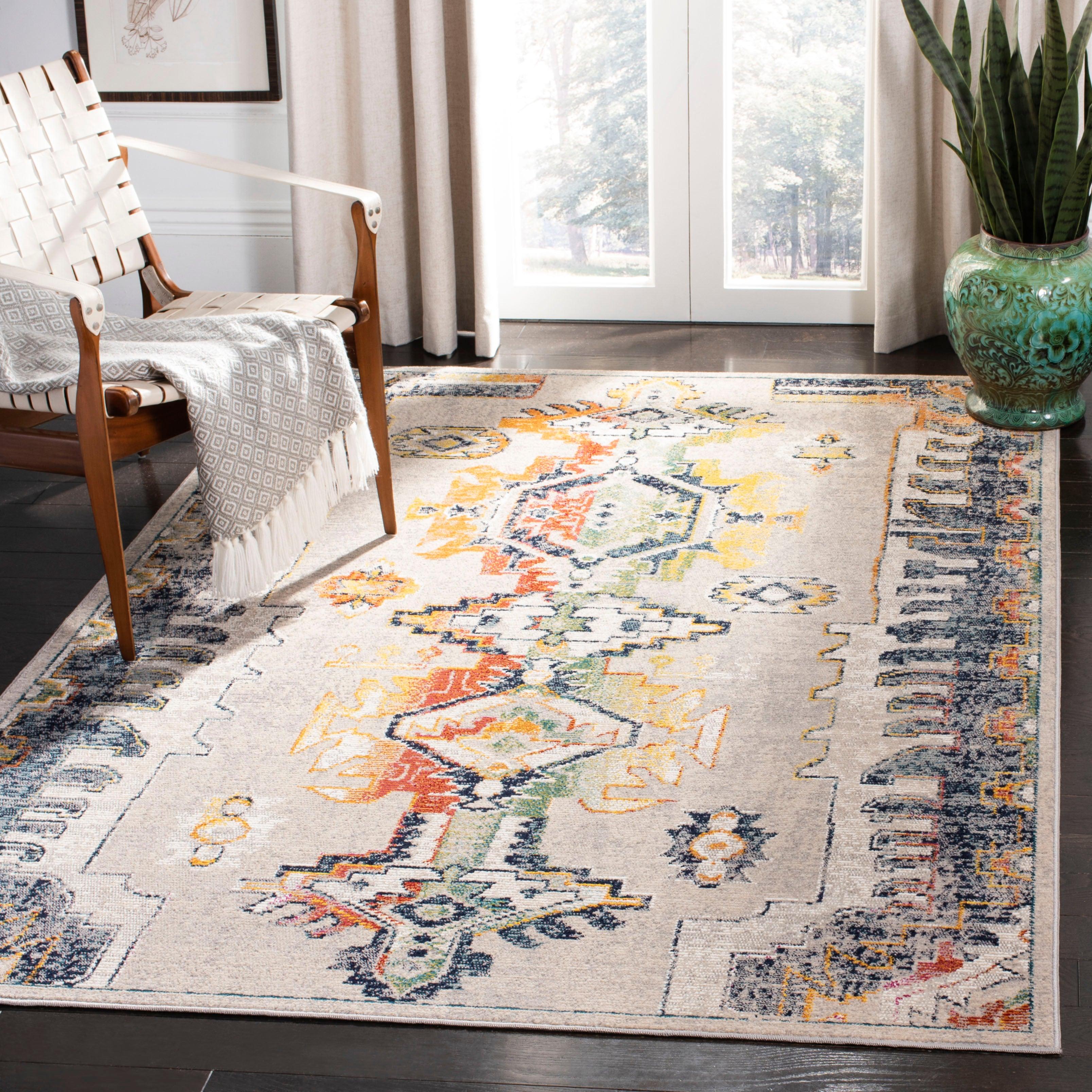 Introduce a touch of creativity into your space with the Crystal CRS517F Light Grey Orange rug from SAFAVIEH's Crystal Collection. This collection showcases a blend of timeless Oriental motifs and modern abstract designs, catering to the demand for boho-chic rugs with a contemporary twist. Crafted from durable polypropylene fibers, these rugs are not only visually stunning but also easy to maintain, making them perfect for high-traffic areas in your home. With a thickness of approximately 0.25 inches, this rug strikes the perfect balance between comfort and style.