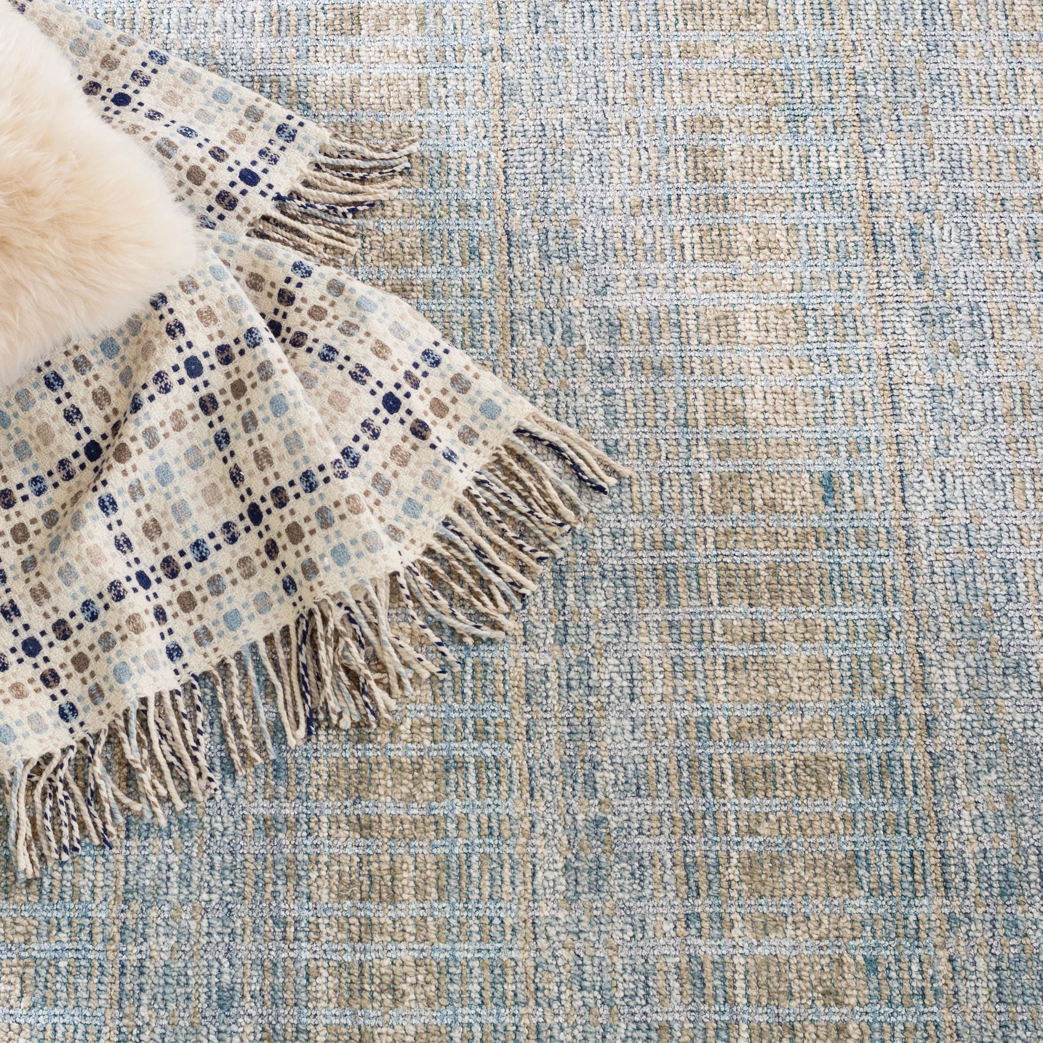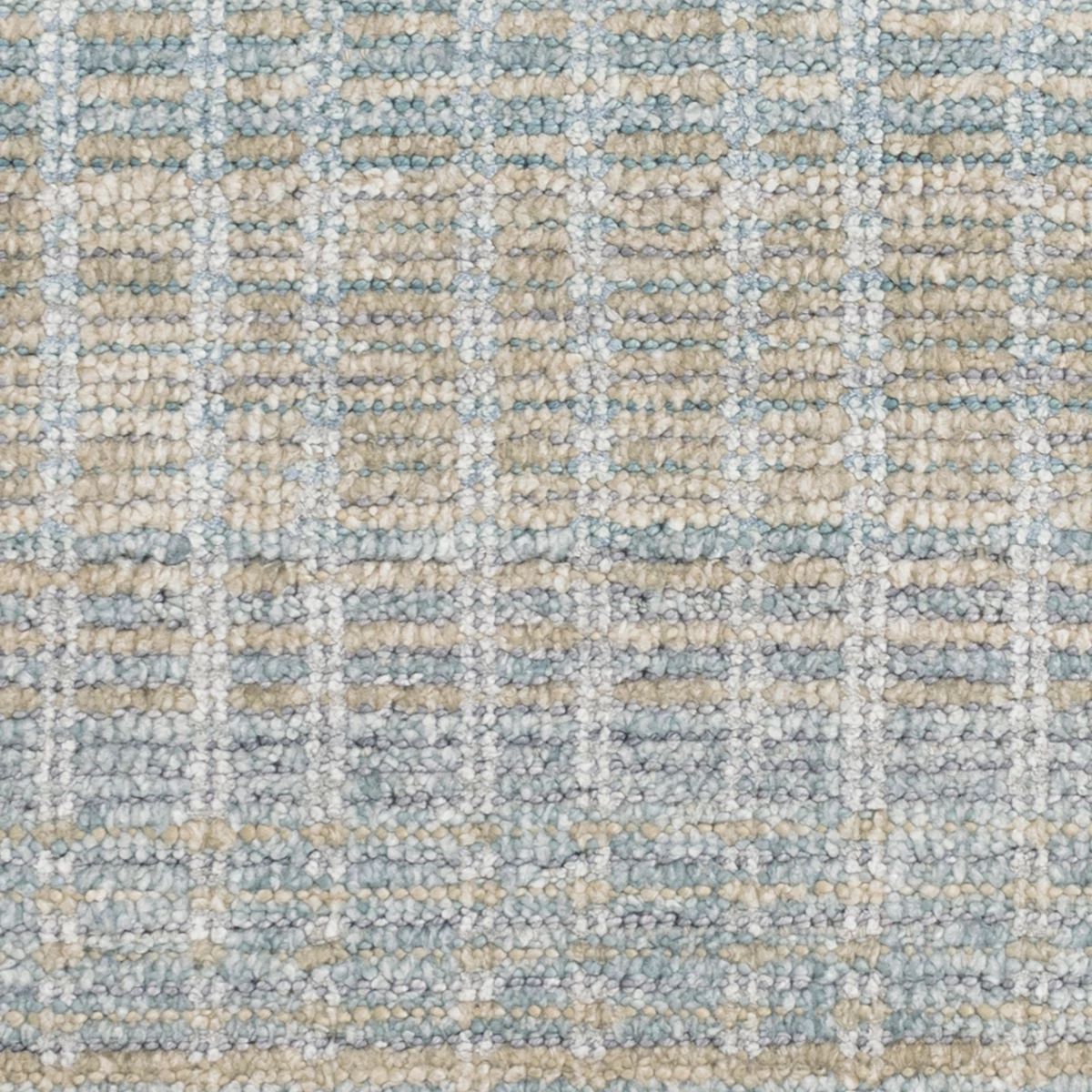 A subtle and refined grid pattern creates luster in pale blue and cream. The chic velvety sheen is achieved by some areas being sheared and others left as loops. A light and lively way to bring some glow into the bedroom.