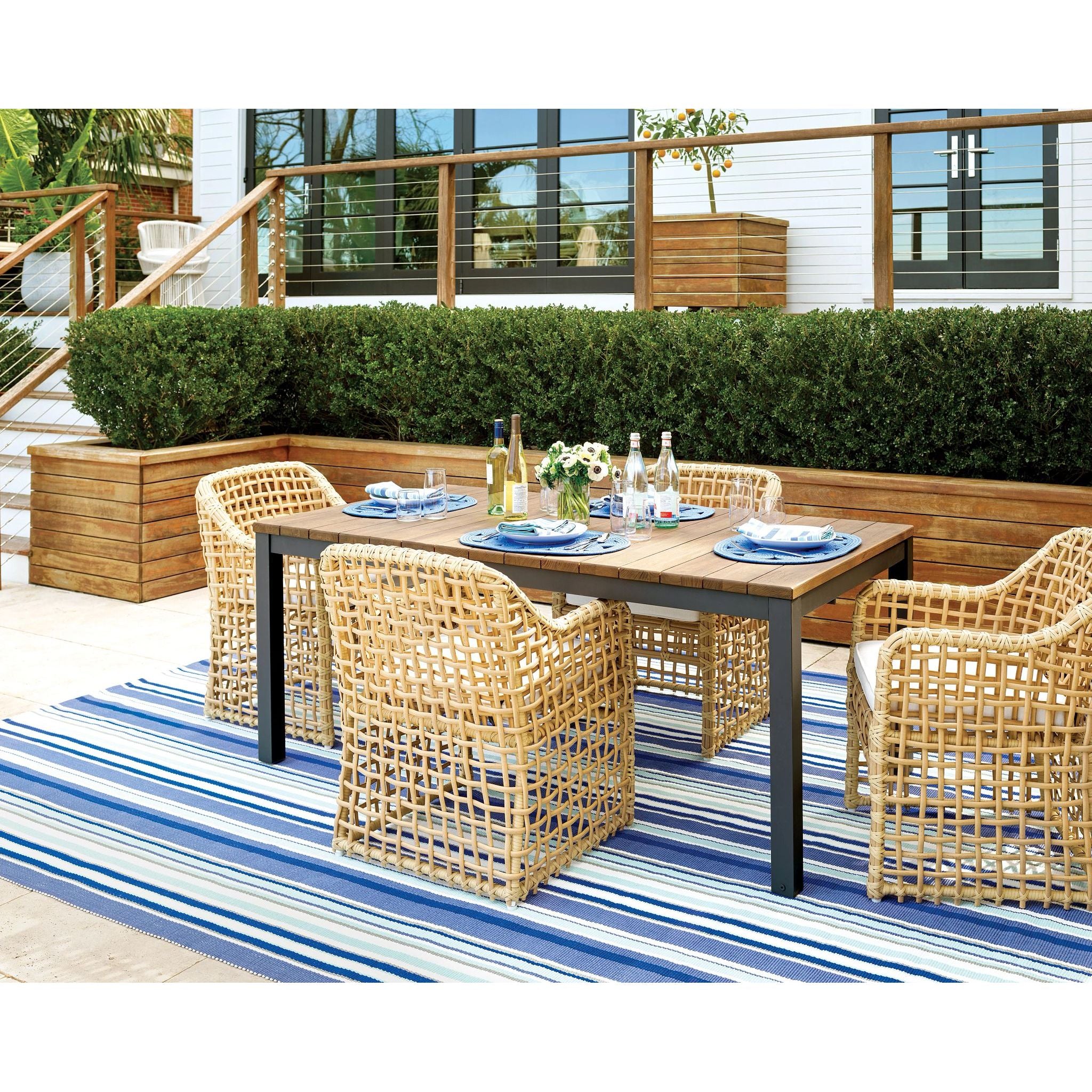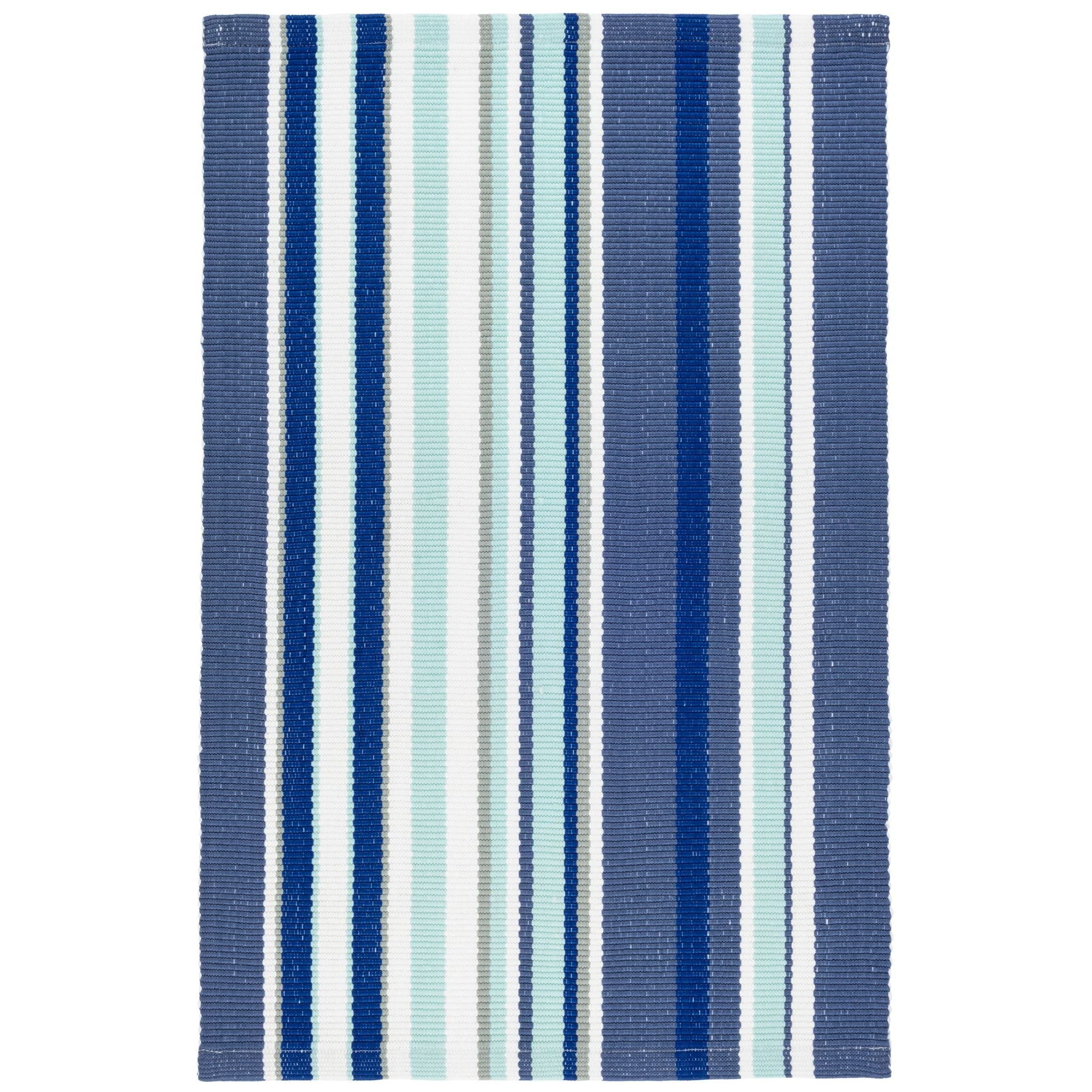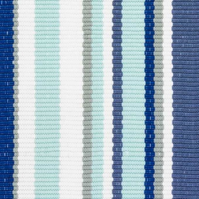In this fresh favorite, pale marine shades are paired with indigo, navy, and grey stripes on a bright white base. Made of polypropylene and terrific for high-traffic areas, this washable, scrubbable, and bleachable indoor/outdoor rug will stand up to wear and tear for years to come.