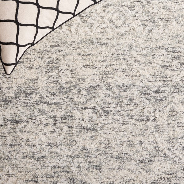 stunning Ebony EBN301F Ivory Grey rug, designed to bring a cozy and inviting atmosphere to your living space. This exquisite rug features elevated patterns that add a touch of elegance, all in subtle and soothing colors. Perfect for adding a touch of sophistication to any room, the Ebony area rug is crafted with a mix of high-quality wool and cotton, ensuring a plush and luxurious feel underfoot.