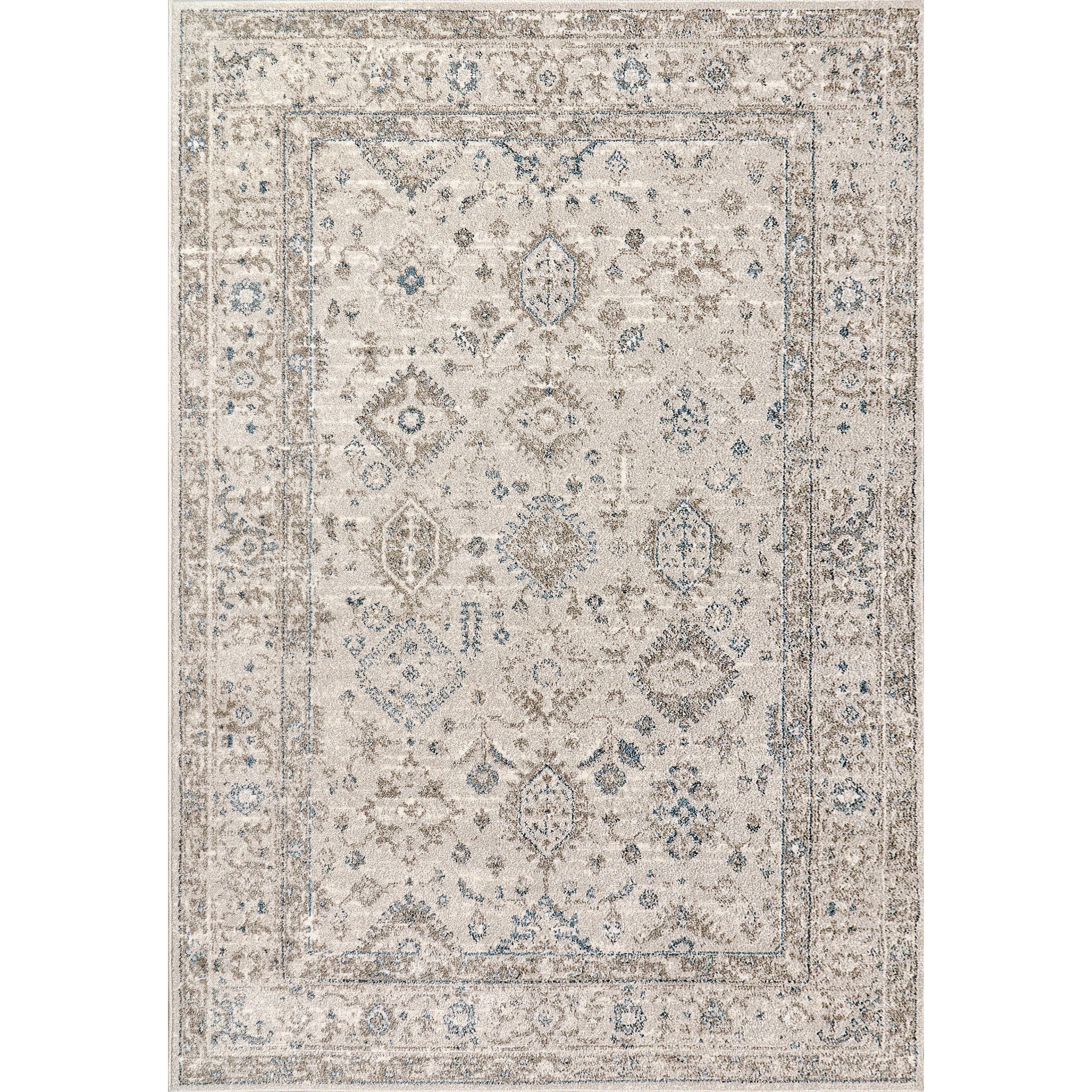 Eclectic 6012 Cream Multi rug, a stunning blend of traditional design with a modern twist. The subtle distressed style creates a visually striking effect that will elevate any living space. Featuring bold blues and golds on a neutral base, this rug adds an elegant and high-fashion motif to your home decor.