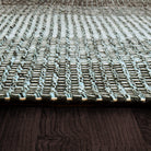 Enchant 1500 Aqua Black, a distinctive addition to your home decor. This collection showcases a knitted texture with a blend of poly yarns that subtly emerge beneath a checkerboard pattern. Hand-crafted in India from 100% Recycled PET Yarn, these rugs boast all-natural fibers that deliver an organic feel and appearance, elevating any space with their high-quality charm.