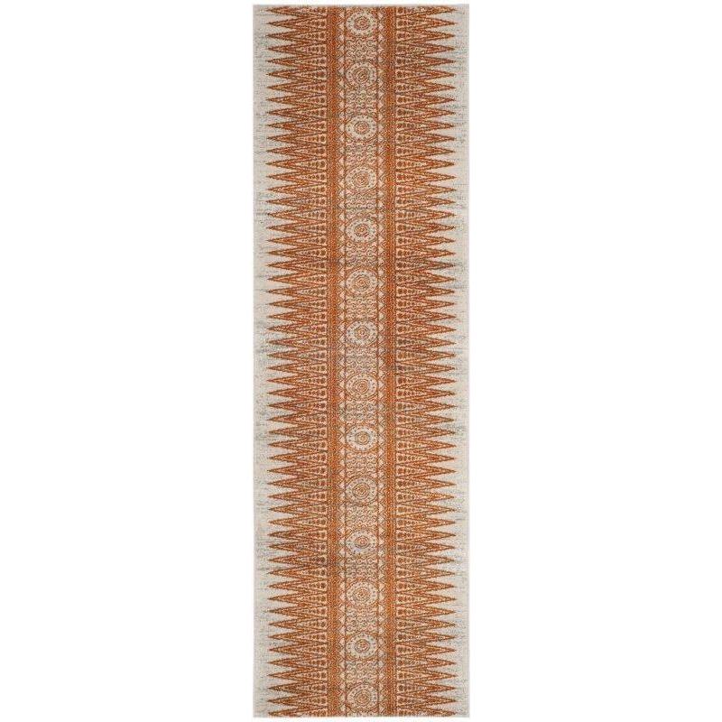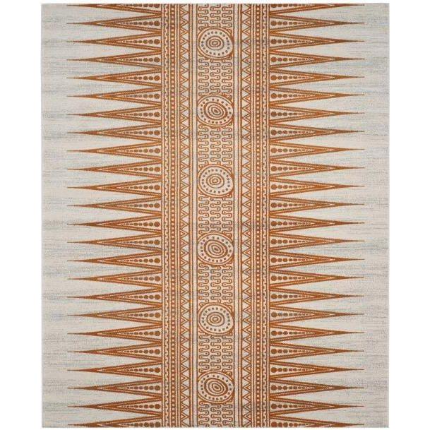 Evoke EVK226S Ivory Orange rug by Safavieh - a striking blend of modern design, vibrant colors, and plush texture. Crafted with high-quality polypropylene yarns, these power-loomed transitional rugs are not only chic but also durable and low-maintenance. The luxurious cut-pile frieze adds a cozy feel underfoot, making it a perfect addition to any room in your home.
