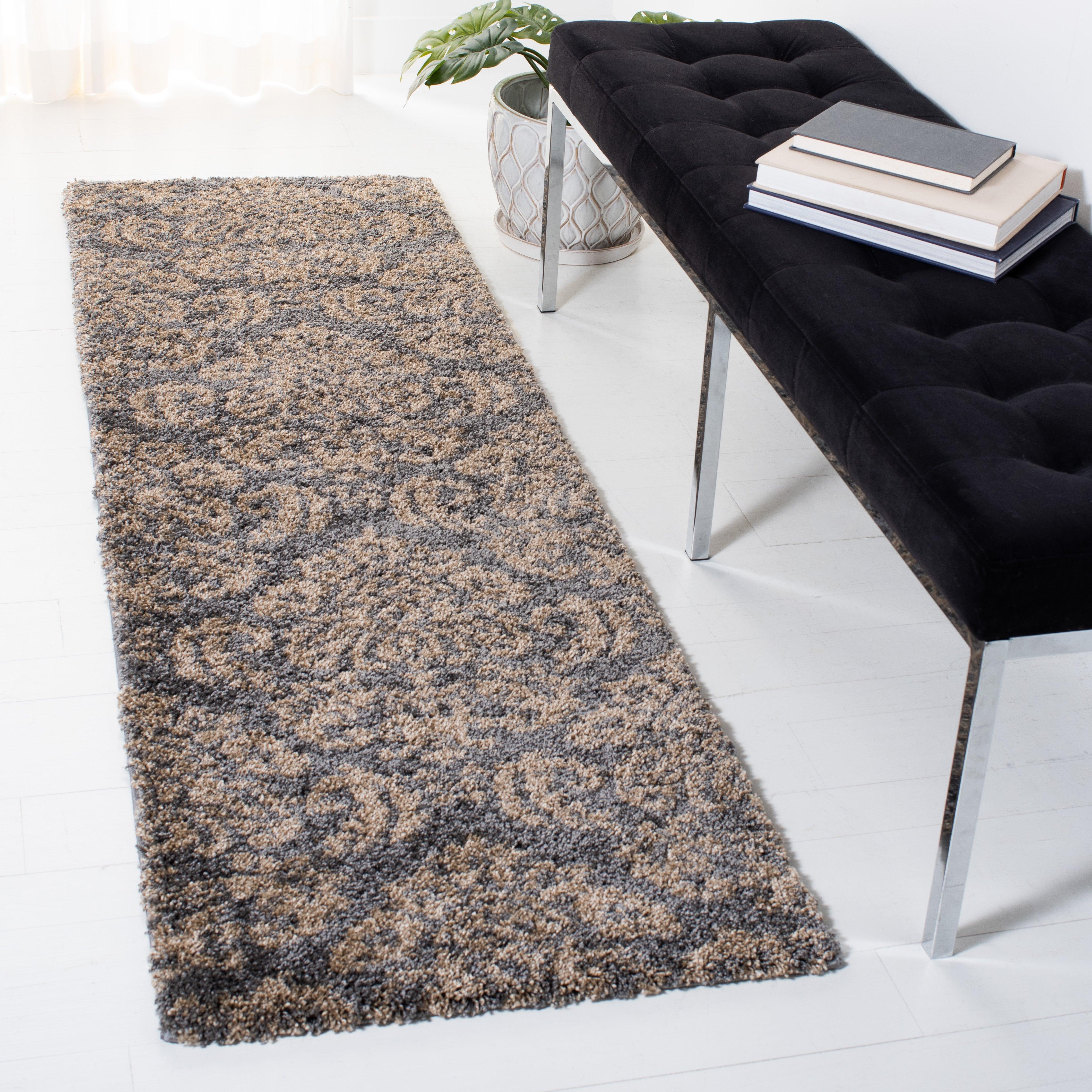 Elevate your living space with the Florida Shag SG460 8013 by SAFAVIEH. This chic rug features intricate damask florals in a warm color palette, adding a touch of elegance to any room. The sculpted high-low pile creates a luxurious depth and dimension that complements modern or transitional decor beautifully. Crafted from durable synthetic yarns using power-loomed techniques, this rug is designed to last for years to come with an approximate thickness of 1.2 inches.