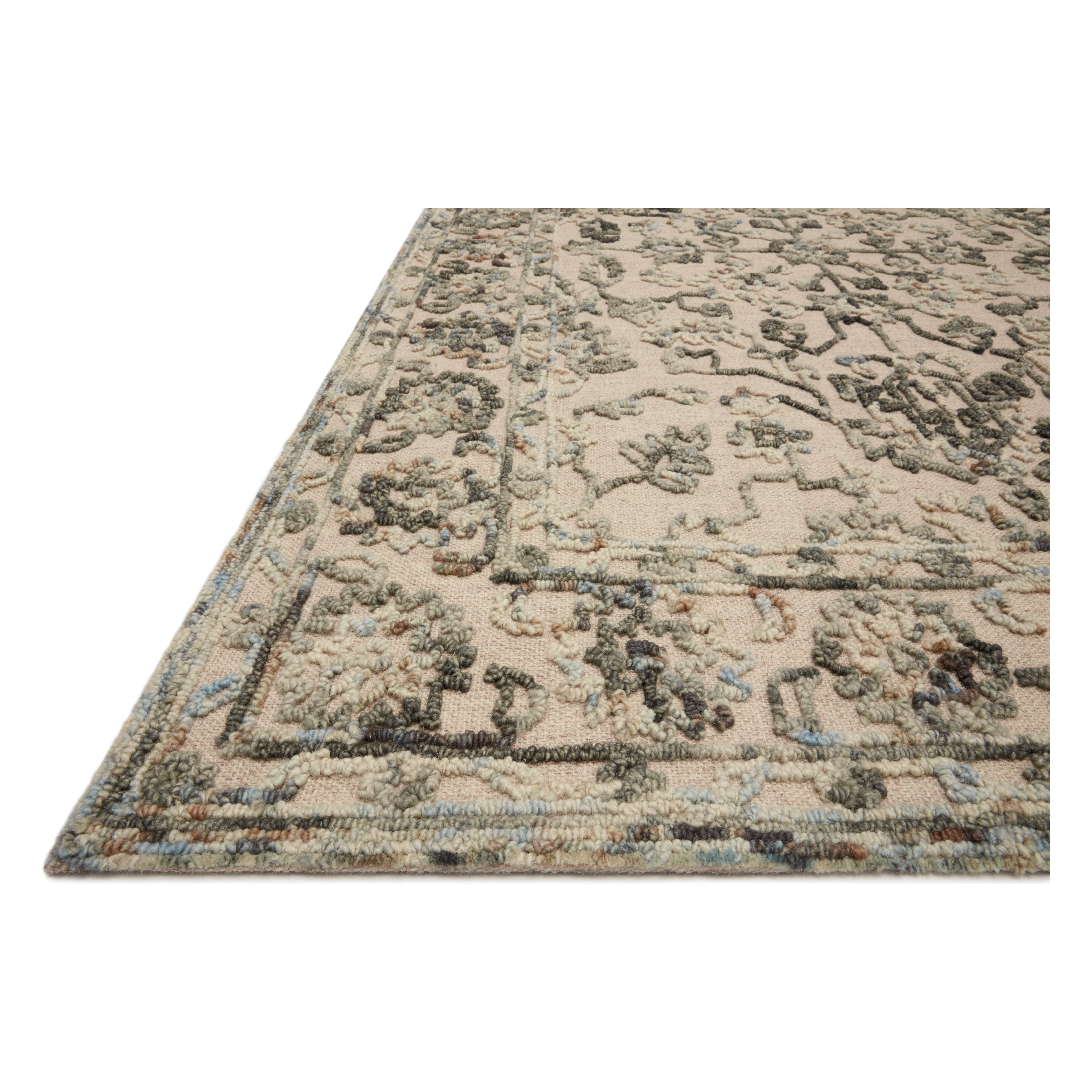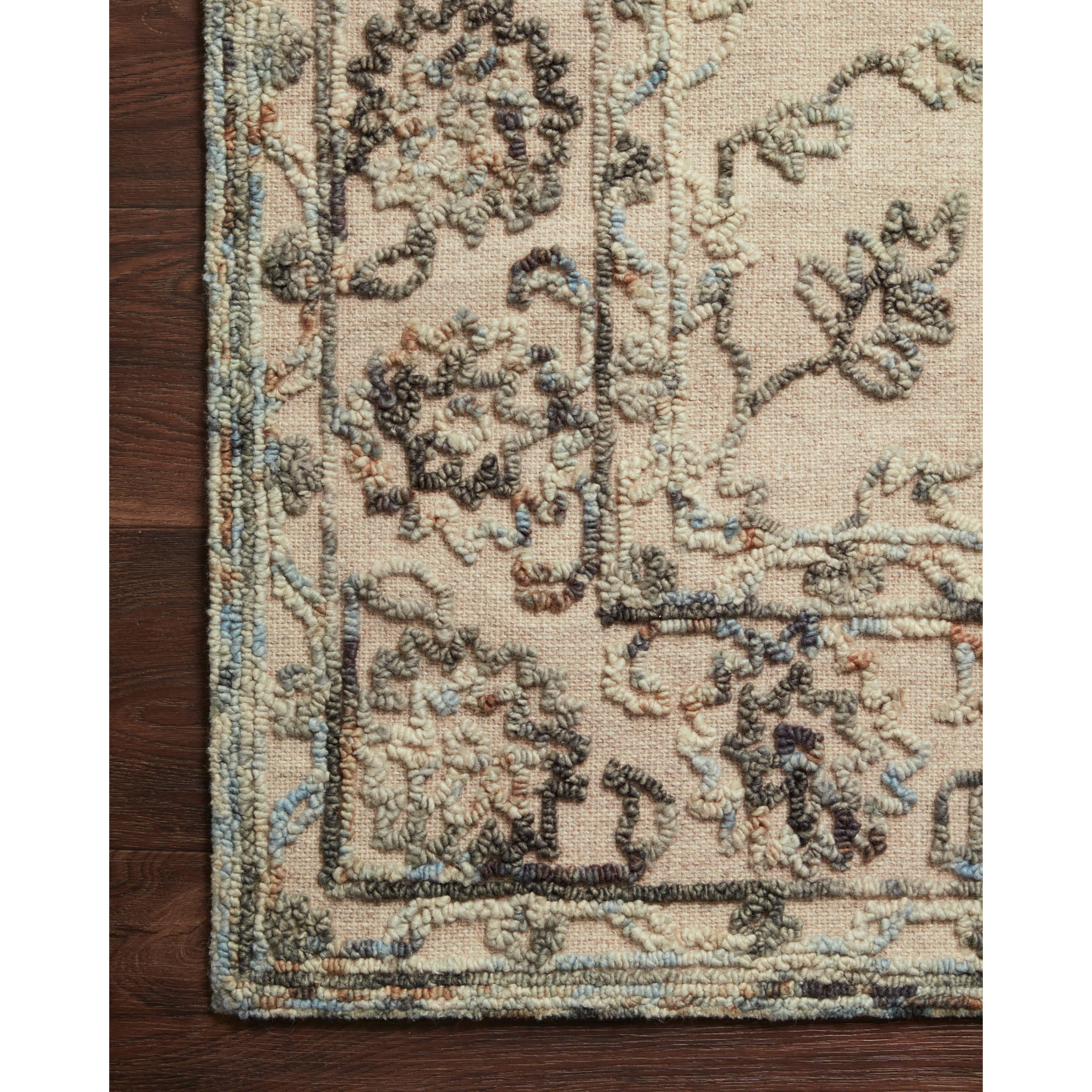 exquisite Halle Hae 05 Grey Sky rug from the Halle Collection. Handcrafted in India with precision, this rug boasts a luxurious 100% wool pile for superior quality and durability. The traditional design of the Halle Collection showcases timeless patterns, elevated by a unique mix of high and low piles that create a striking sense of depth and texture.