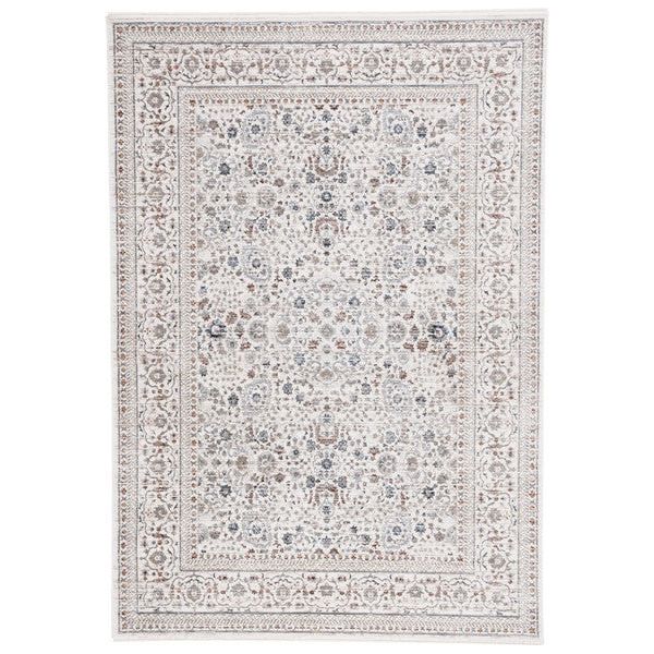 Harlow HAR163A Ivory Grey Beige rug, a versatile addition to your home decor. Embrace timeless motifs and warm earth tones with this family favorite piece that adds charm to any room. The decorative area rug features modest fringes and is power loomed using soft synthetic yarns, ensuring durability and long-lasting beauty.